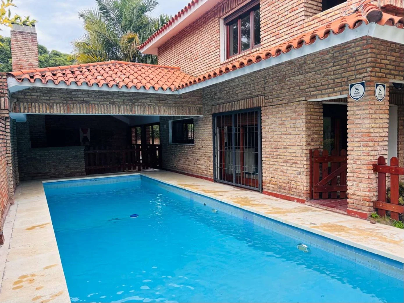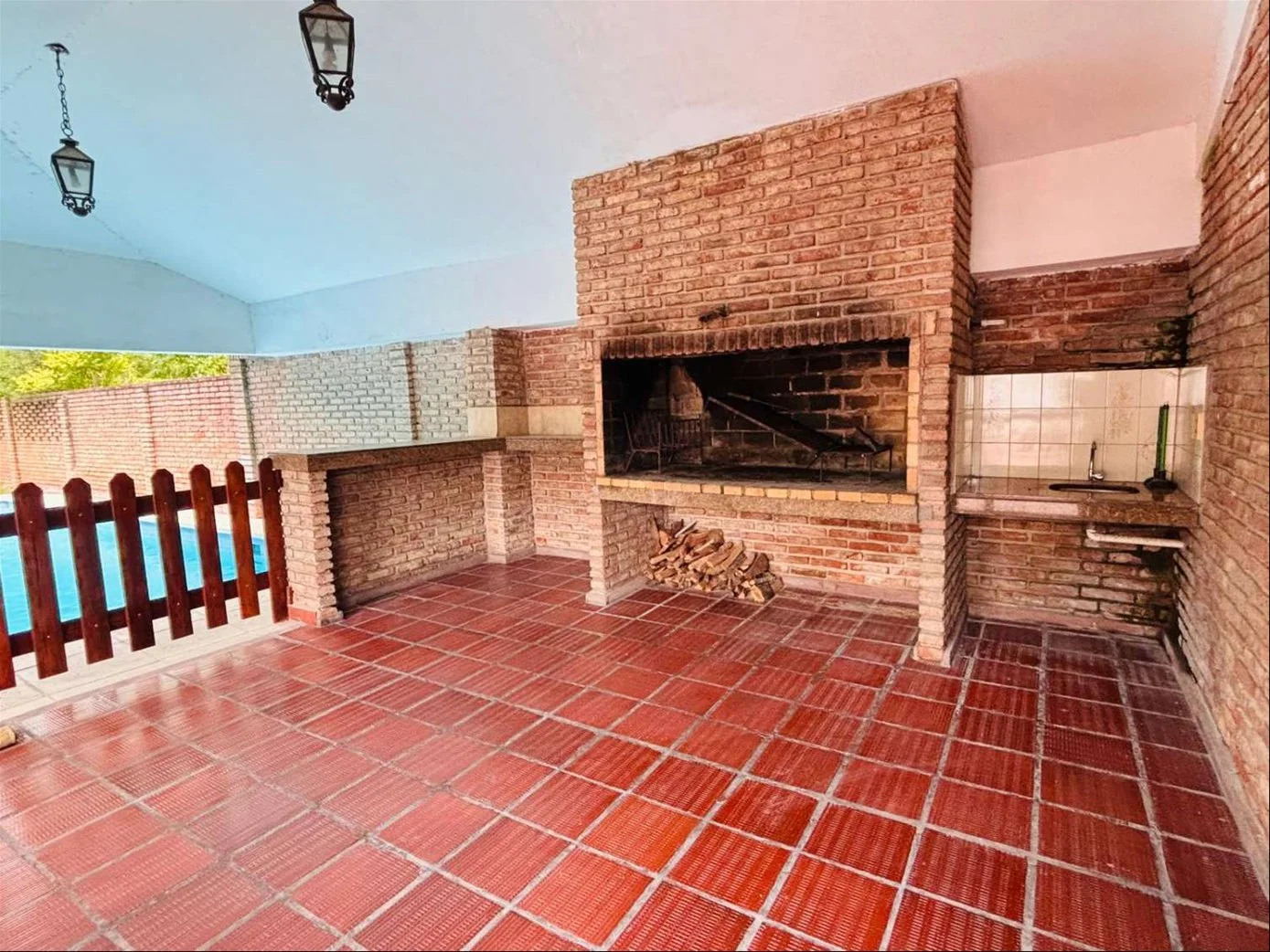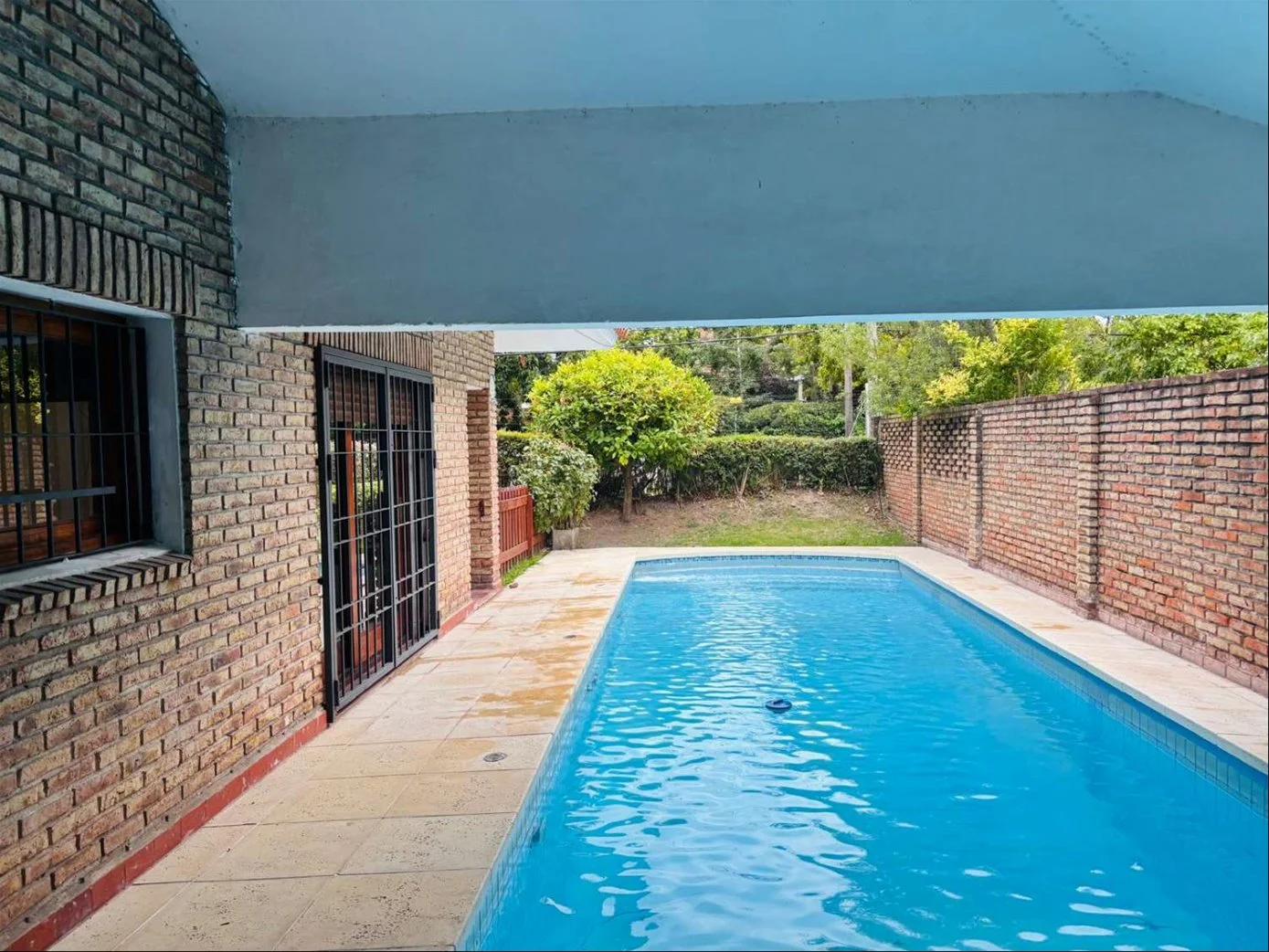 Fondo con piscina y barbacoa garage para 2 autos y lugar en el jardín para varios más.