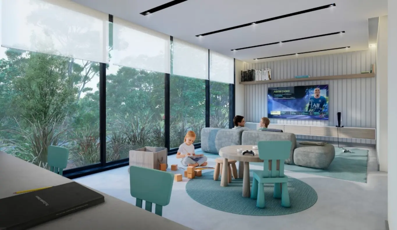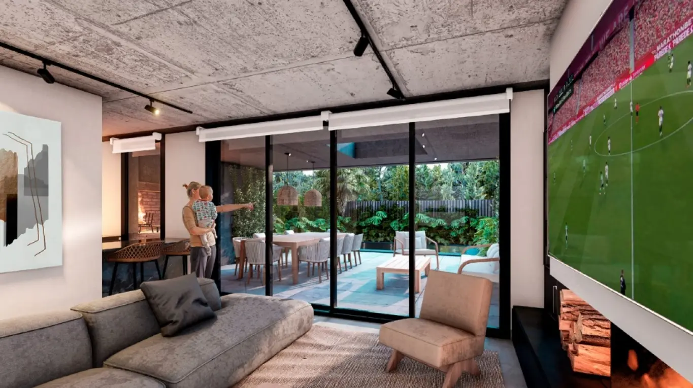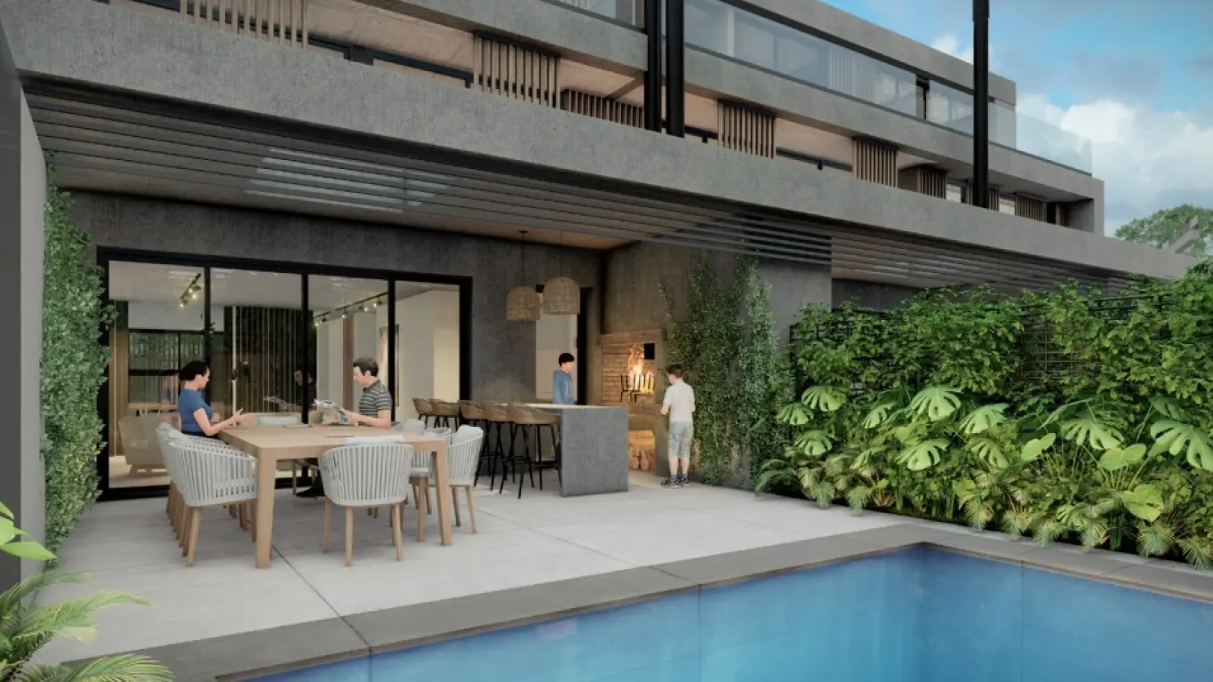 Proyecto de 8 casas de 3 y 4 dormitorios en barrio Parques. En 3 plantas. Planta baja, living comedor. Toilette. Estar con estufa de leña. Cocina con línea blanca incluida. Planta alta: 3 dormitorios, 2 baños, principal en suite con vestidor. Segundo baño en semi suite. En tercera planta: 1 baño completo, lavadero. Opción personalizada: gimnasio, mini cine, home office, playroom, dormitorio en suite. Aire acondicionado central. Bomba de calor. Domótica. Cargador para e-cars. Lindo fondo con parrillero y piscina. Cochera para 2 autos. Seguridad y alarma. Gastos de conexión 4.5 %