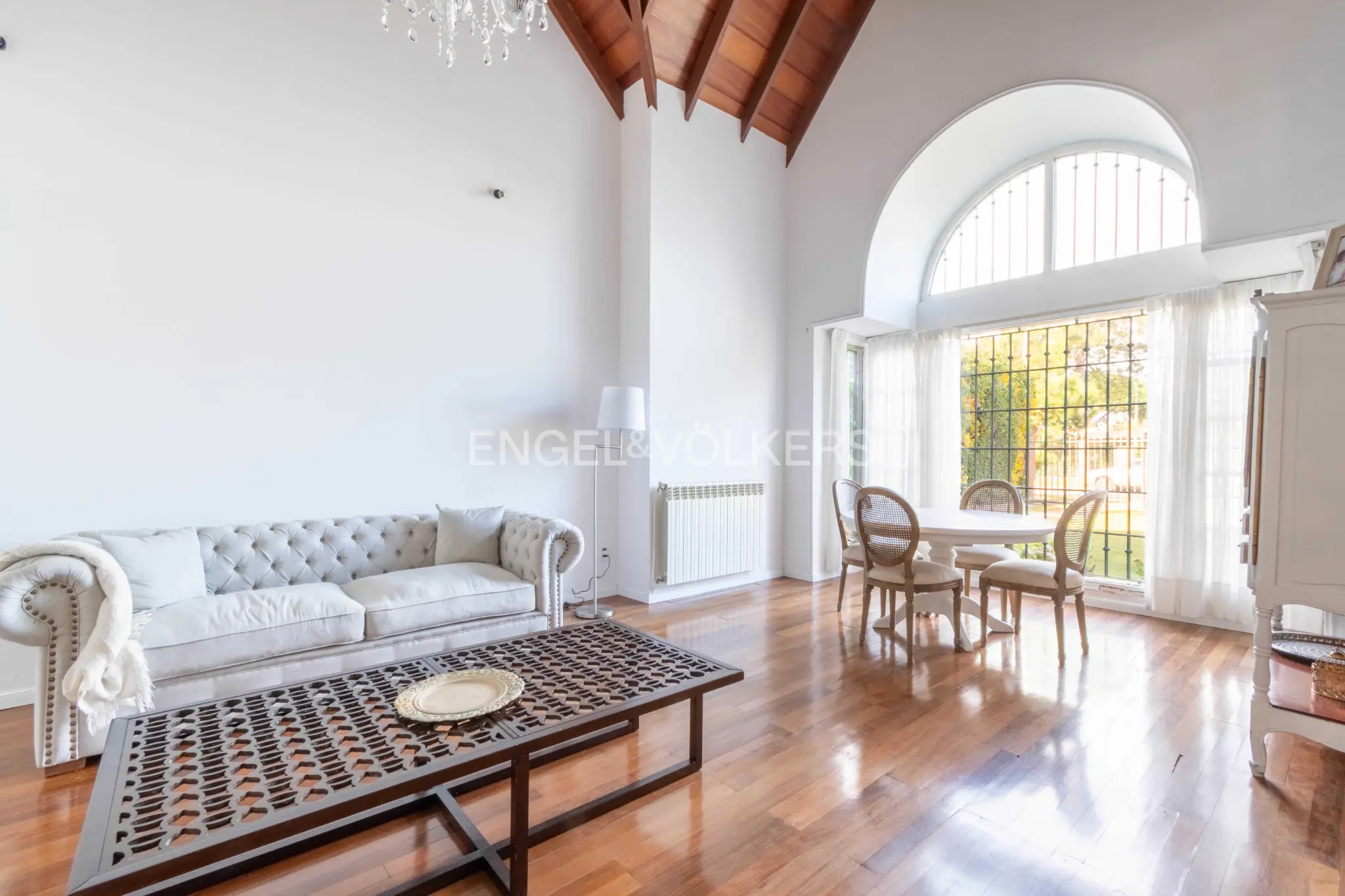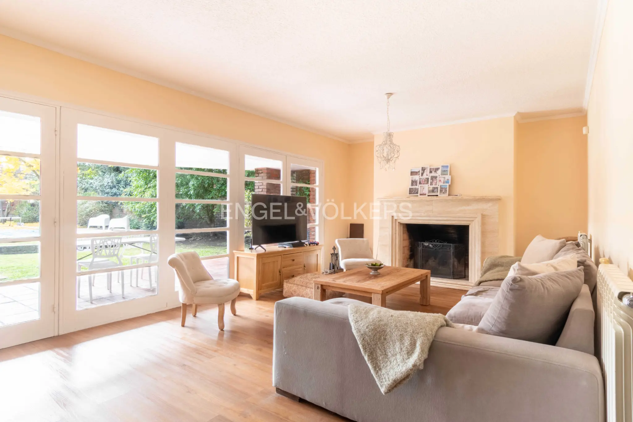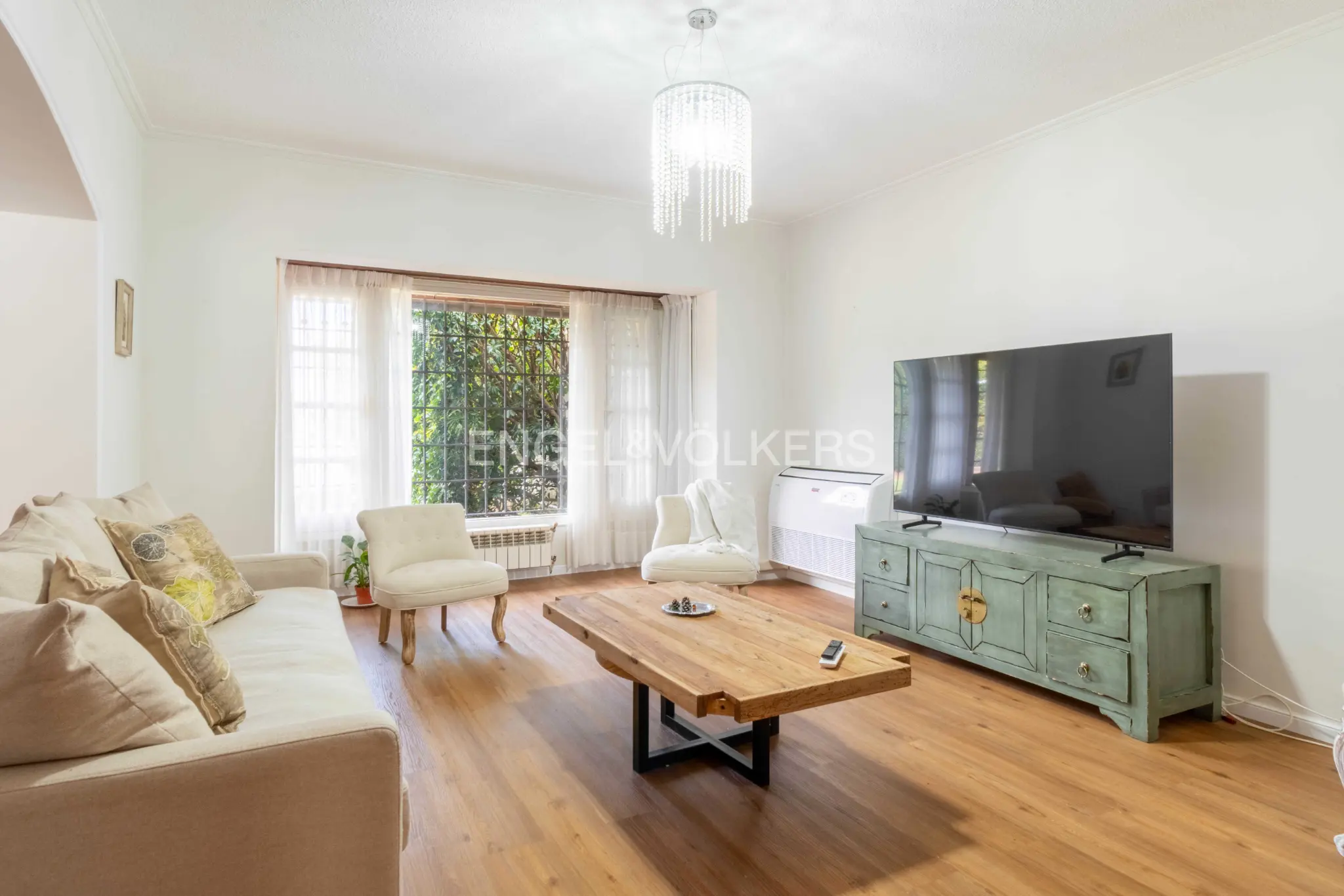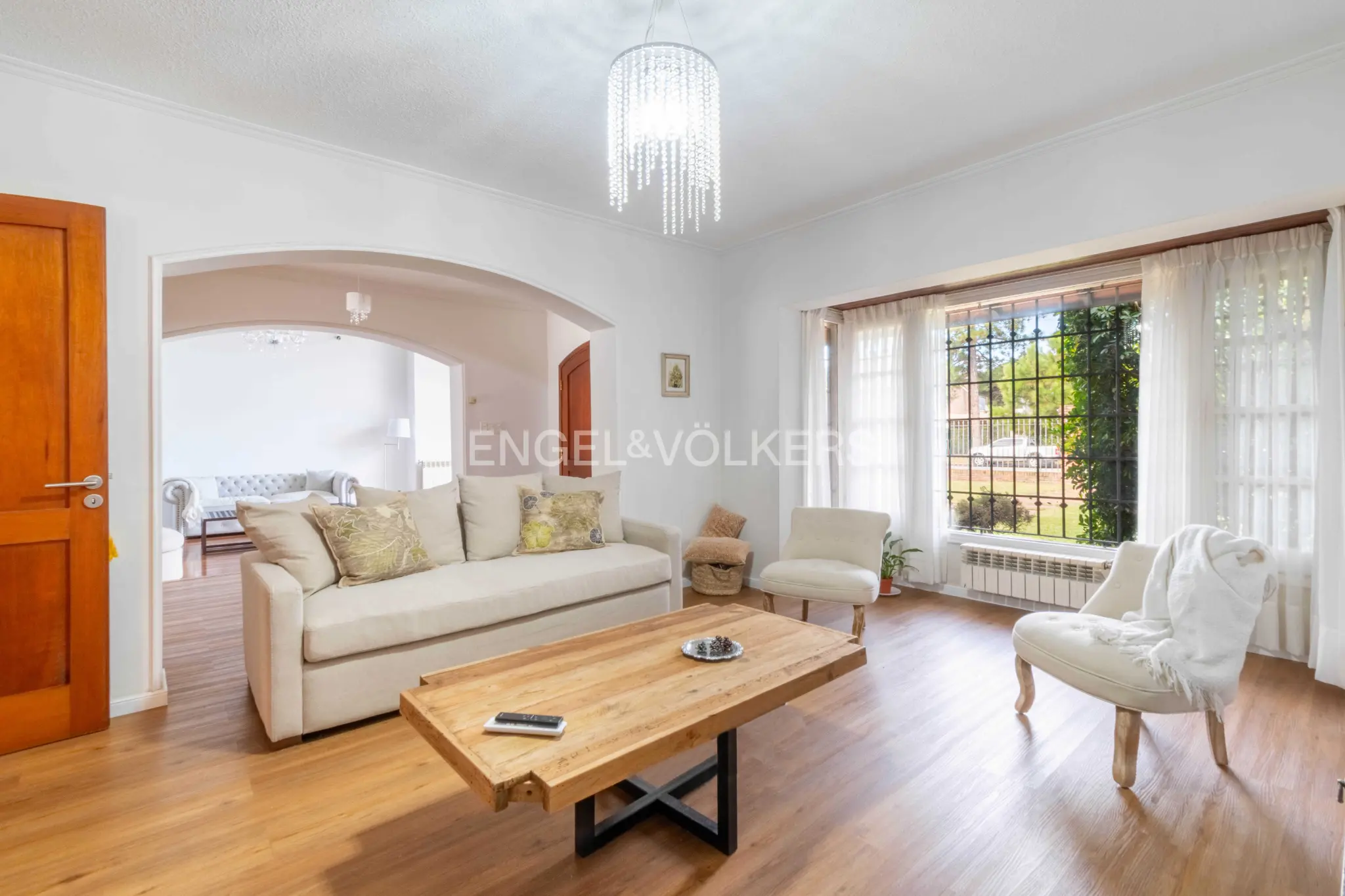 Se le accede a través de importante recibidor que da acceso al living y al comedor, independientes uno del otro. Estar íntimo con estufa a leña muy amplio, orientado hacia el jardín posterior. Sector de comedor diario vinculado directamente a cocina integrada. Baño social, departamento de servicio completo.