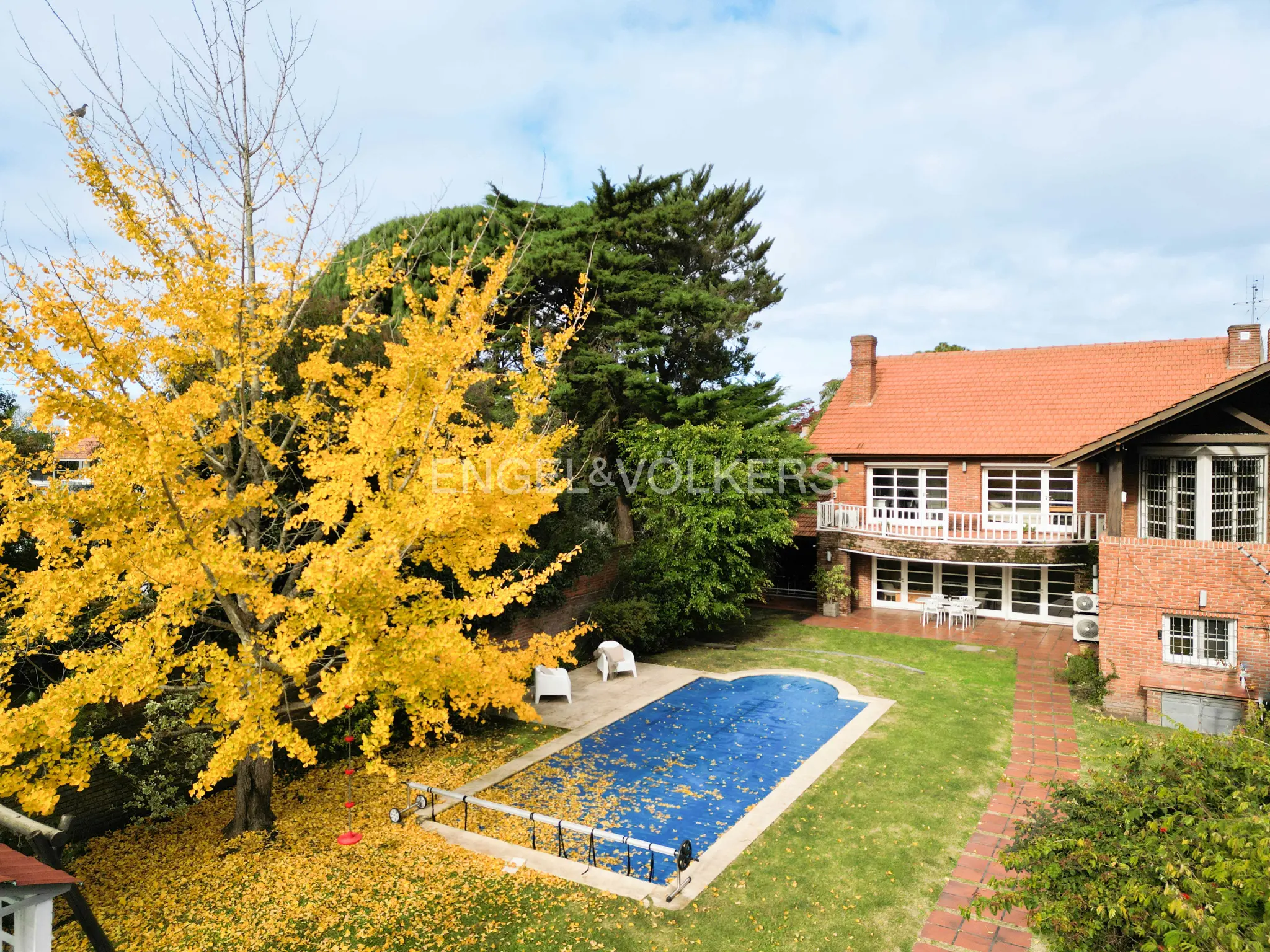 El fondo dispone de un espacioso jardín posterior equipado con sistema de riego con pozo, piscina climatizada con bomba de calor de 38m2, casita de dos niveles construida en madera para juegos infantiles, y al fondo parrillero con techado anexo, más una barbacoa cerrada o playroom, baño completo, ducha independiente y lavadero. La planta alta de la casa dispone de cuatro dormitorios, dos hacia el frente y dos hacia atrás y amplísimo hall de distribución que balconea hacia el living. La suite principal tiene vestidor y amplio baño con jacuzzi. Los otros tres dormitorios comparten un segundo baño, dos de ellos tienen altillos.