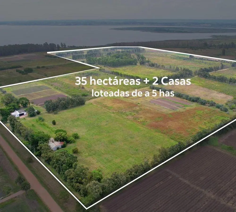 CASASWEB(214255) Se venden campo de 35 hectáreas 4378 m2 loteado en chacras de 5 hectáreas en Punta Espinillo.Camino Sebastian Rebella y Rambla Costanera, teniendo acceso también por Camino del Domador.Las chacras que cuentan con construcción son dos :148 m2 construidos, casa principal (para reciclar) y casa de caseros. Gran variedad de arboles variados.Posibilidad también de comprar chacras de 5 hectáreas sin construcción, o 5 hectáreas con construcción.Al oeste del departamento de Montevideo, cerca de la localidad de Santiago Vázquez, se encuentra Punta Espinillo. Se llama así por formar una punta en la costa donde crecían numerosos espinillos, a orilas del Río de la Plata y la desembocadura del Río Santa Lucía. Esta gran área forestada es un espacio ideal para quienes desean alejarse del bullicio de la ciudad. Su geografía se define como orográfica, una zona estrecha de tierra que entra en el mar, de menor tamaño que un cabo.Los visitantes podrán disfrutar del aire libre, los árboles y una playa donde tomar baños de mar. Las aguas de Punta Espinillo son más claras y limpias que las de la zona capitalina. Esto permite a los amantes de la pesca disfrutar de su actividad preferida.La distancia de el centro de Montevideo a Punta Espinillo es de 23 kms, por ruta y caminos asfaltados.No dude en consultar por esta propiedad ubicada en una zona tranquila, próxima al agua, ideal para vivir todo el año, o para inversión con múltiples rubros. Ver mas detalles en casasweb.com?214255