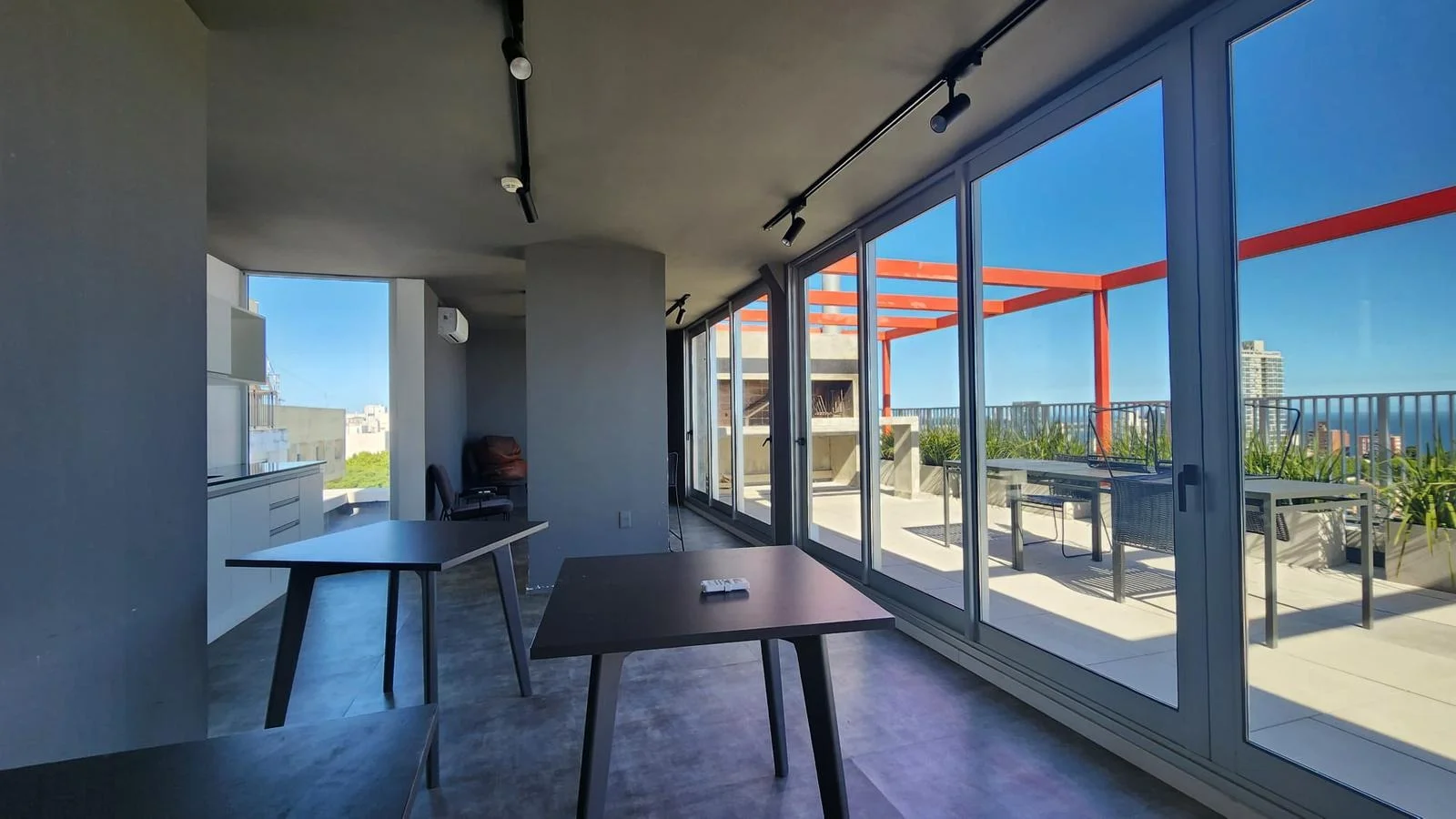Living comedor al frente con salida a la terraza.