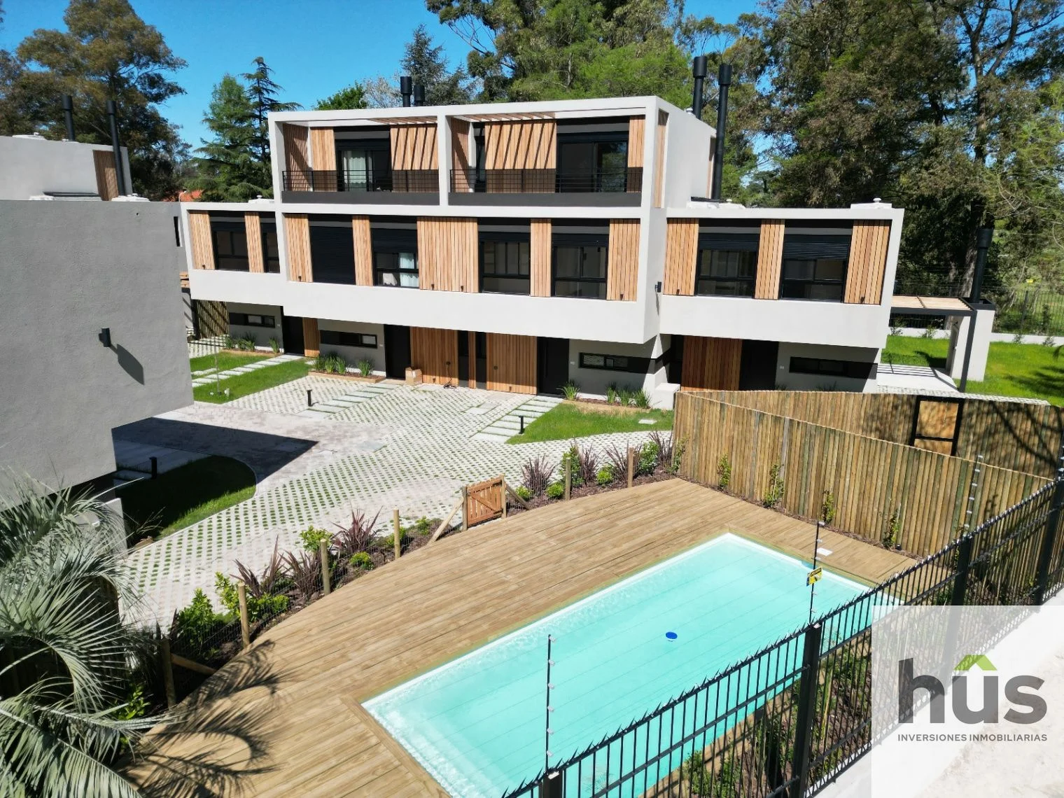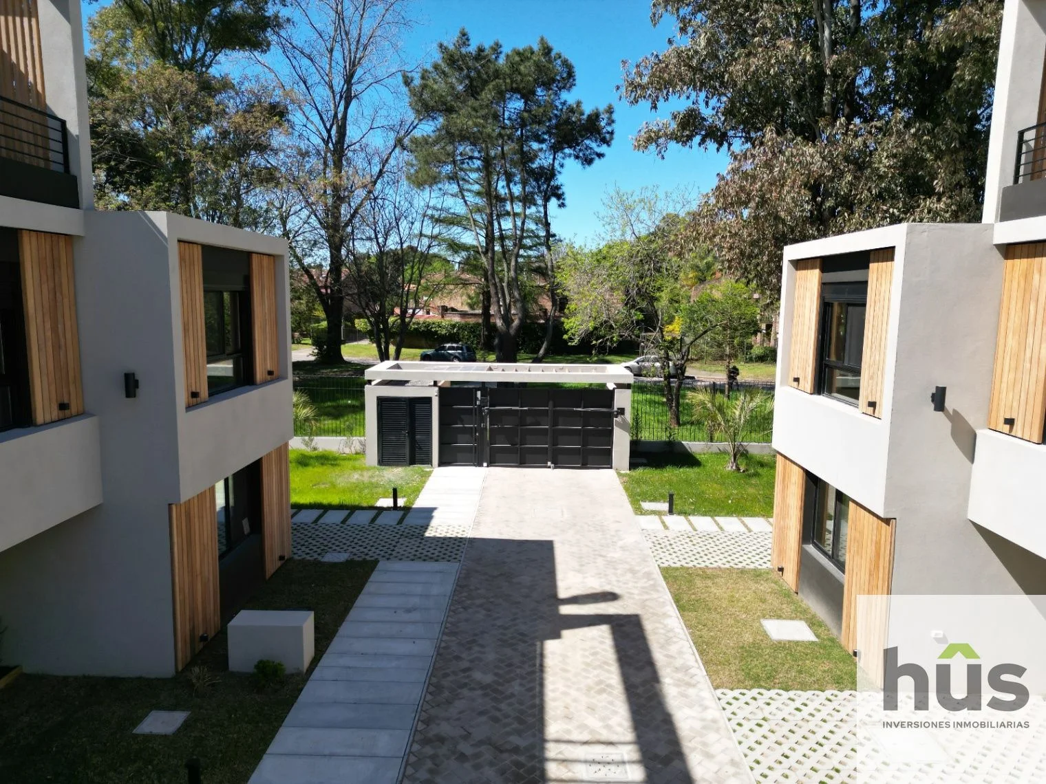 Desarrollada en dos plantas, con garaje, jardín y parrillero privado.