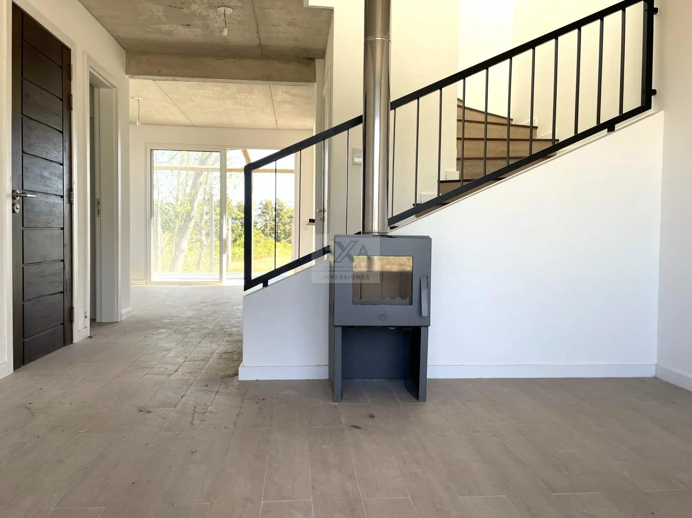 La casa se desarrolla en dos plantas y cuenta con 3 dormitorios (el principal en suite) y 3 baños, Living con estufa a leña de alto rendimiento, estar diario/comedor con cocina semi integrada, y salida al parrillero y jardín propio de 162 m2.