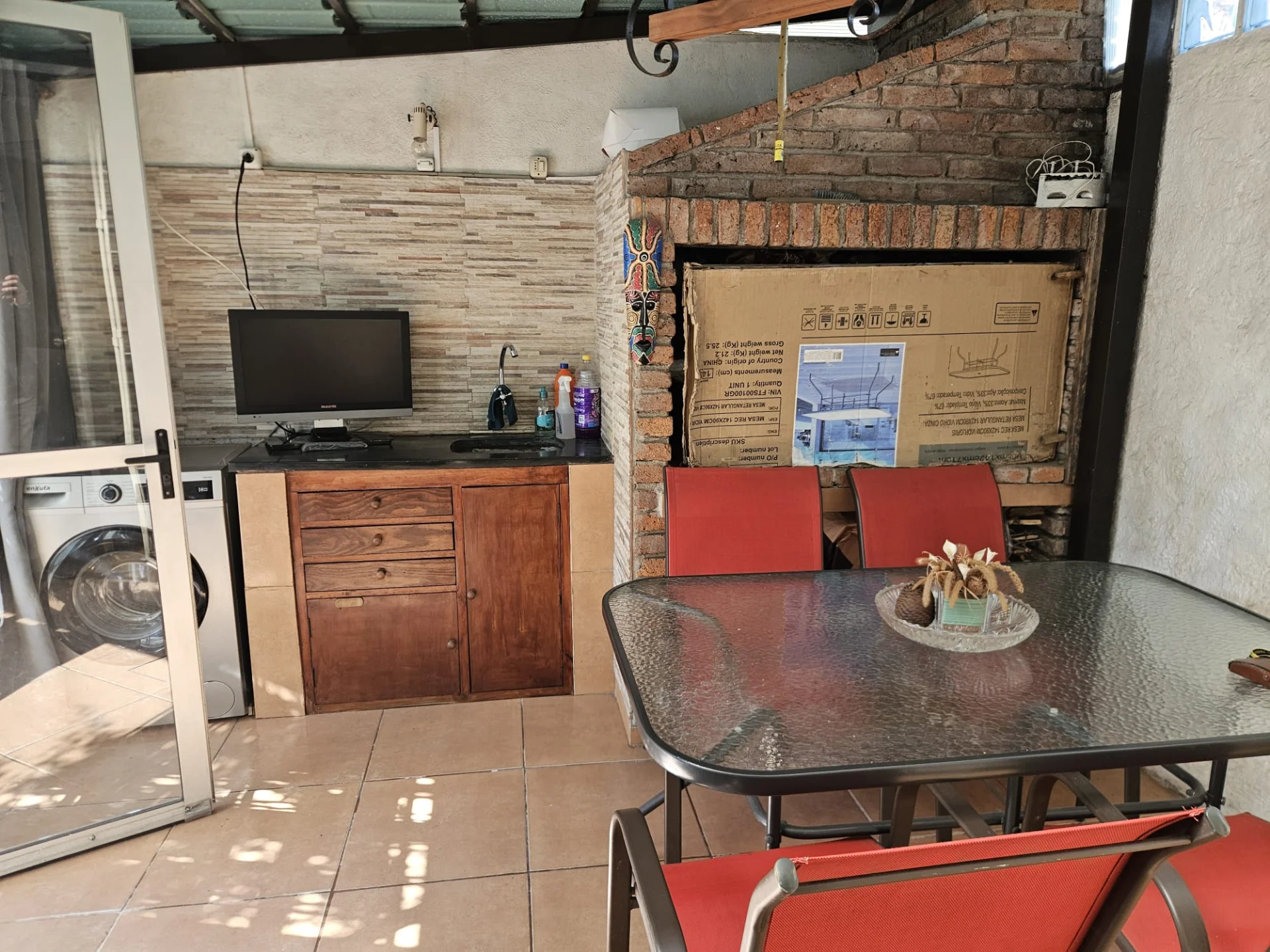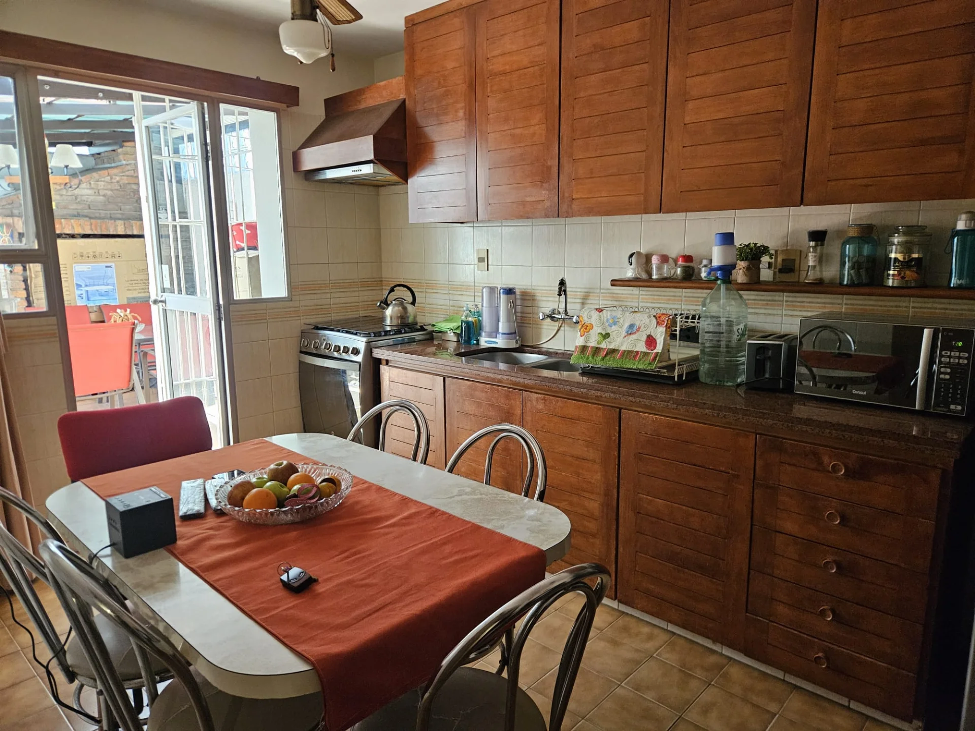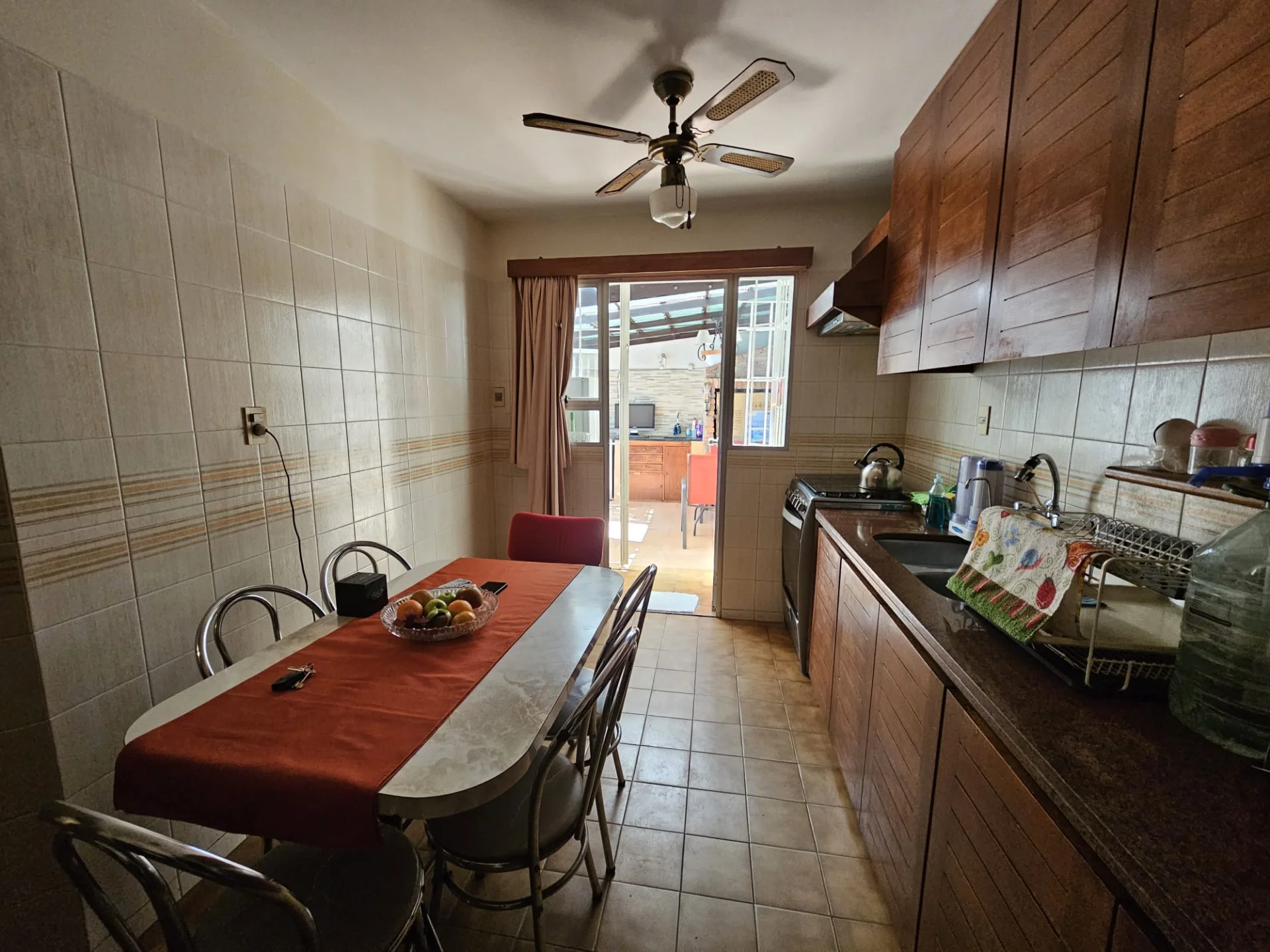 COCINA COMEDOR CON DOBLE PILETA, MUEBLES BAJO Y SOBRE MESADA, SALIDA A BARBACOA CERRADA CON ACCESO A DORMITORIO Y BAÑO DE SERVICIO.