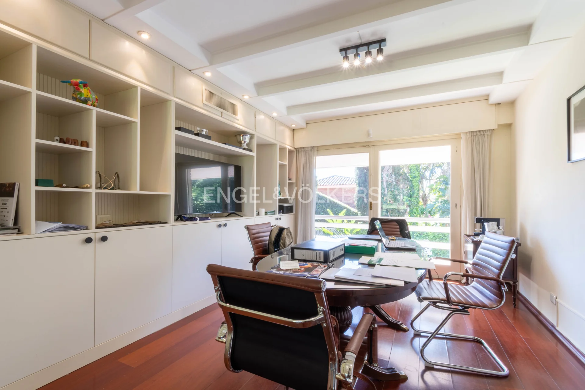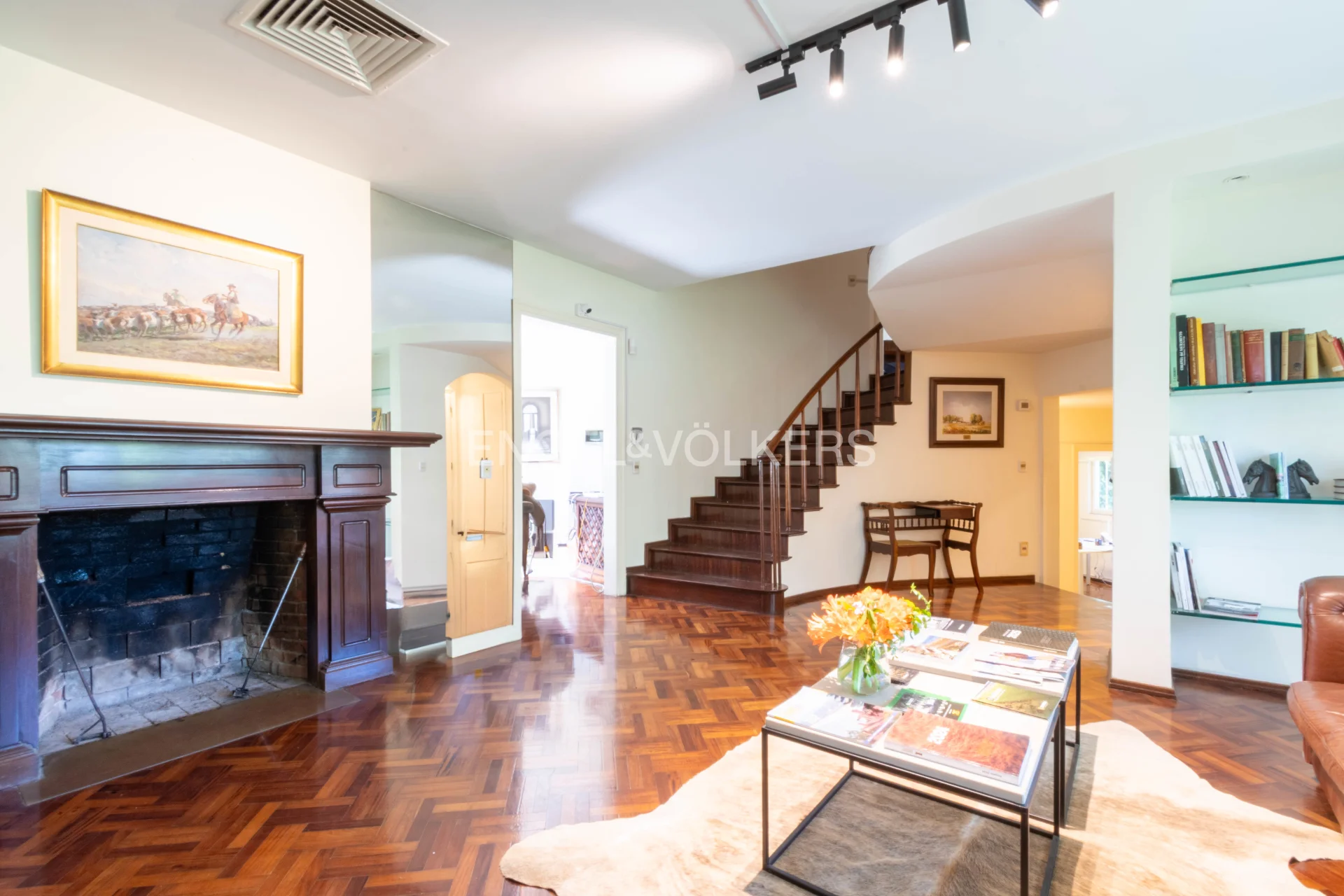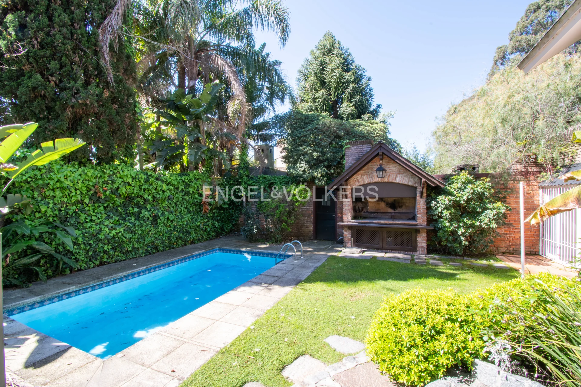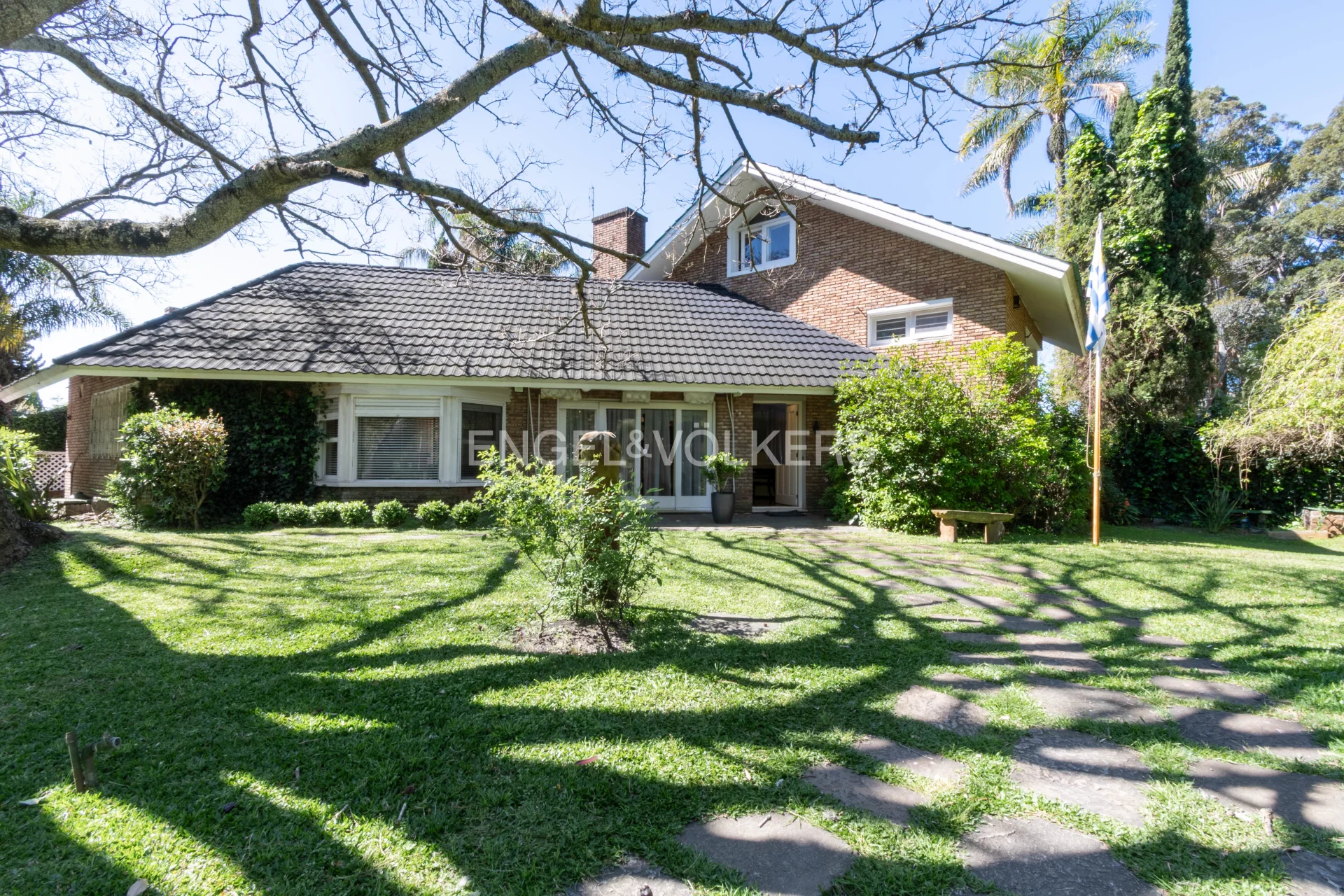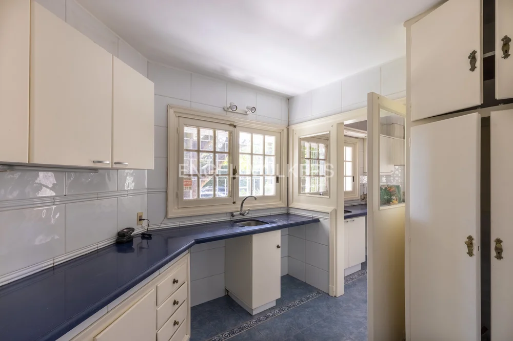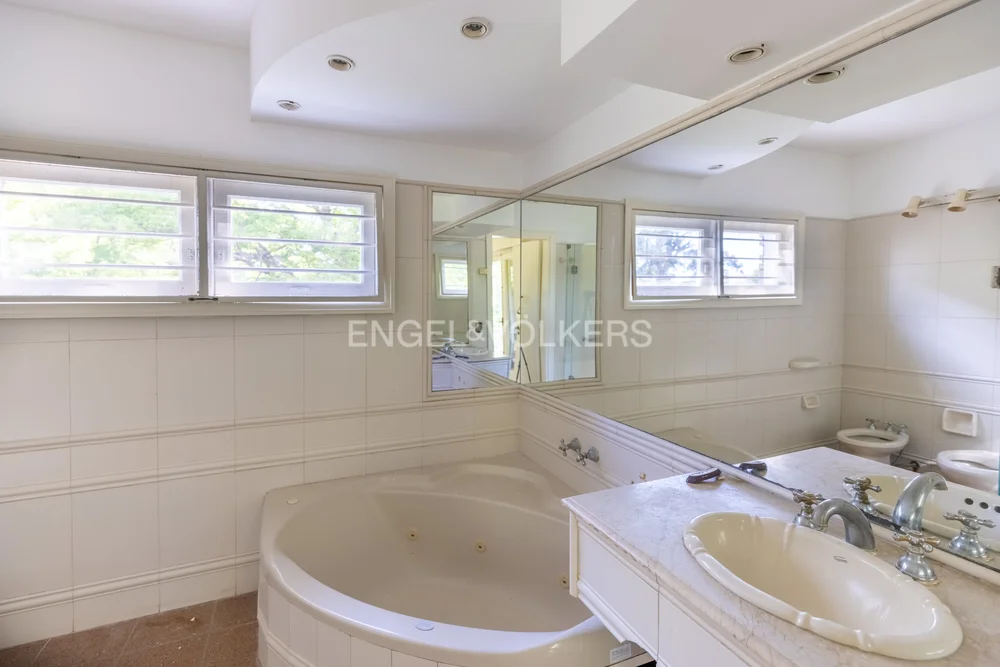 Propiedad en buen estado general y recién pintada pronta para entrar. Conformada en dos medio niveles desfasados, desarrollada rodeando un terreno esquina con amplio retiro frontal en un flanco. Mucho verde alrededor por el exterior y en el interior un patio ìntimo con piscina y parrilla. Cochera techada para un auto y espacio dentro para estacionar tres más. Perímetro del predio totalmente enrejado, y casa con cortinas de enrolar en todas las ventanas. Acceso a living comedor con estufa a leña con integración frente fondo. Anexo comedor con sun roof vinculado a cocina y baño de servicio y acceso superior desde ahí a dormitorio de servicio. Hacia el otro lado, bajando medio nivel tres dormitorios con dos baños y un estar íntimo con vista al jardín interior. Subiendo, amplia master suite, con baño privado y vista frente fondo muy panorámica. En ese mismo nivel, buhardilla habilitada como home theatre, y en un nivel superior, amplio play-room. En total son 4 dormitorios, 3 baños y dependencia de servicio aparte completa. Cuenta con calefacción central por aire acondicionado ductado (frio/calor) y agua caliente central con caldereta y termotanque a gas instalados en sala de sub-suelo.
