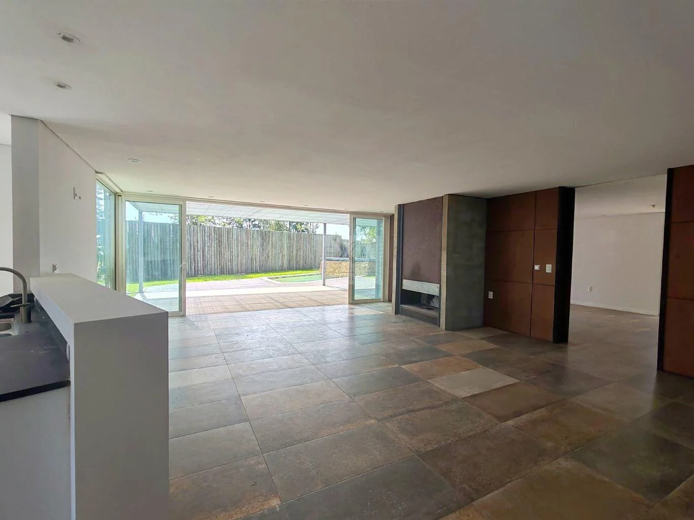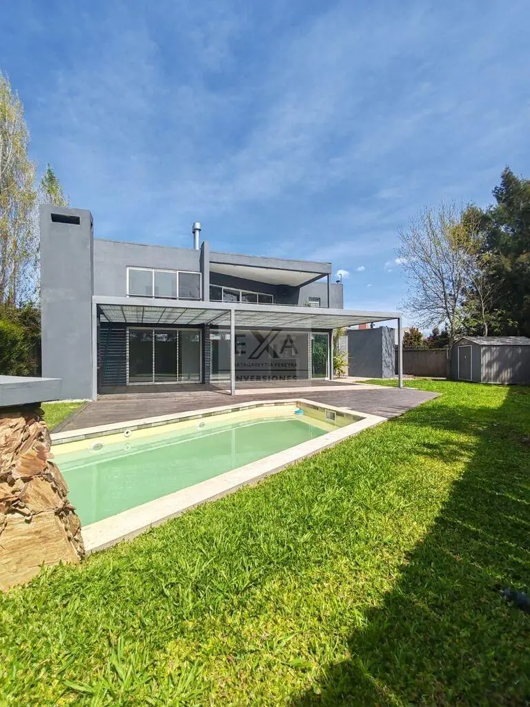 Hall de entrada, toilette, cocina con horno, anafe, campana, despensa, y barra integrada a un gran living comedor con estufa a leña y amplios ventanales con salida al jardín con pérgola, parrillero y piscina, estar con estufa a leña también con salida al jardín, dormitorio en suite o escritorio, lavadero, depósito y baño.
