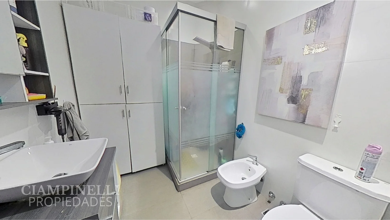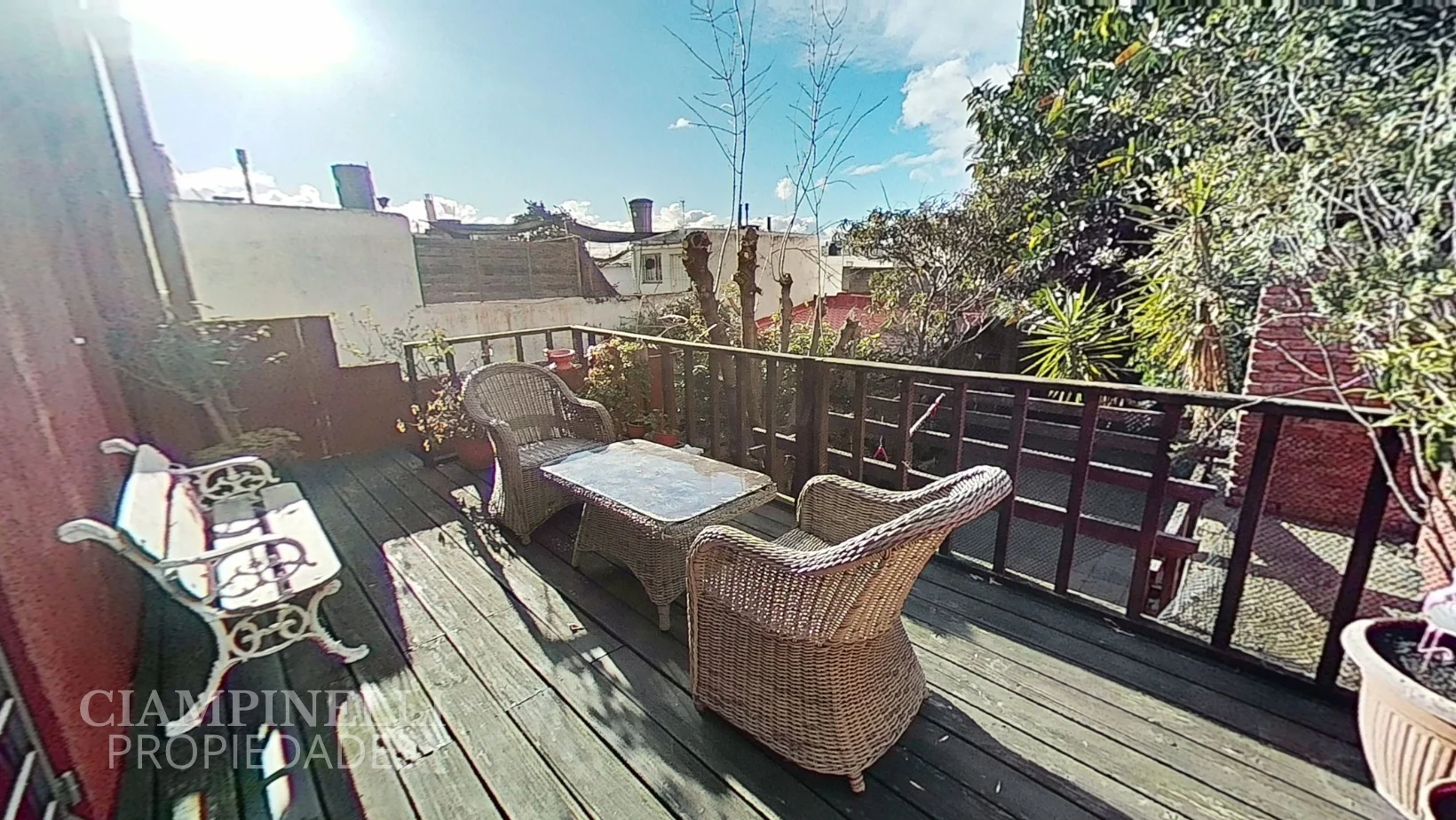 Planta Alta - Elegante living con claraboya de vitraux, integrado al comedor diario y cocina con barra pasaplatos y muebles aéreos / bajo mesada. Dormitorio principal, conectado a otros 2 dormitorios con piso de pinotea y baño completo. Amplio balcón terraza orientado al noreste, con acceso al fondo.