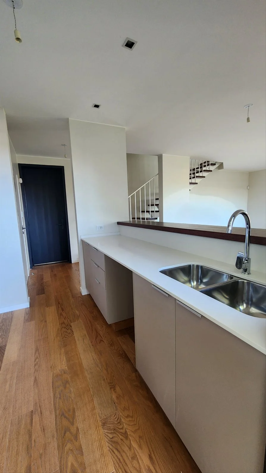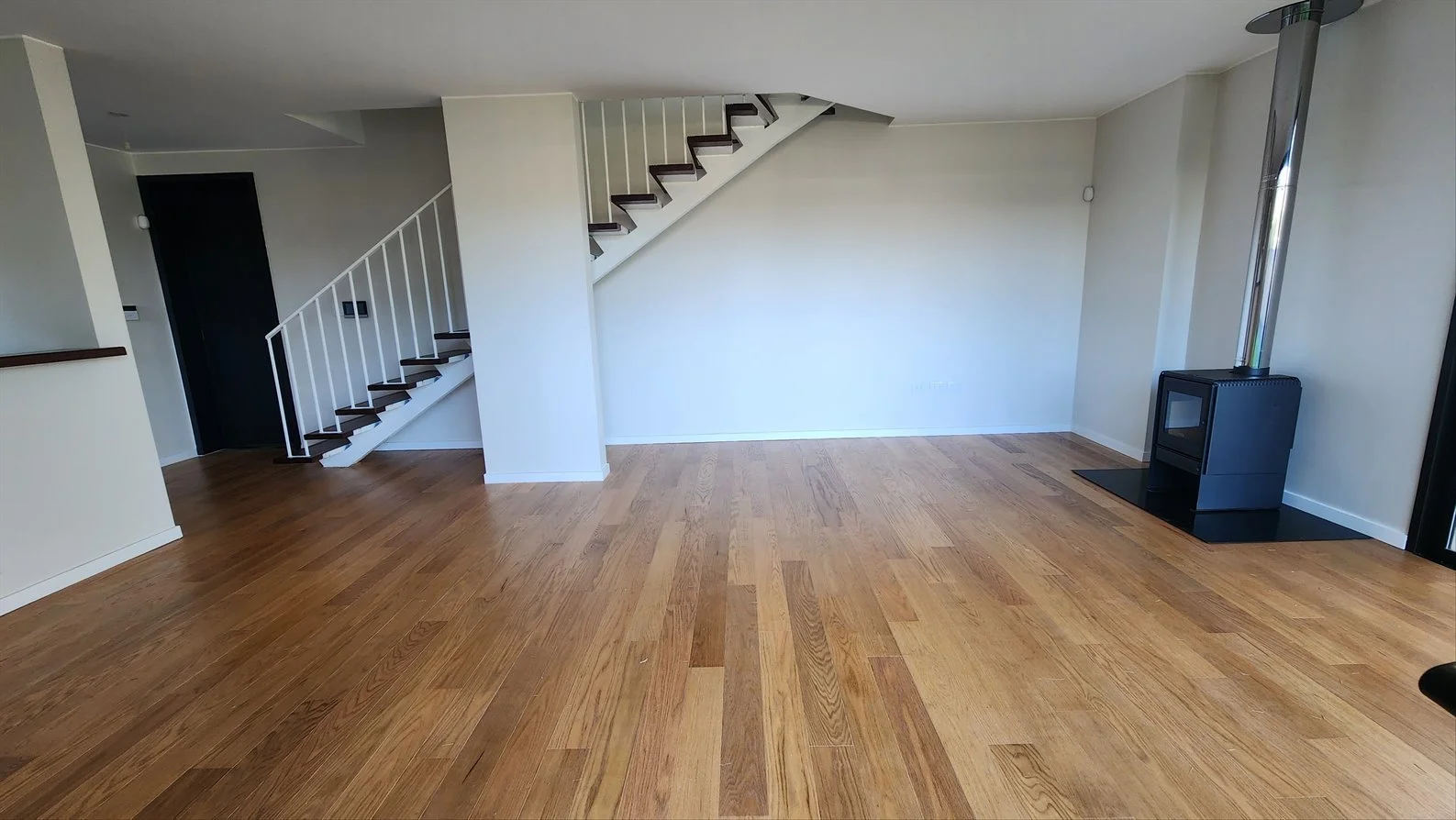 En 2 plantas , muy lindo diseño y materiales nobles como pisos de roble y ventanales dobles de vidrio (DVH).