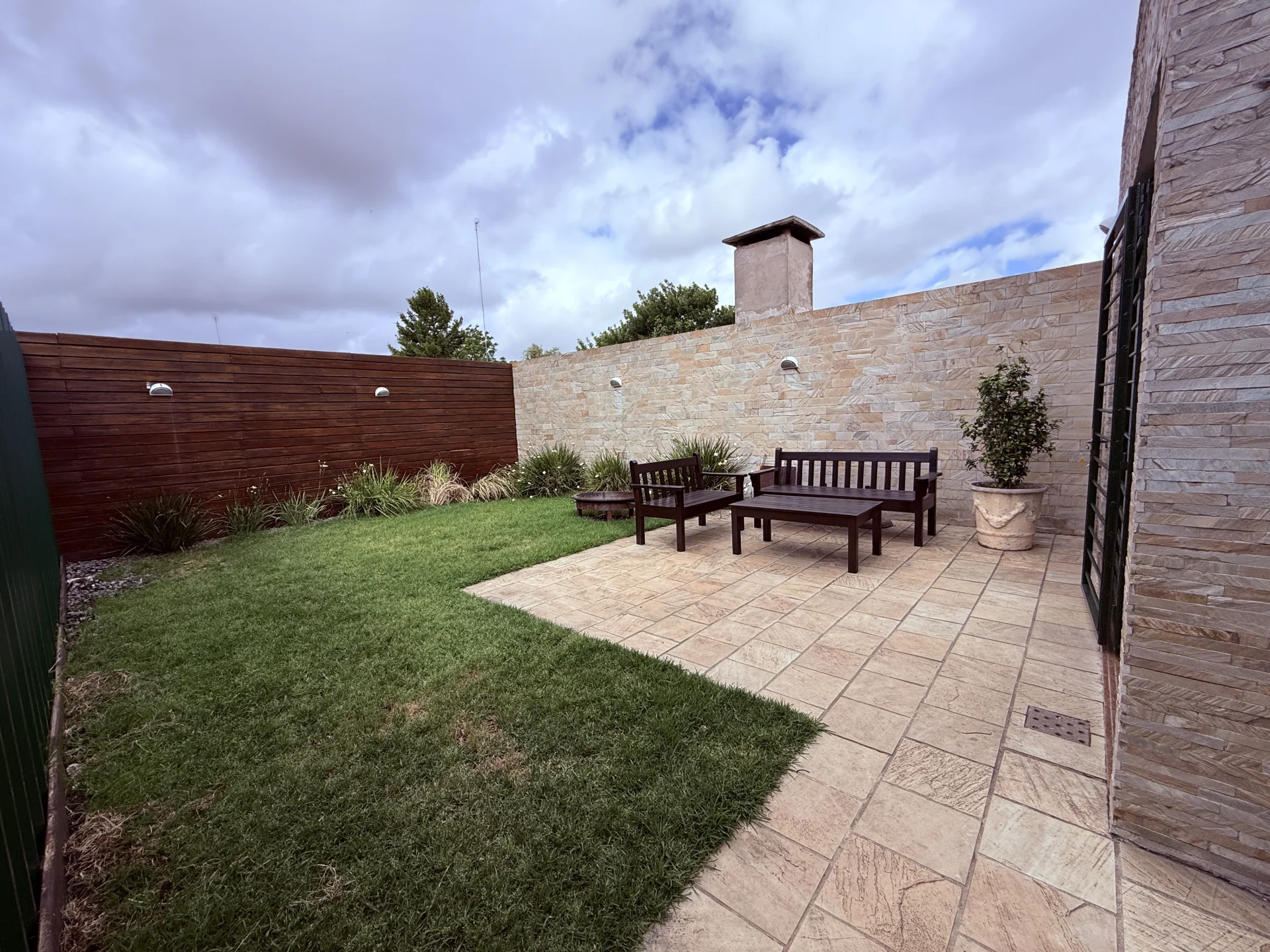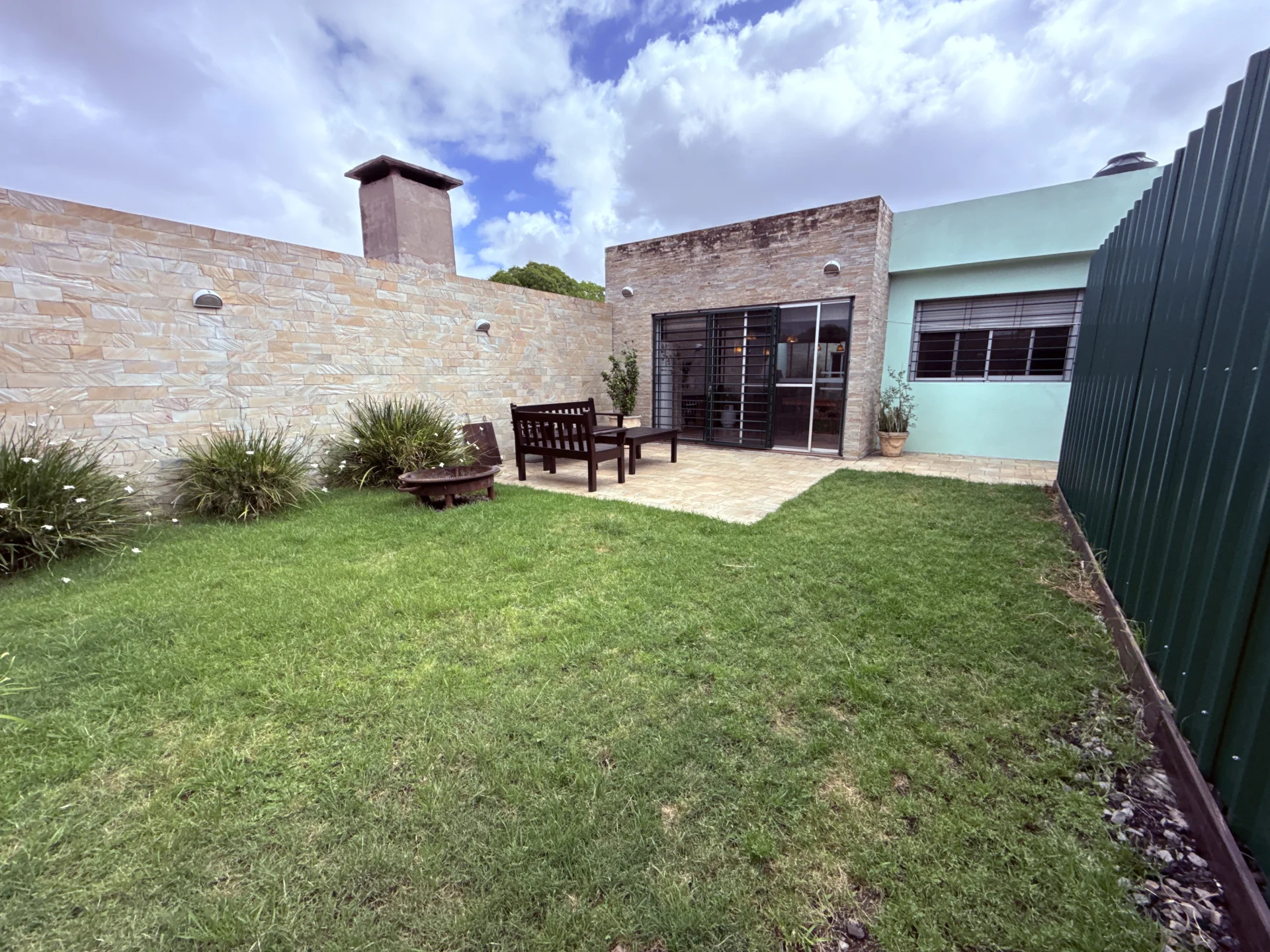 Excelente casa PH independiente desarrollada en una planta con 3 dormitorios, hall de distribucion amplio living comedor con cocina americana con horno y anafe empotrado, parrillero, calefaccion por estufa de alto rendimiento a pellet, aire acondicionado, baño con mampara de vidrio templado, lavaropa, calefon, patio interno con reja superior, patio con césped, rejas, Garaje cerrado y cochera abierta, Porton corredizo automatizado y mas. !!!