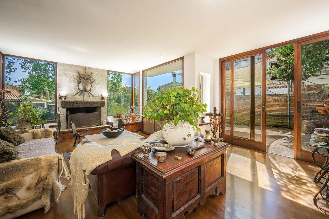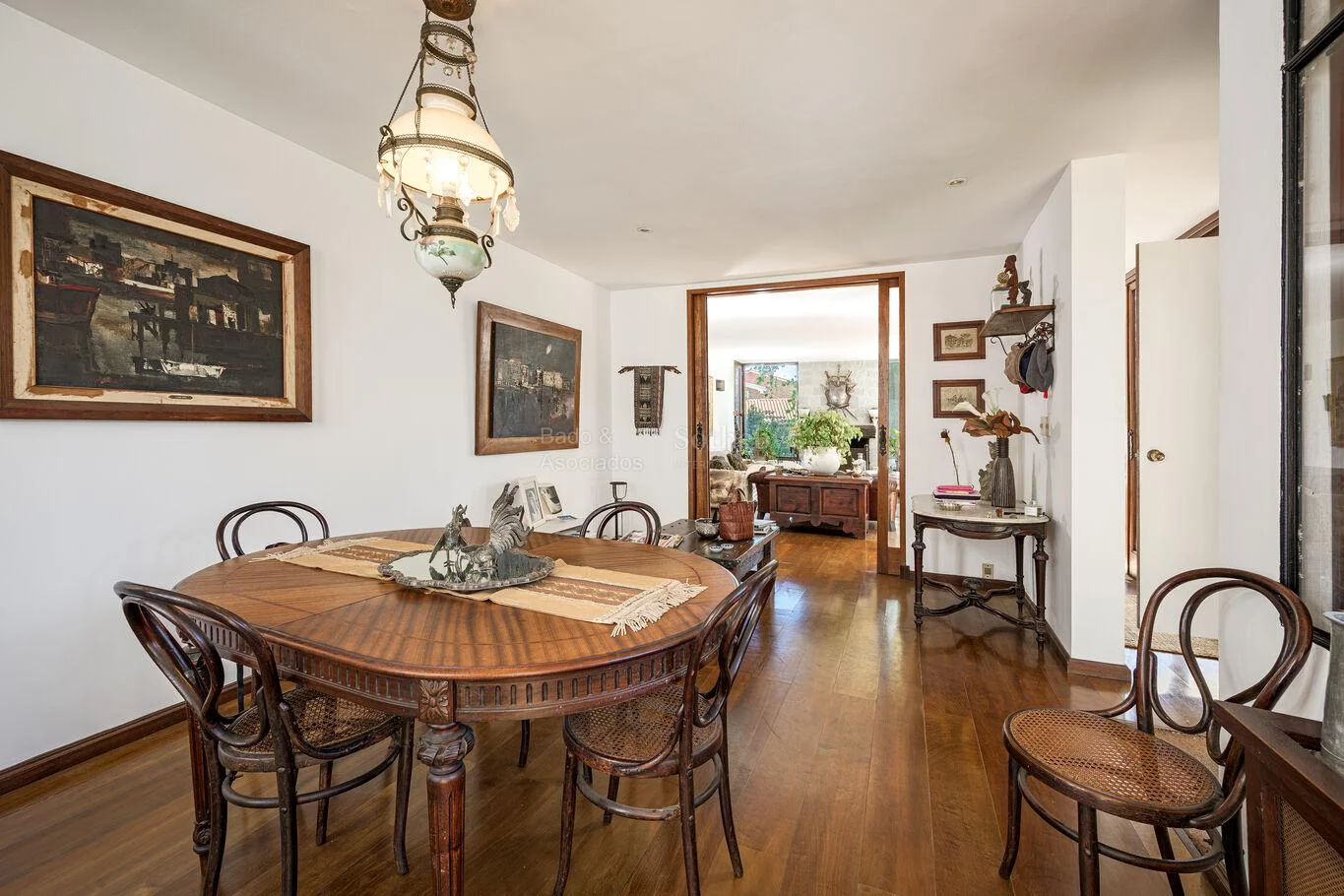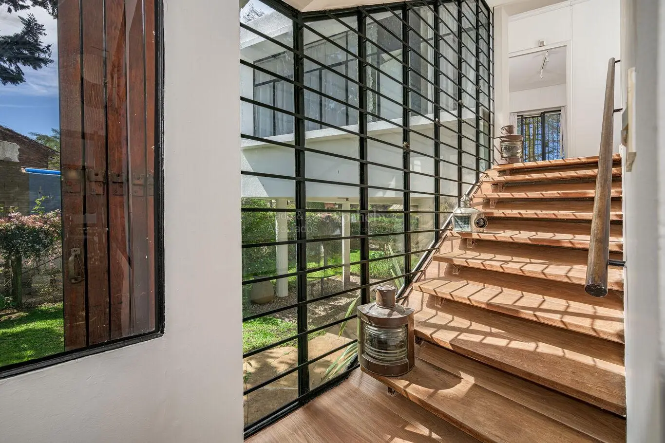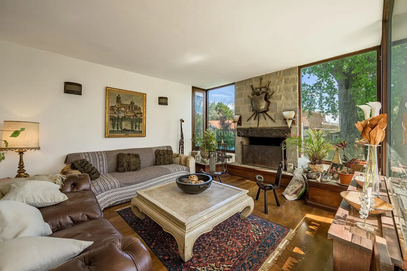 - Amplio living comedor desarrollado en dos ambientes, con estufa a leña, ventanales y salida al jardín.