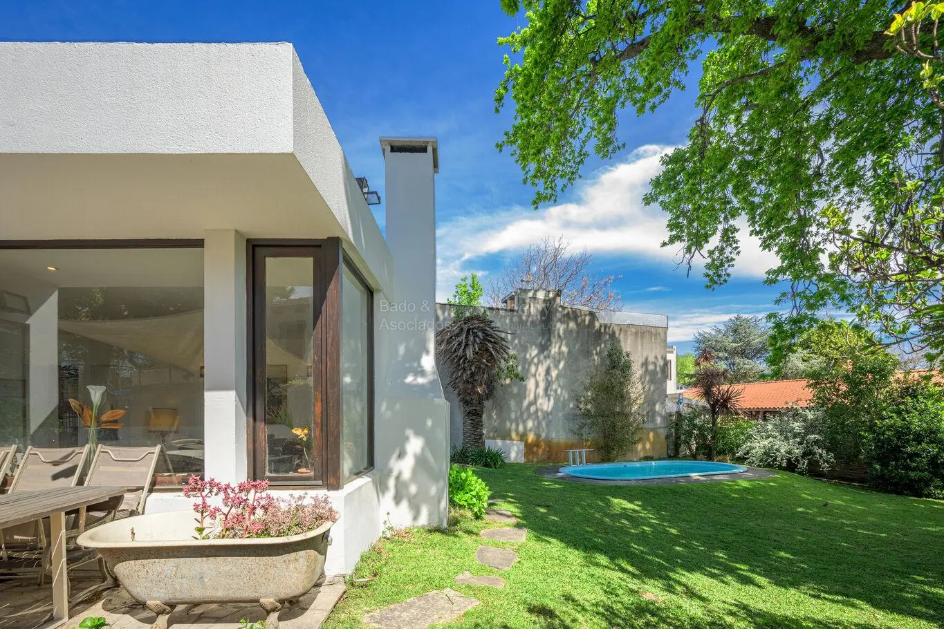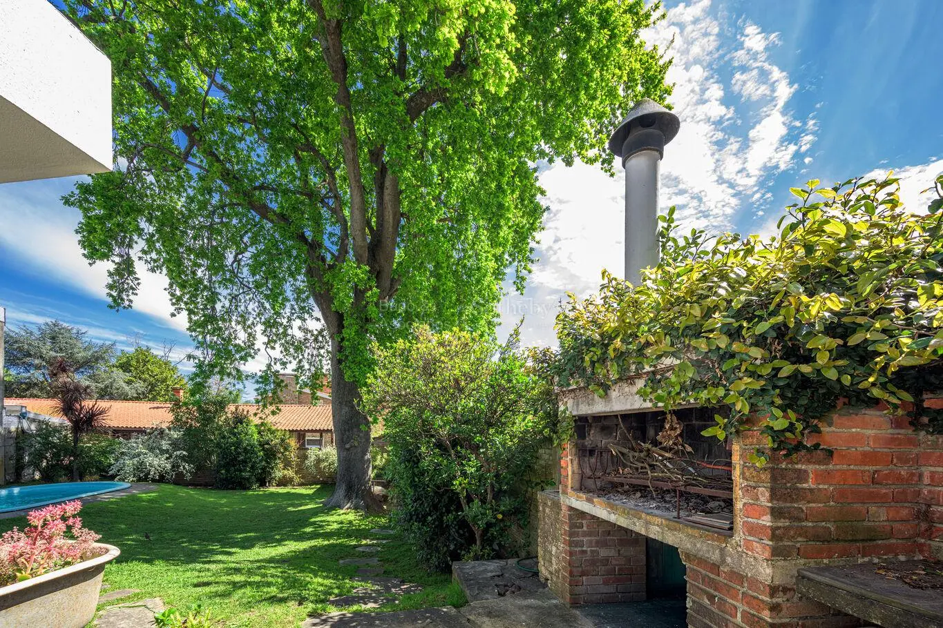- Jardín consolidado con privacidad, piscina y parrillero .