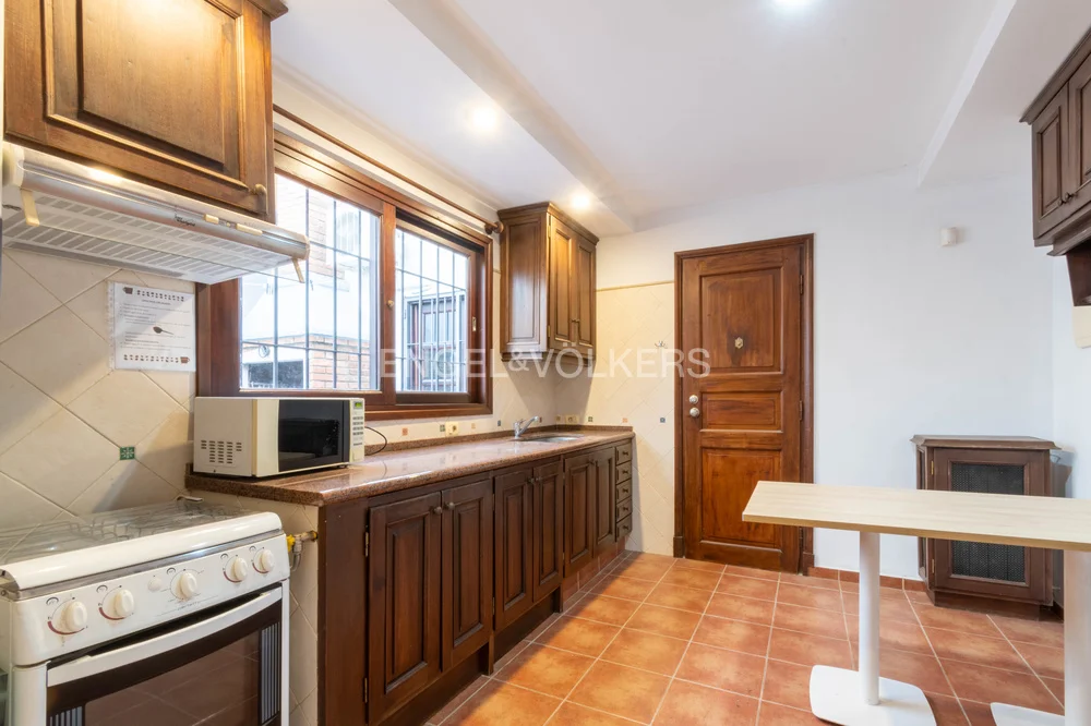 Garaje cerrado con entrada independiente, vinculado a la cocina y con salida al patio. Dormitorio de servicio en suite actualmente acondicionado con kitchenette y vinculado a un estar/escritorio en planta alta con salida a terraza.