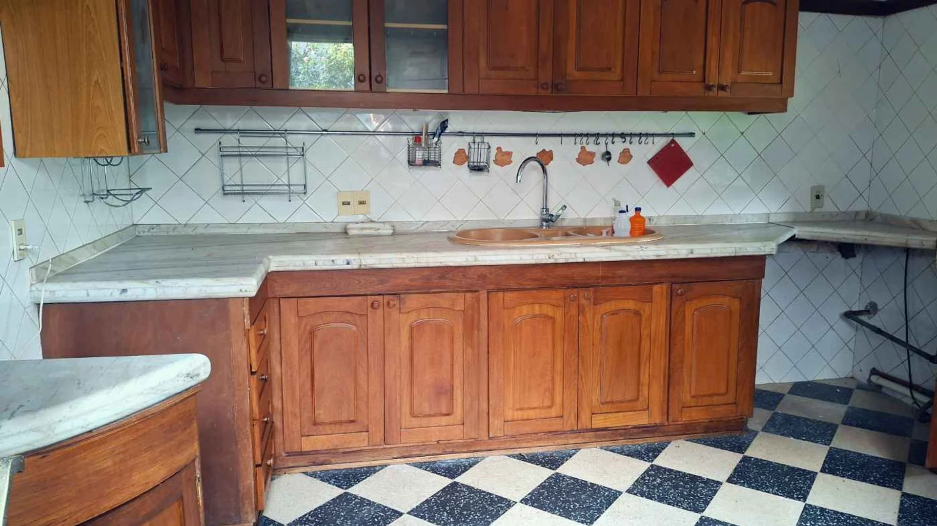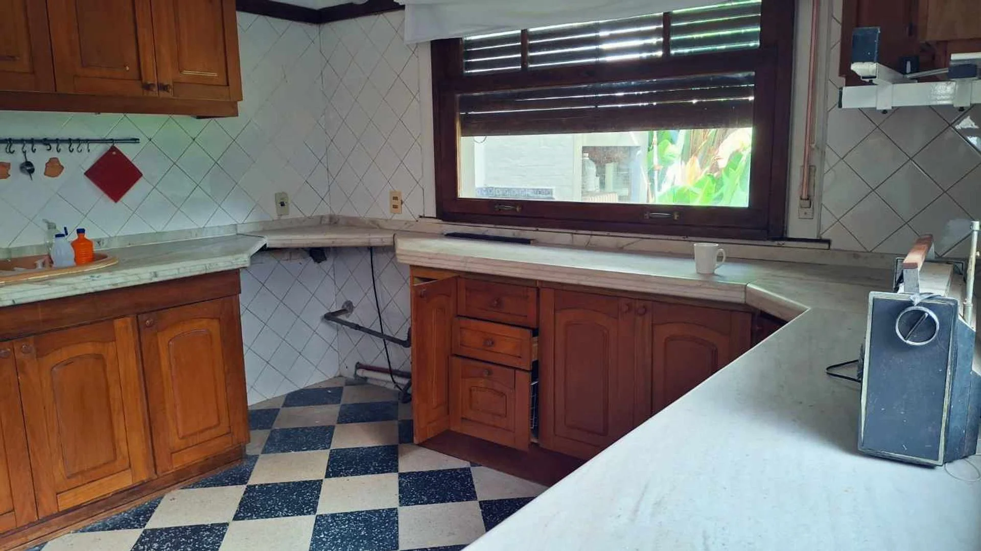 El terreno de 240 m² ofrece espacios exteriores con piso de piedra granítica gris, capacidad para estacionar 2-3 vehículos y potencial de expansión constructiva. Construida originalmente en 1956, mantiene características estructurales de alta calidad.