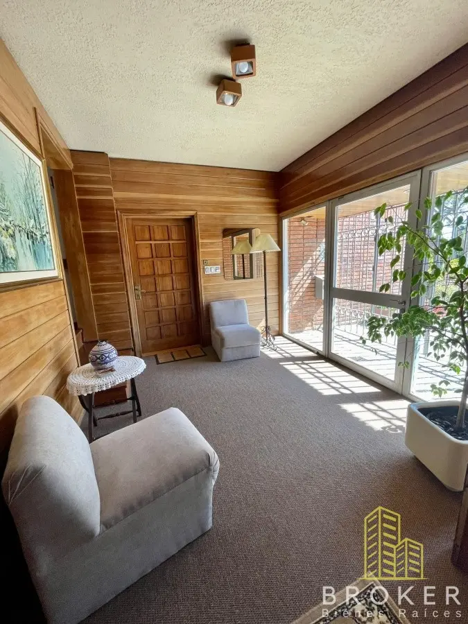 Entrada independiente por hall donde se dividen las 3 unidades. Cochera lateral propia de uso exclusivo y ademas garage para guardar un auto. Luminoso living amplio con desniveles, estar diario y comedor con estufa leña y salida al fondo. Cocina definida, baño en pb completo, lavadero techado, barbacoa con parrillero, espectacular vegetacion. Posibilidad y superficie para colocar piscina. En planta alta 3 dormitorios de muy buen tamaño con placares y un baño amplio completo. Gastos comunes $4000 Referencia Interna : Tera-669