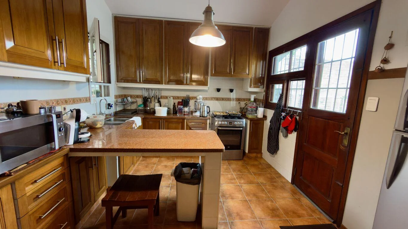 *Living amplio y estar con estufa a leña, ideal para reuniones familiares o tardes de invierno con el fuego de fondo. Cocina definida, práctica y bien conectada con las áreas sociales.