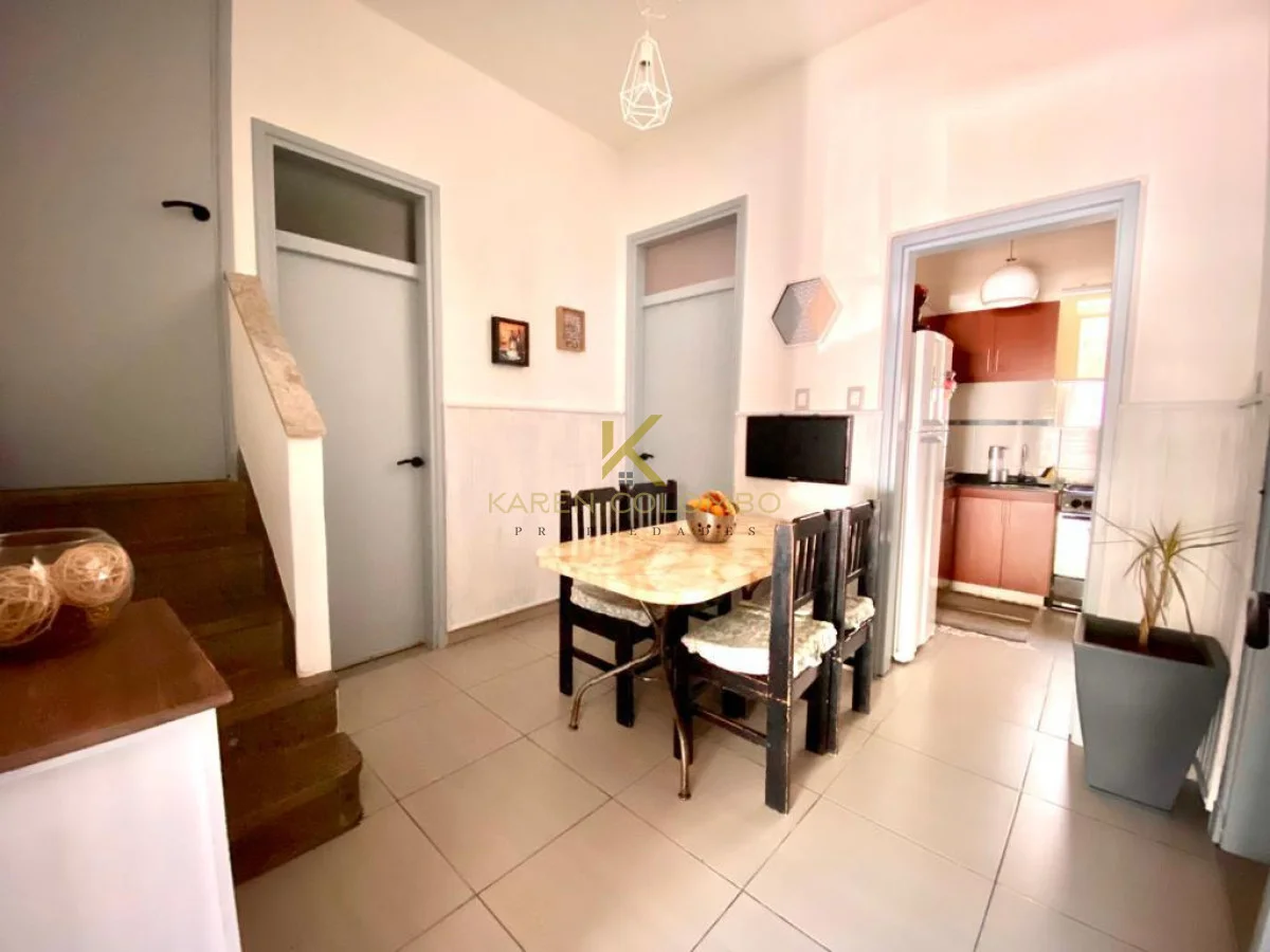 Ingresamos a un cómodo living con ventana al frente y estufa a leña. En el sector central se encuentra el comedor, que distribuye hacia los distintos ambientes y comunica con la cocina definida, equipada con muebles bajo mesada y aéreos.