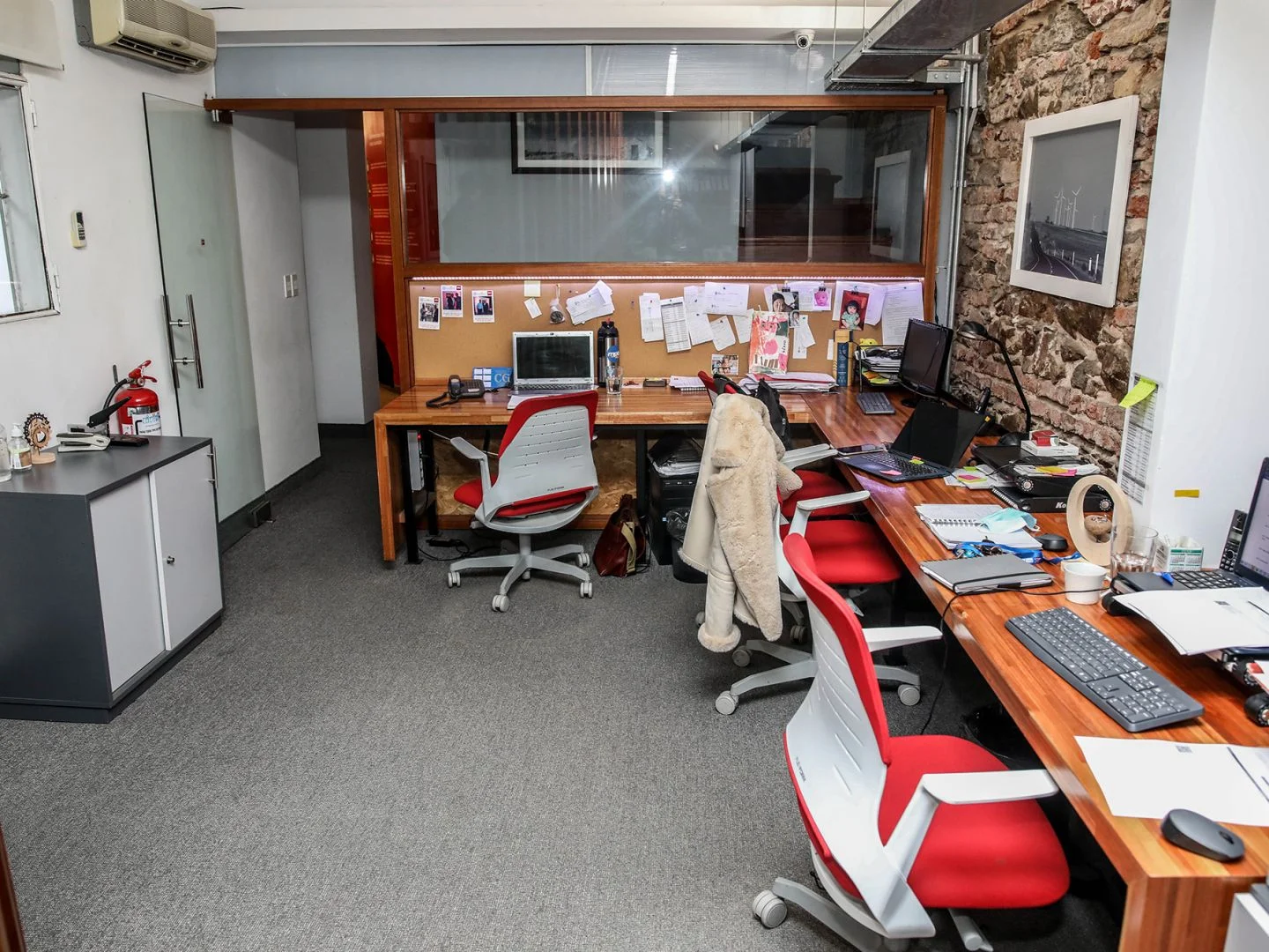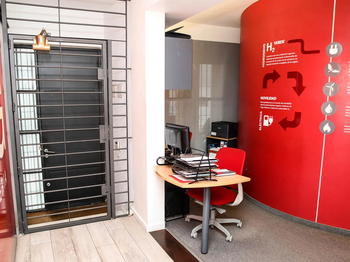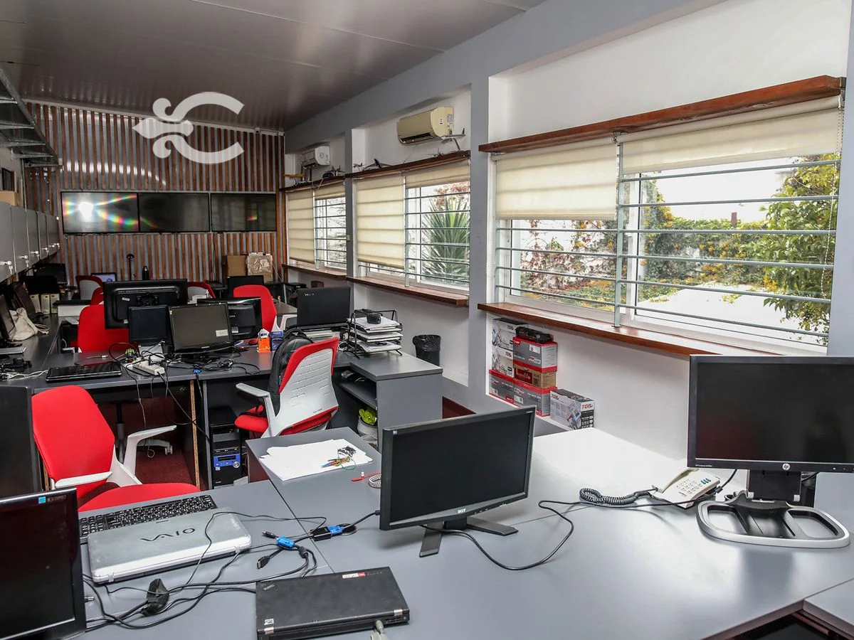 Desarrollada en 2 plantas. En planta baja recepción, sala de reuniones, open office, 1 oficina pequeña, amplia cocina, baño y patio con parrillero y barbacoa cerrada. En planta alta open office, 2 oficinas, baño completo y amplia terraza. Garaje para un auto.