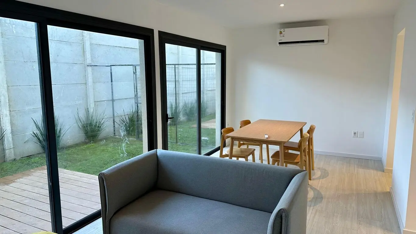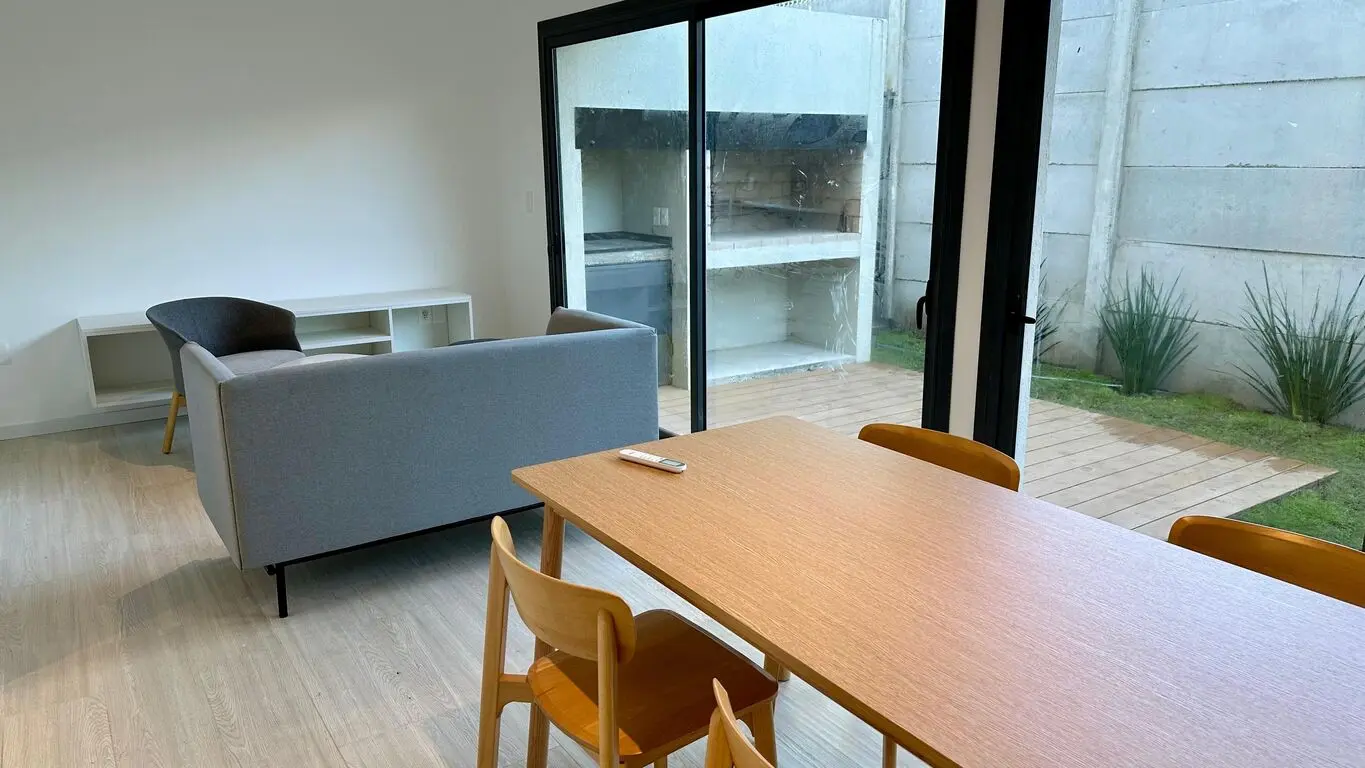 A estrenar en Carrasco Norte. Living con estufa de leña, comedor. Toilette. Cocina definida. En planta alta 2 dormitorios, 2 baños, prinicpal en suite con vestidor. Prevision para aire acondicionado. Fondo con parrillero. Cochera para 1 auto.