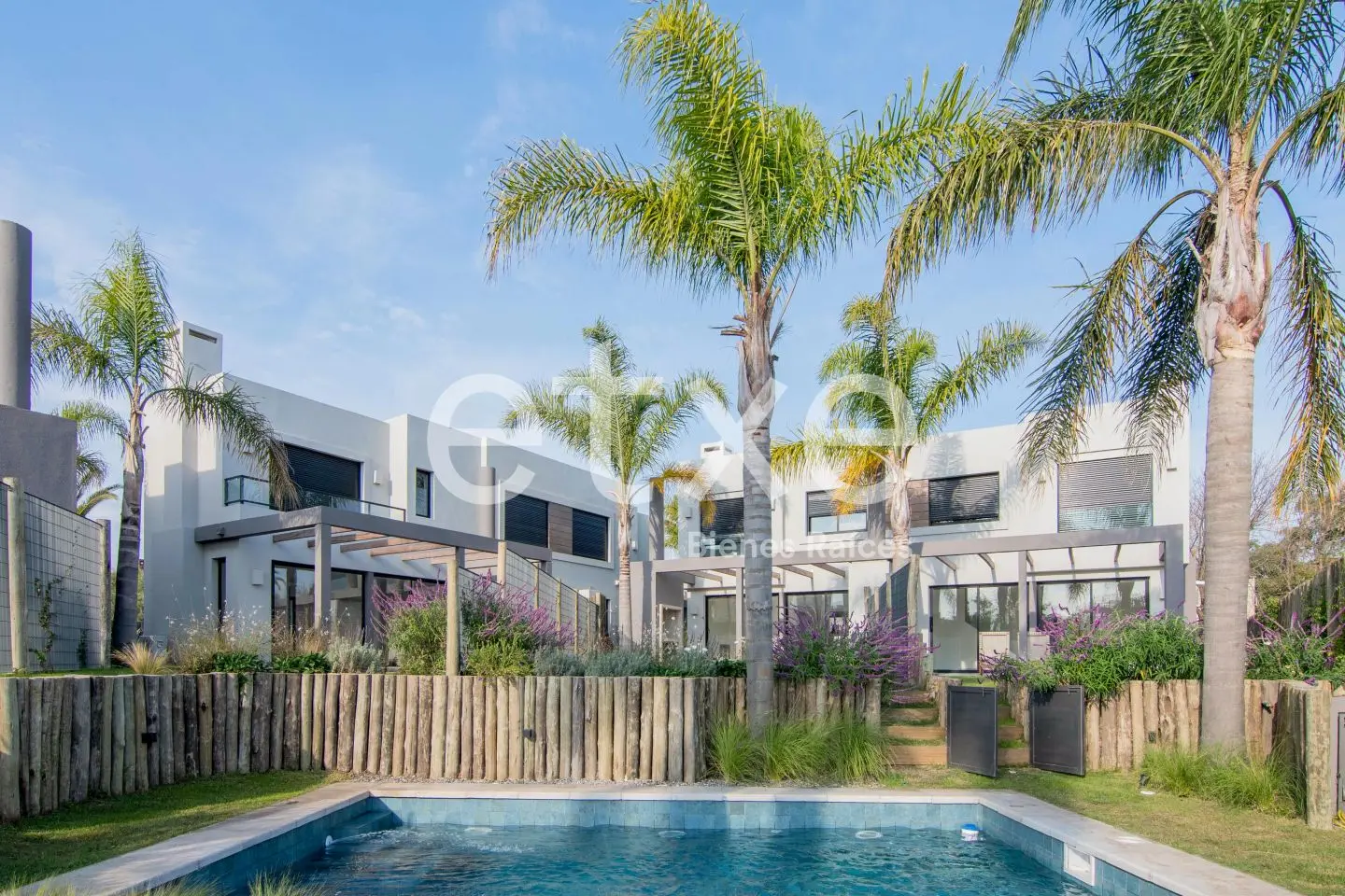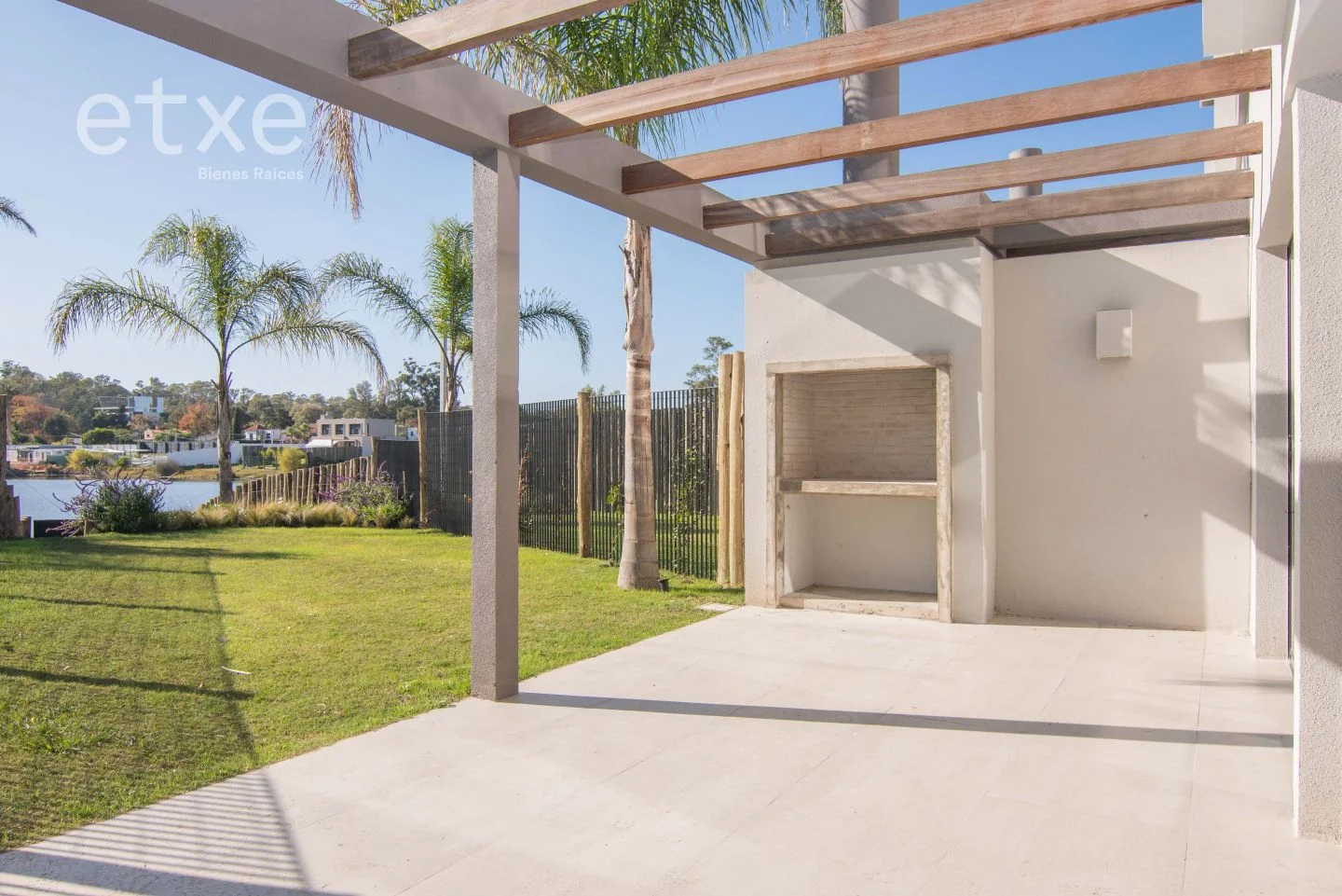 La casa cuenta terraza pergolada, parrillero y un jardín que sale a la piscina y lago.