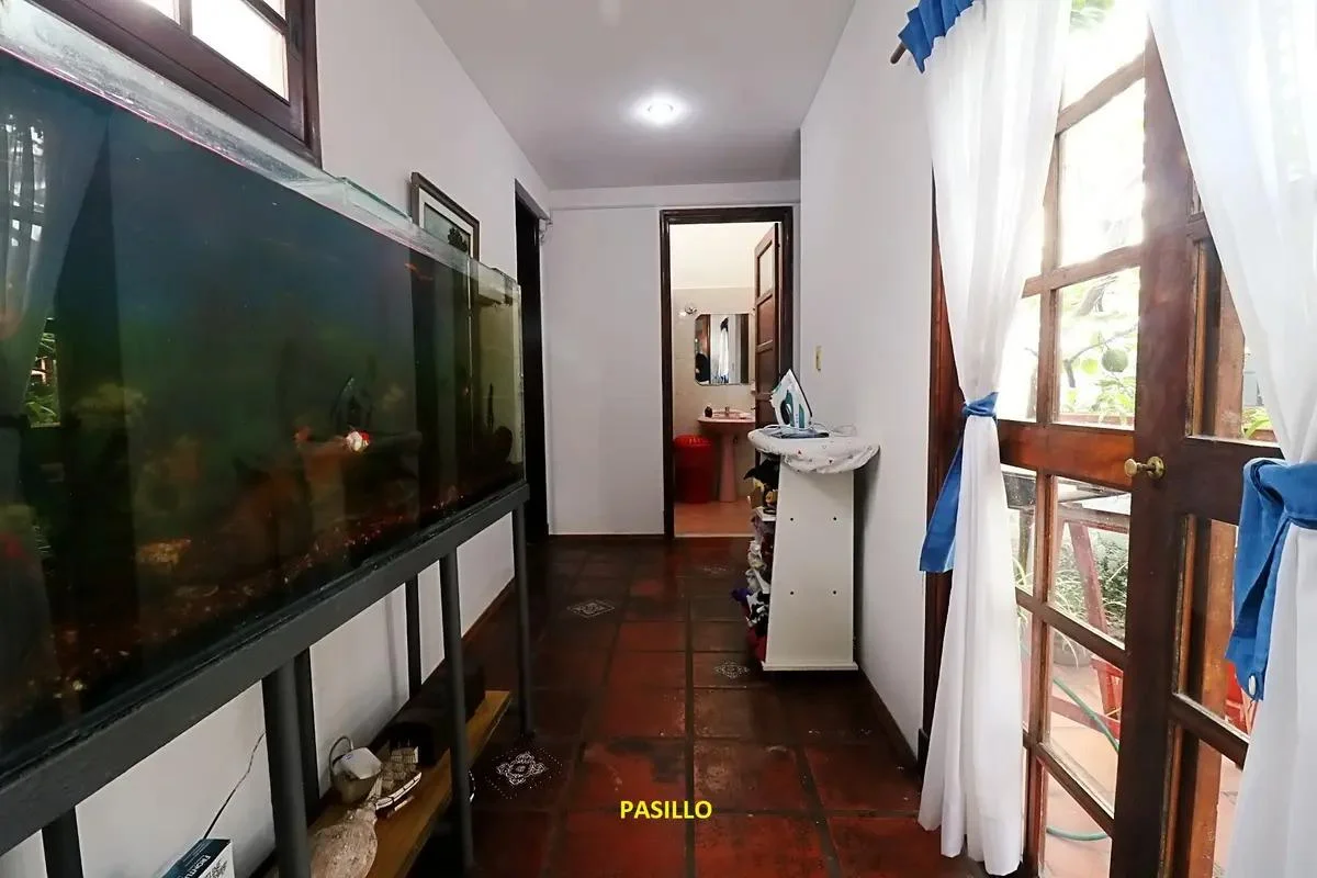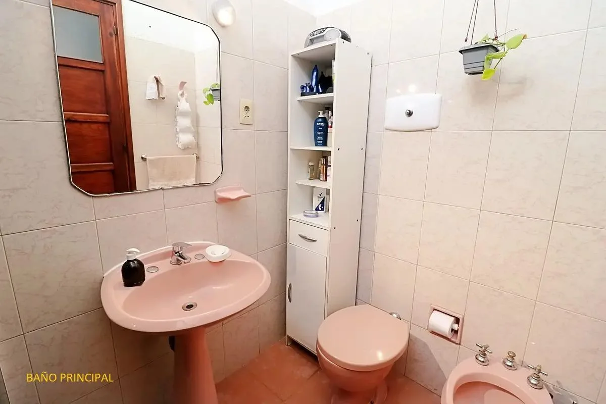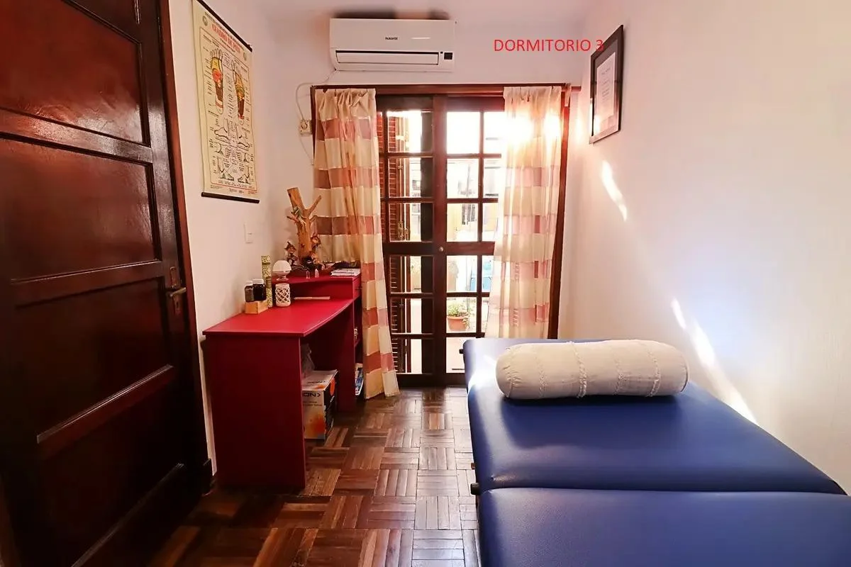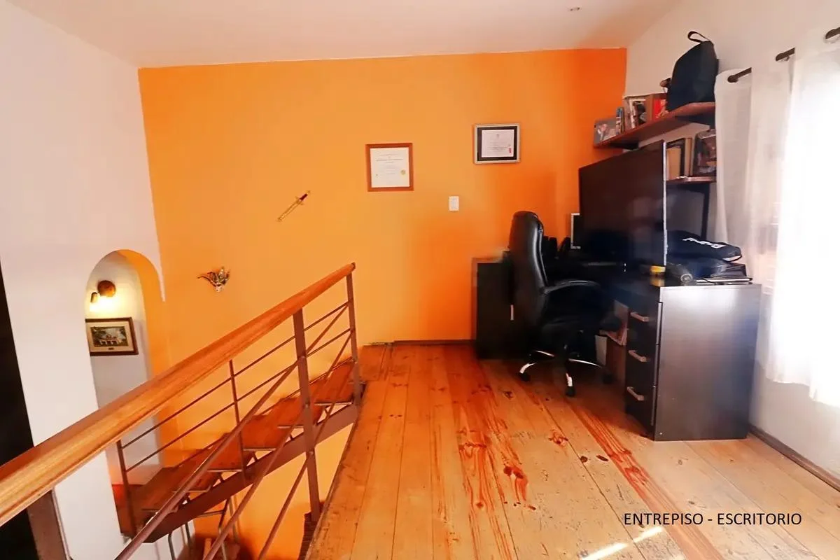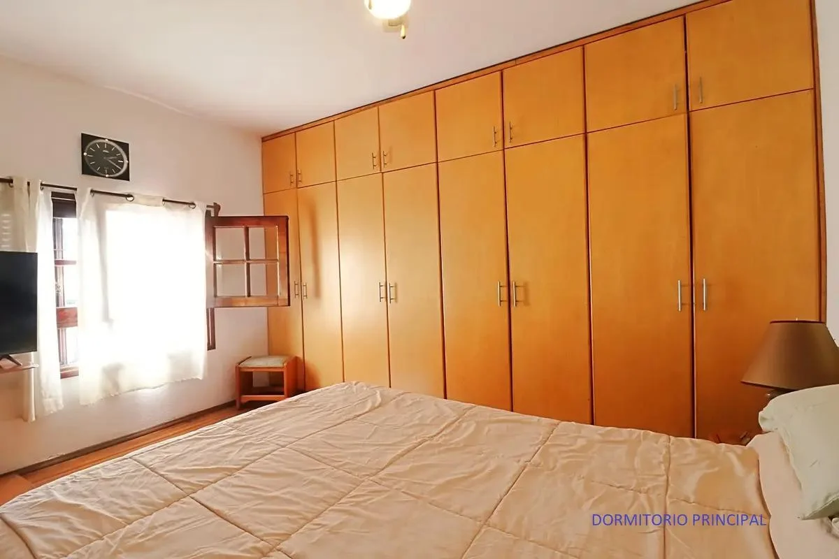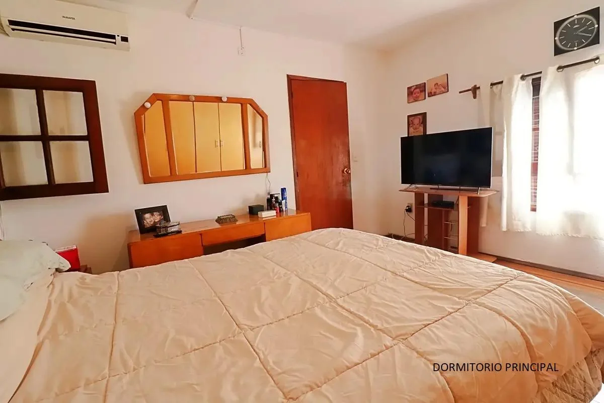 En el interior, el dormitorio principal es un espacio de confort y funcionalidad, con un amplio placard de pared a pared, equipado con estantes extraíbles. El piso es de pinotea plastificada, y la habitación está equipada con aire acondicionado, proporcionando un ambiente cómodo todo el año. Los otros dos dormitorios, ubicados en la planta baja, también cuentan con pisos de parquet plastificado y aire acondicionado, asegurando la comodidad en cada rincón de la casa.