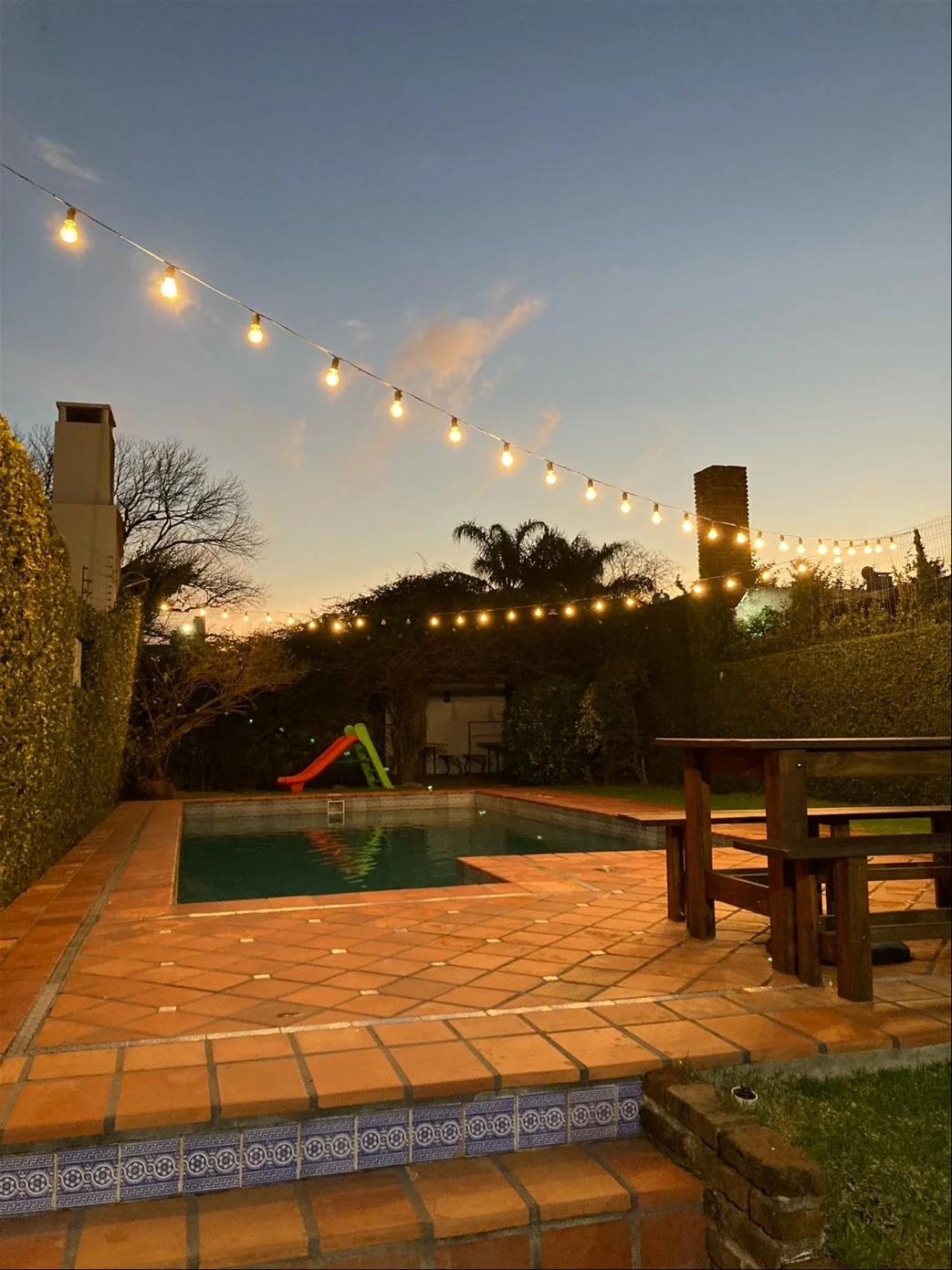 Barbacoa integrada con parrillero y salida al fondo con piscina