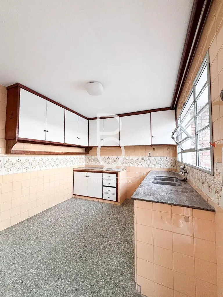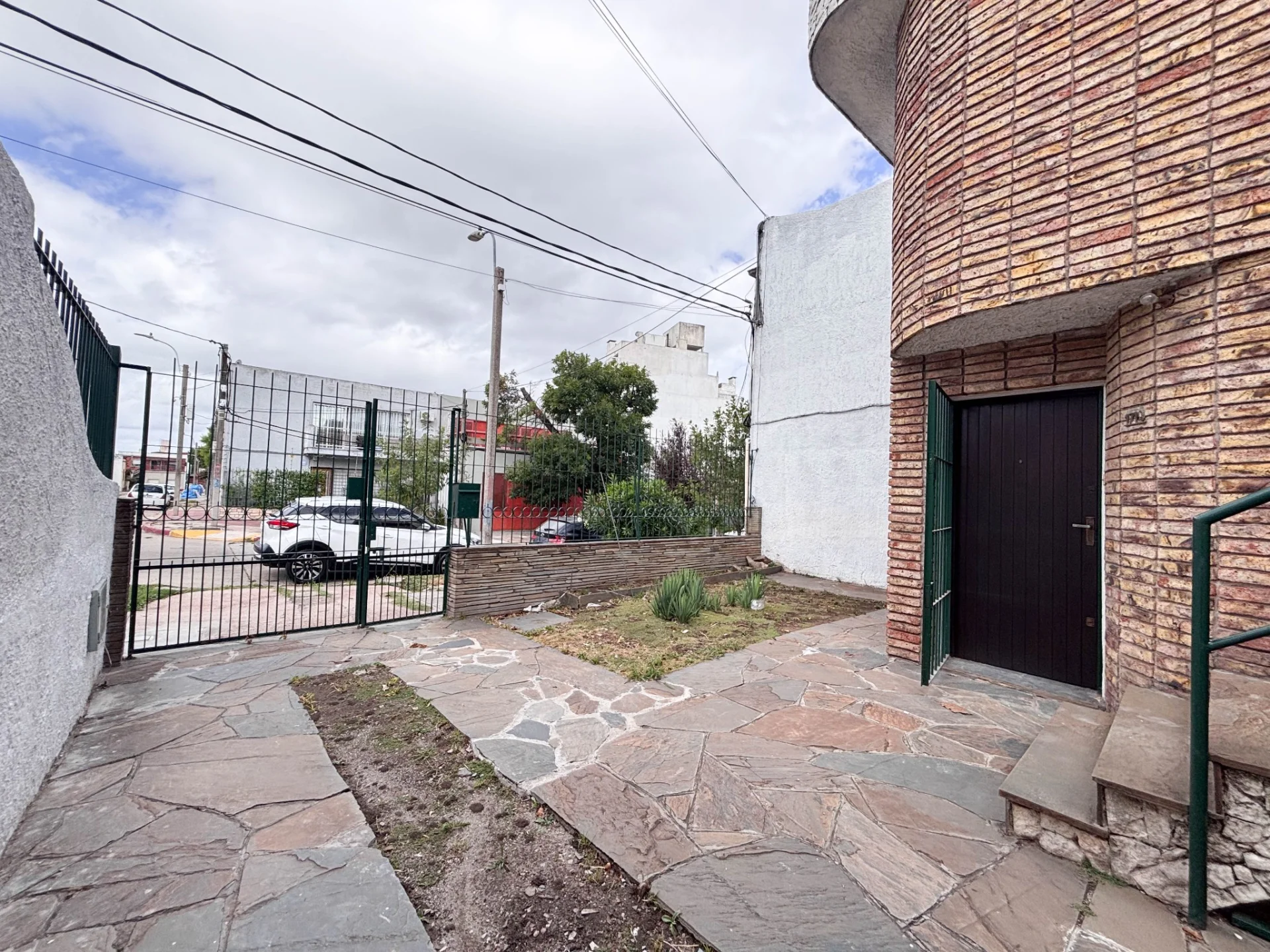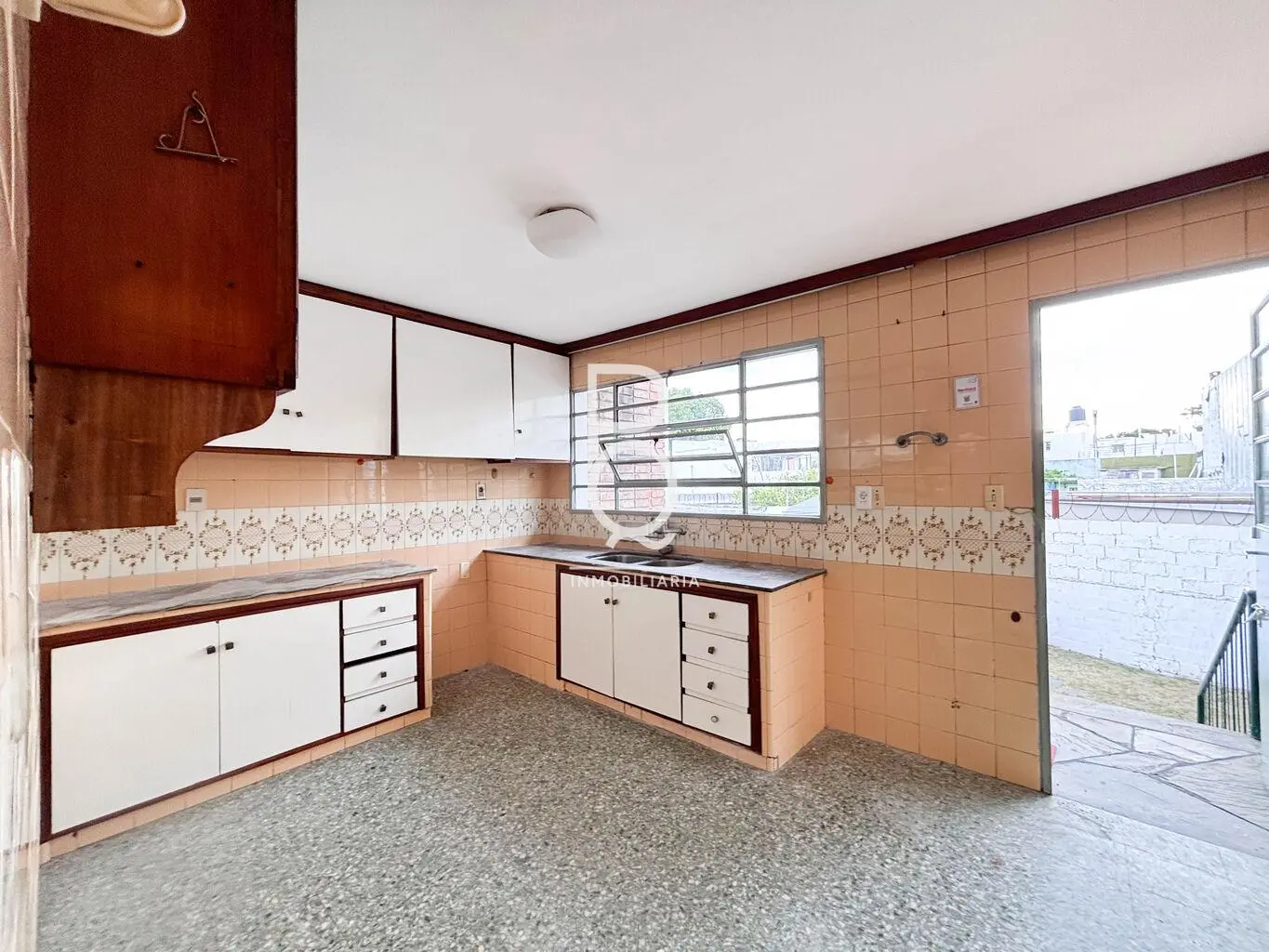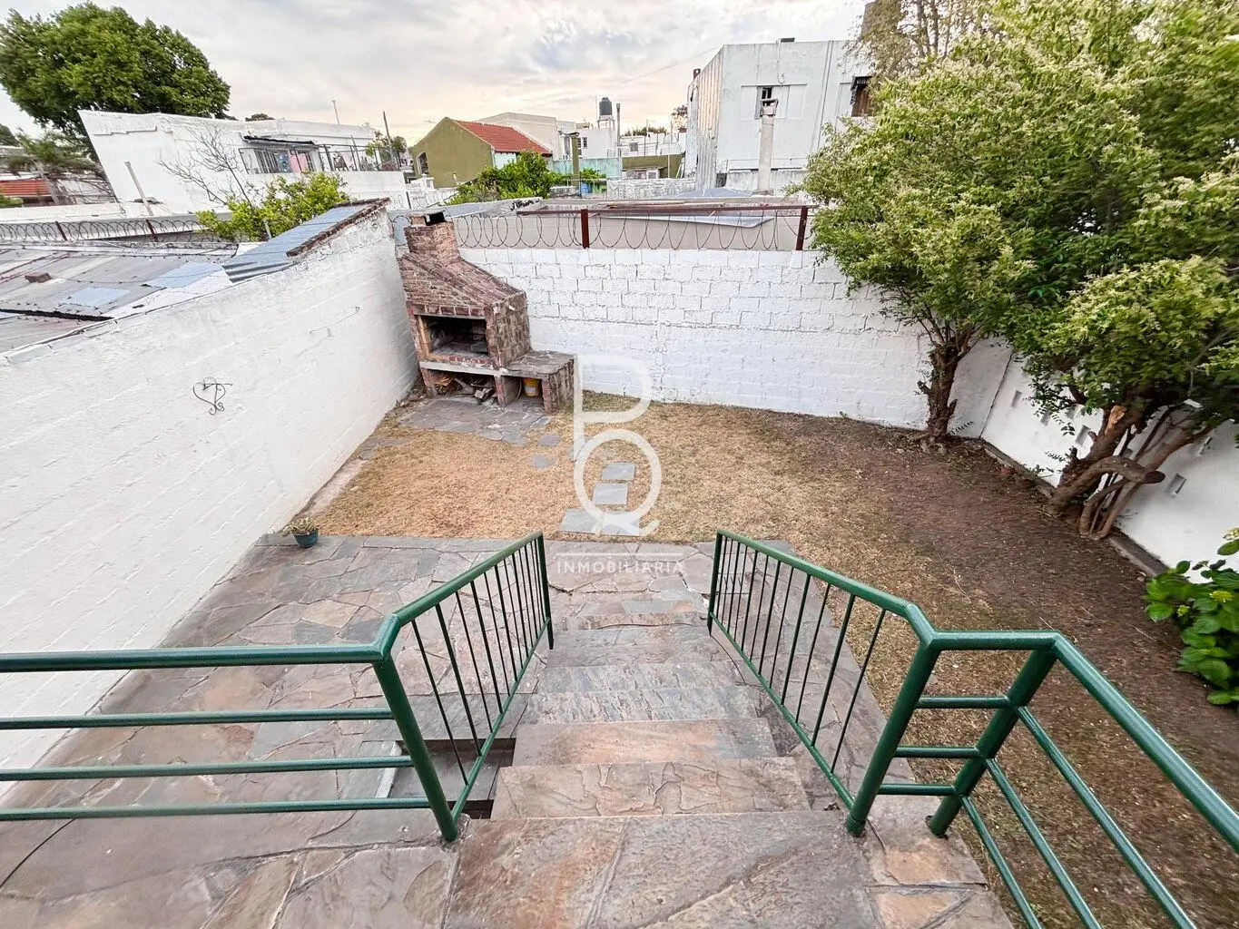 En esta planta se ubica también un dormitorio con placar, cocina definida con abundante mesada y armarios, muy funcional, con salida a una terraza desde la que se accede al fondo verde de la propiedad.