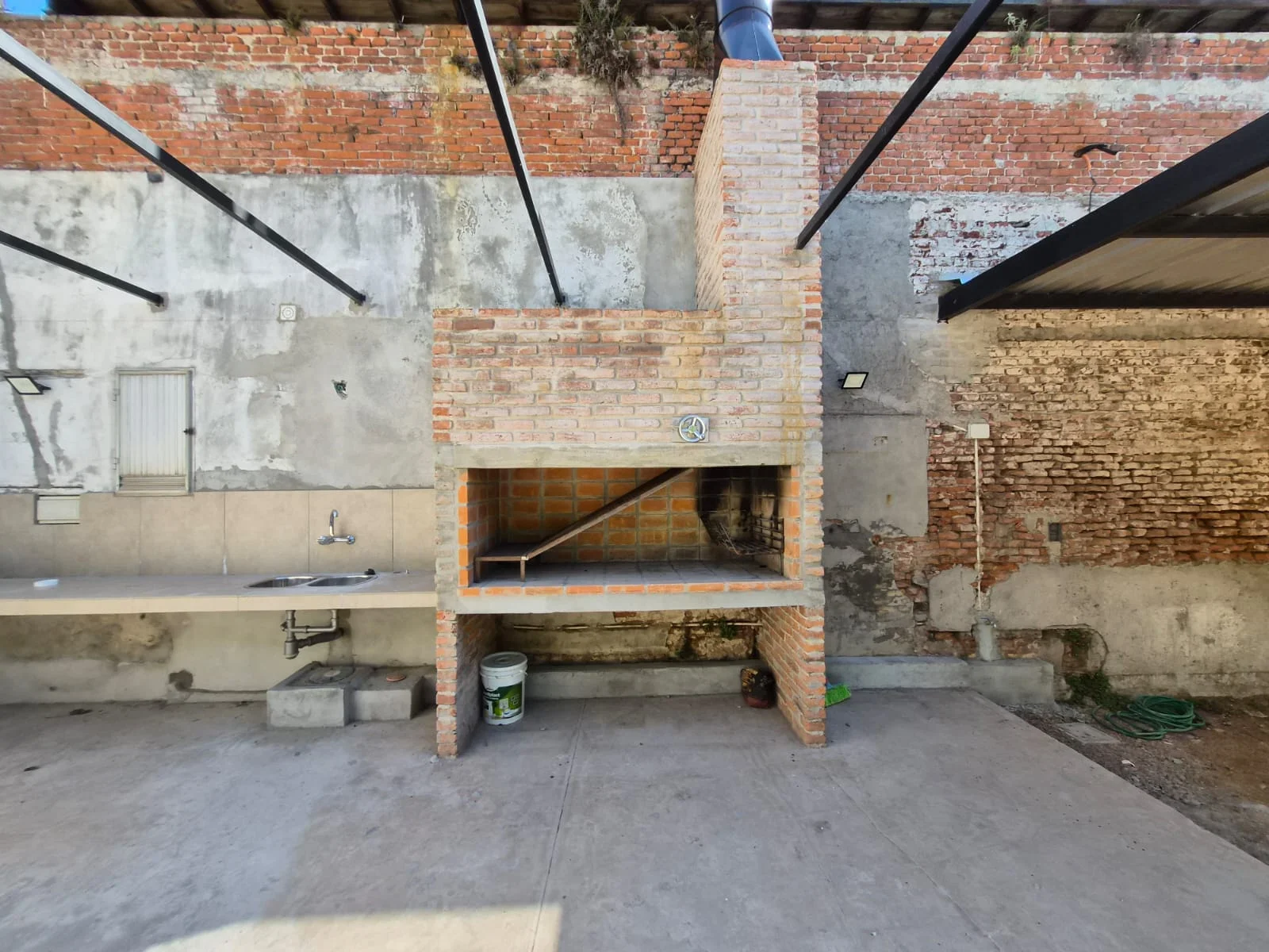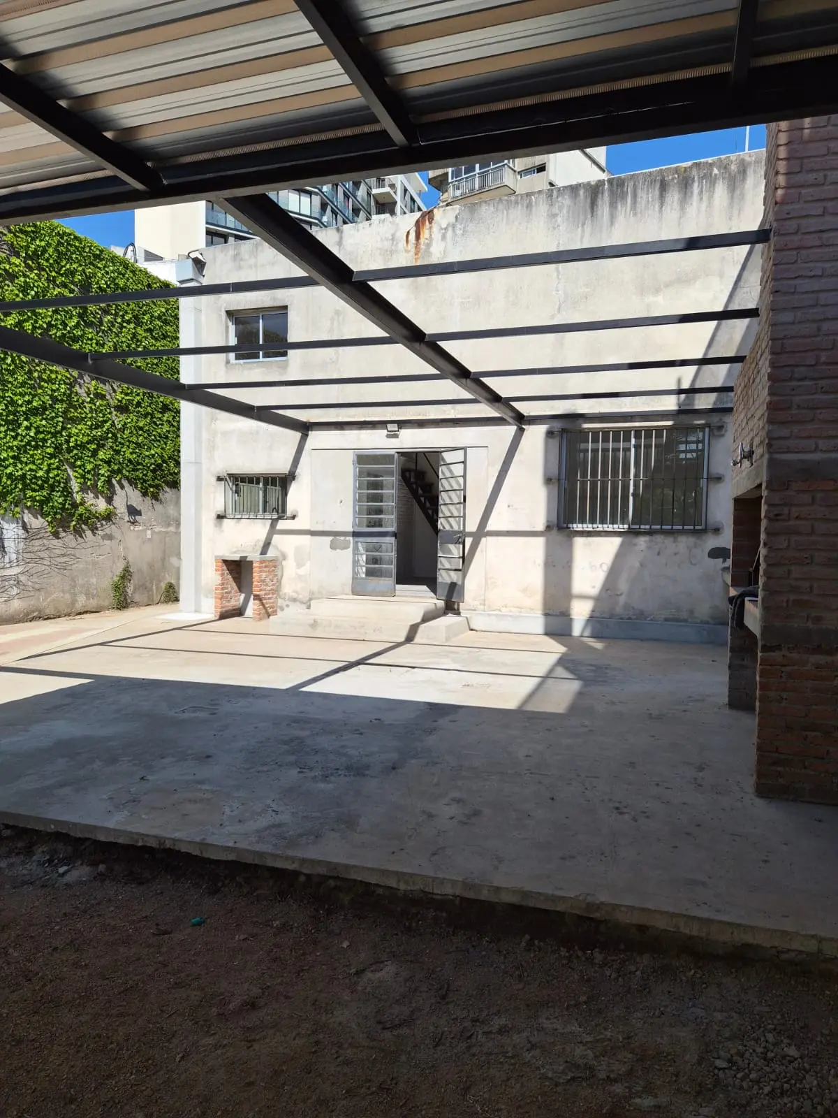 La casa dispone de un área de estacionamiento muy amplia y parrillero al aire libre, ideal para actividades sociales o institucionales. Los ambientes principales presentan pisos de cerámica y aberturas de aluminio con rejas, garantizando buena ventilación y seguridad.