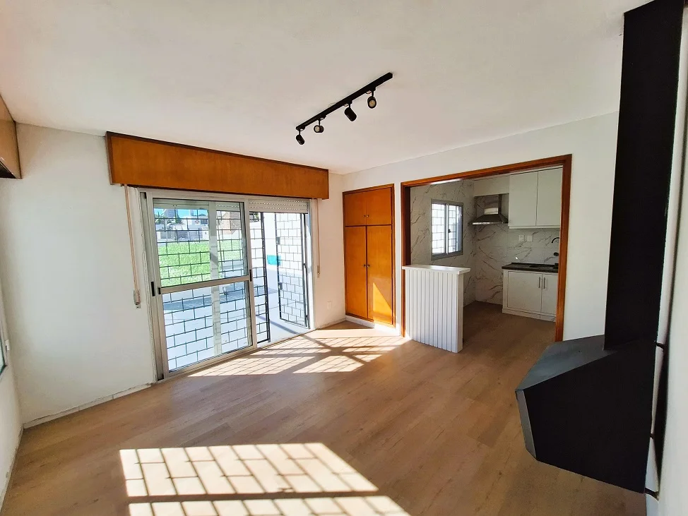 Acceso a living, cocina independiente con placares aéreos y bajo mesada, barra desayunadora y la misma se integra a un comedor diario con estufa a leña y salida a una gran terraza. Dos amplios dormitorios con placares y pisos de parquet, baño completo.