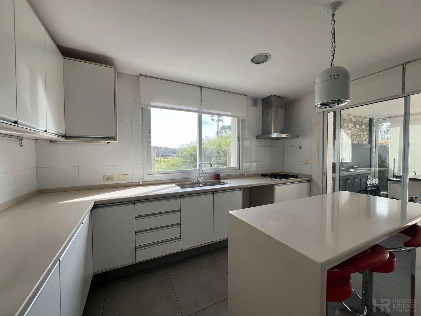 En planta baja; recibidor, amplio living conectado con comedor mediante puertas corredizas. Estar/escritorio. Toilette. Cocina definida con isla. Servicio completo.