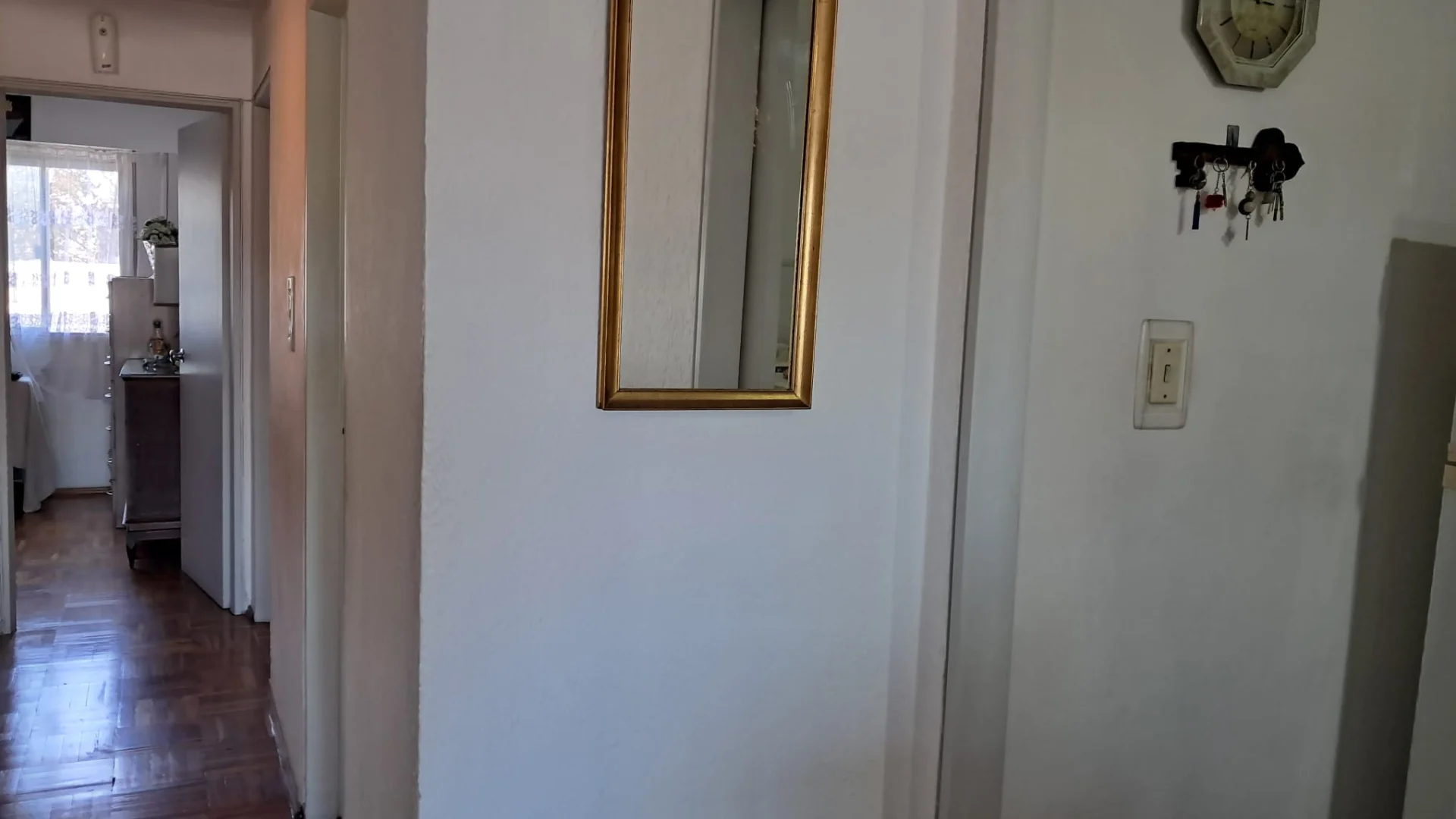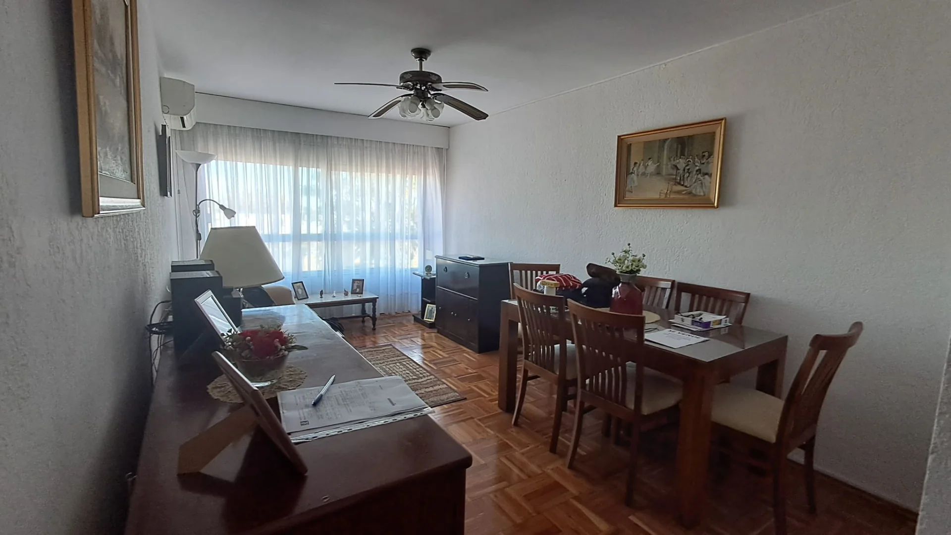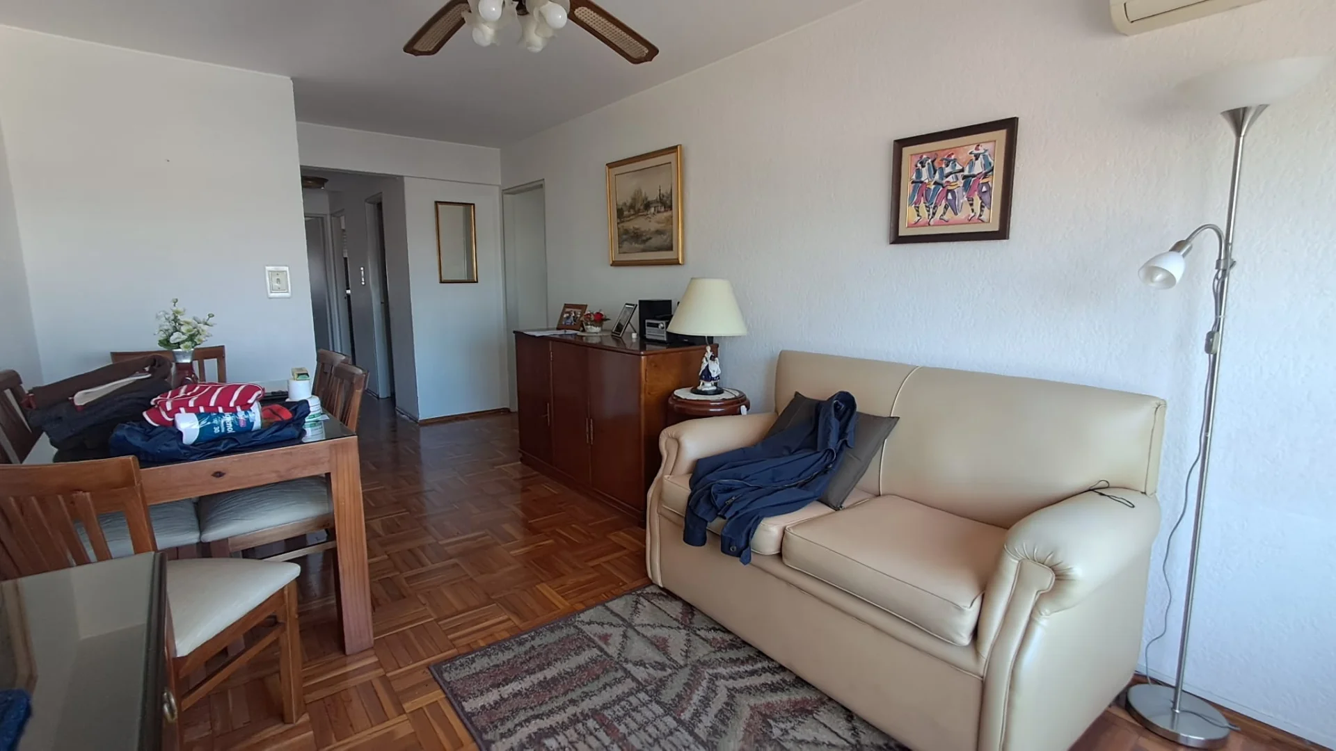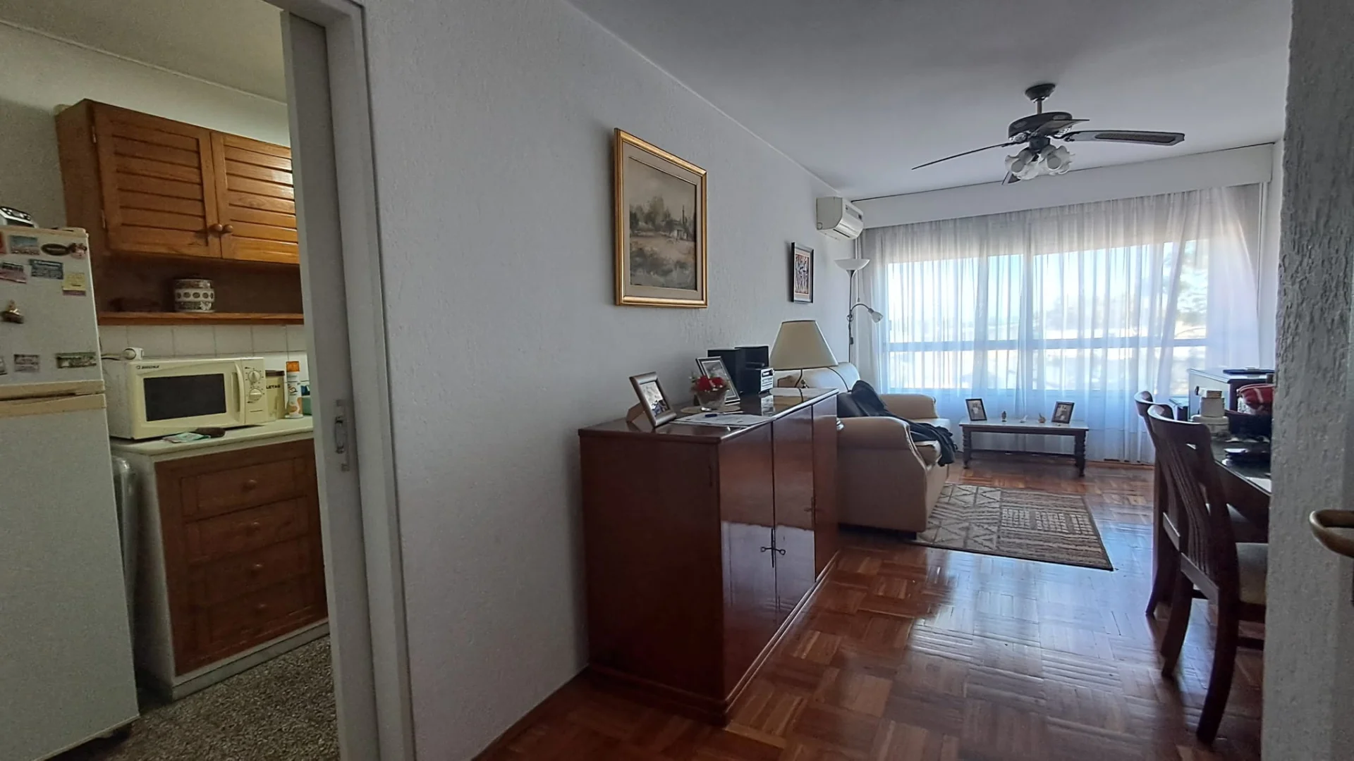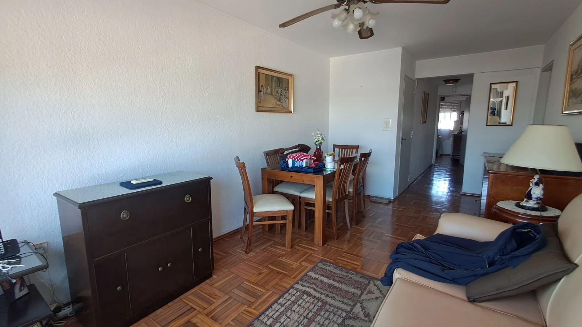 Al ingresar, buen living comedor en parquet con aire acondicionado, ventanal al frente en aluminio con cortina de enrrollar plástica.