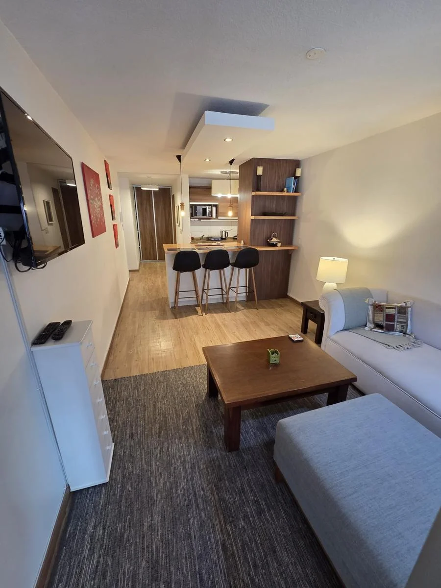21 casi Rambla, piso alto, nuevo.El apartamento se encuentra equipado super moderno, tiene living, cocina integrada, dormitorio, terraza al frente. Listo para mudarse, cerca de todo , en pleno corazón de Punta Carretas. El edificio tiene lavadero, barbacoa y vigilancia 24 hs.