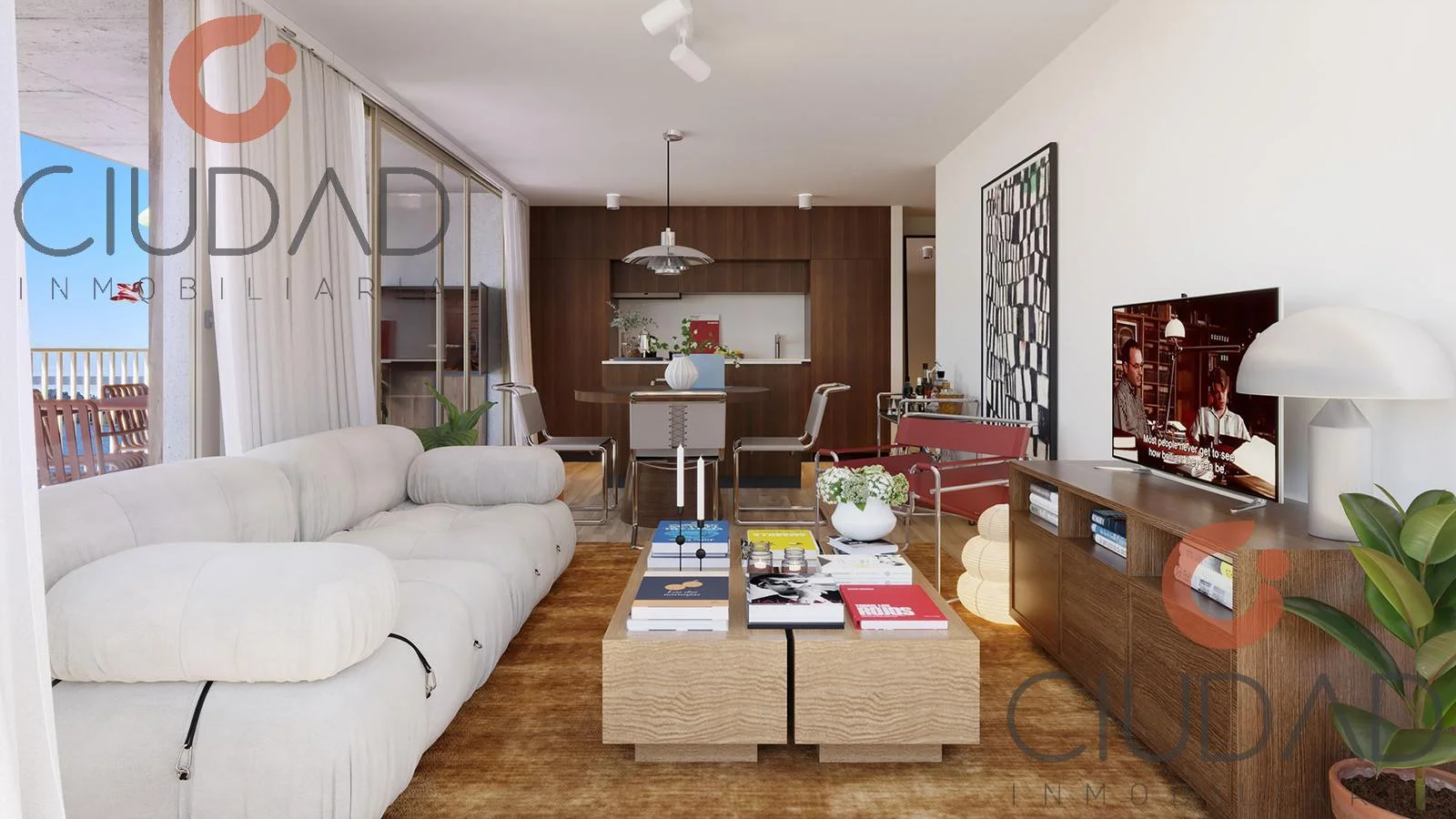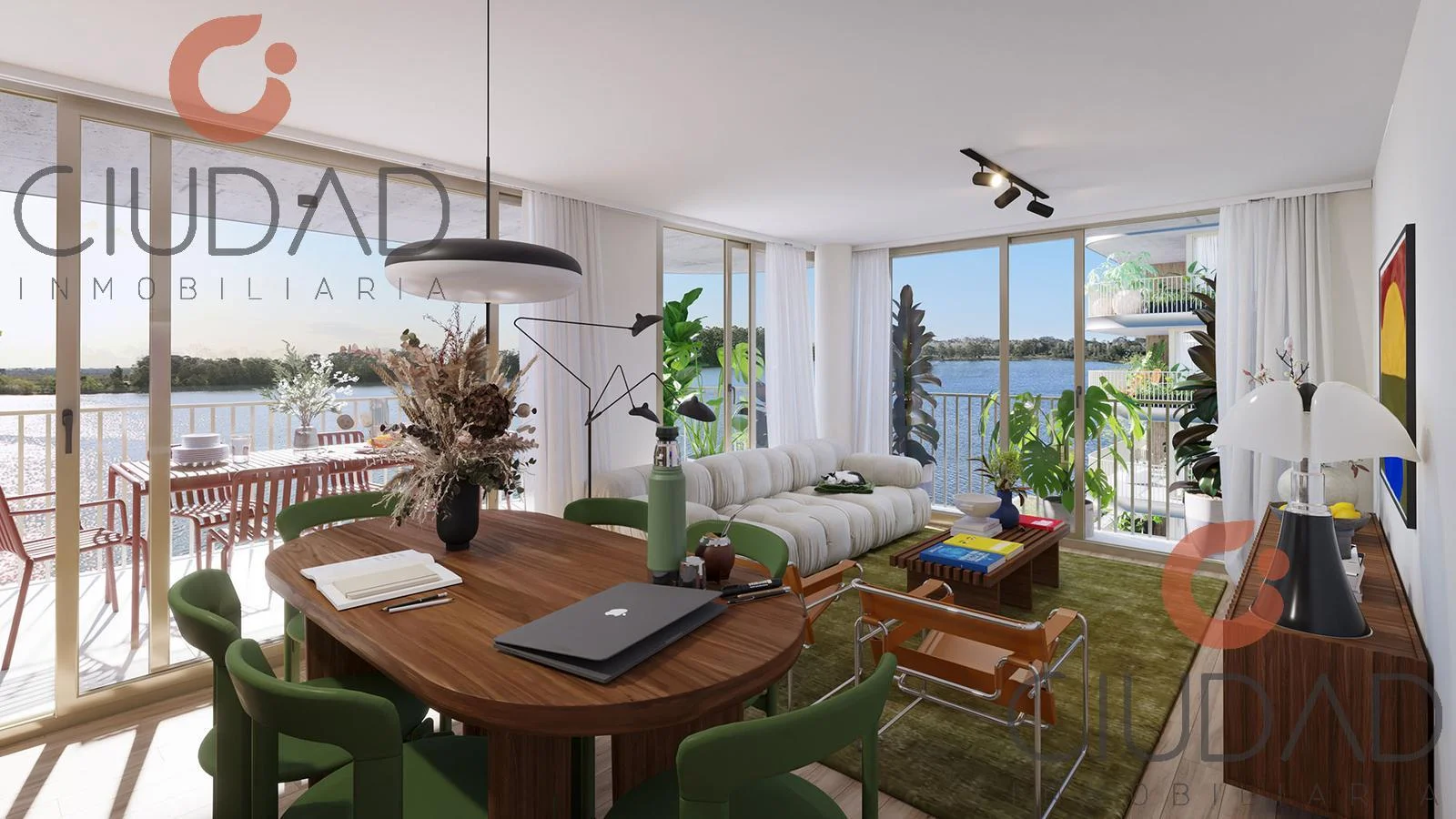 - Living comedor con amplios ventanales y salida a terraza.