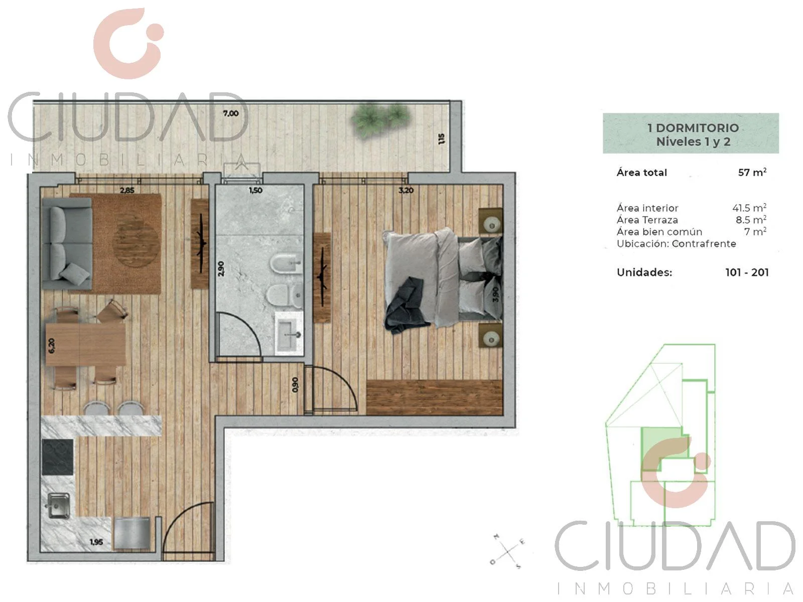 Unidad al Frente en Piso 1 con: