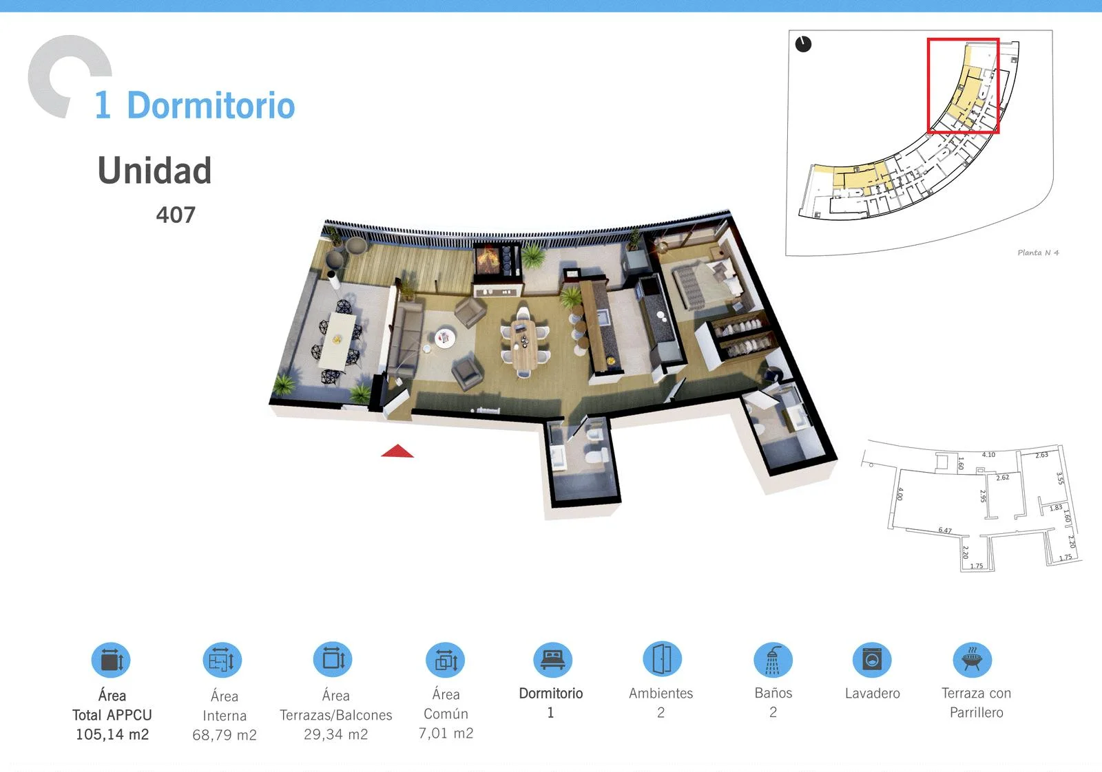 Carrasco, Agustin Musso Y Beranger - Proa Carrasco - Unidad 407 - Penthouse - 105,14 M2 - 1 Dorm - 2 Baños - Cochera - Baulera