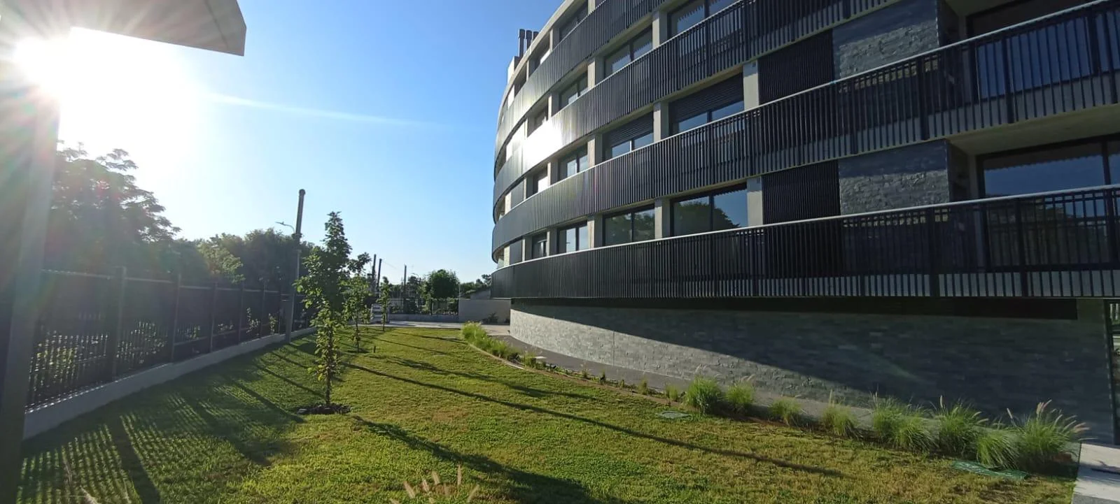 - Gran fachada de más de 150m de frente con bicisenda bordeando un exclusivo jardín exterior de más de 15 robles iluminados.