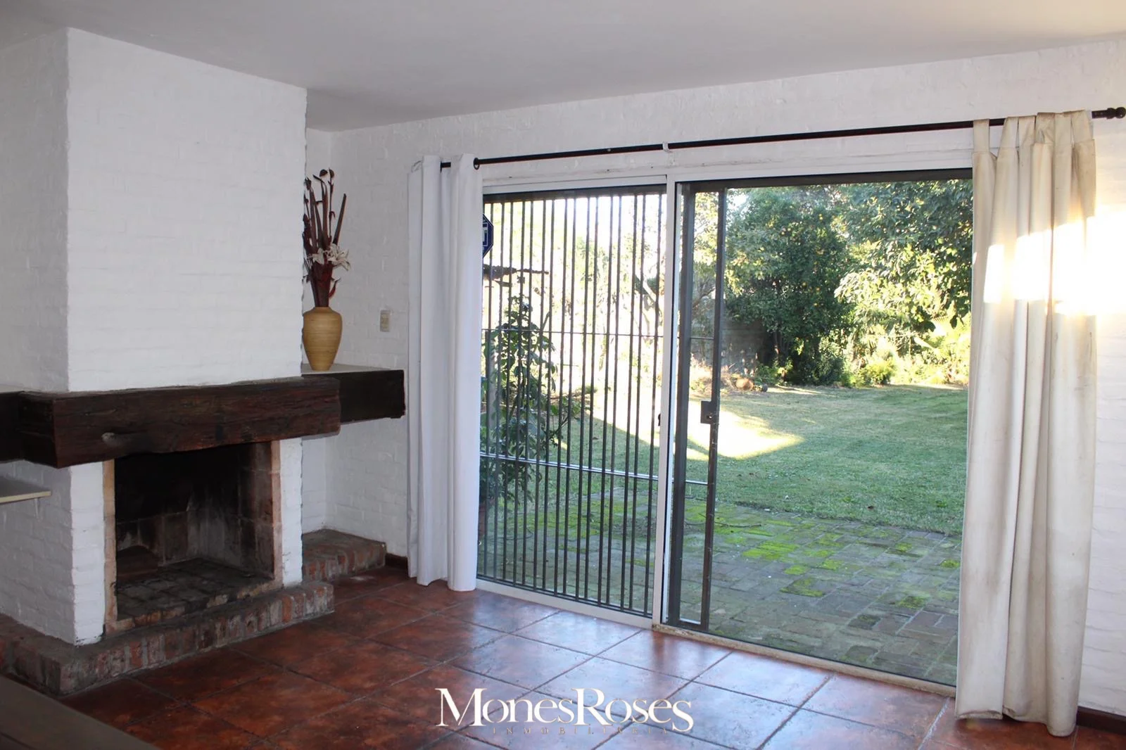 Sobre Tajes, casa en alquiler, Carrasco Norte, próxima a Colegio Jesús María. 1 planta, estilo colonial. Living comedor con estufa de leña, escritorio, gran estar con estufa de leña y salida al fondo. Cocina amplia y office. 3 dormitorios, 2 baños, suite. Estupendo fondo verde soleado, parrillero techado. Alquiler: $88.000. - Pronta para ocupar. Tel ***.-