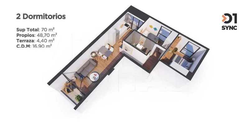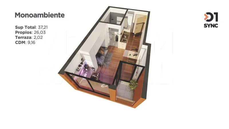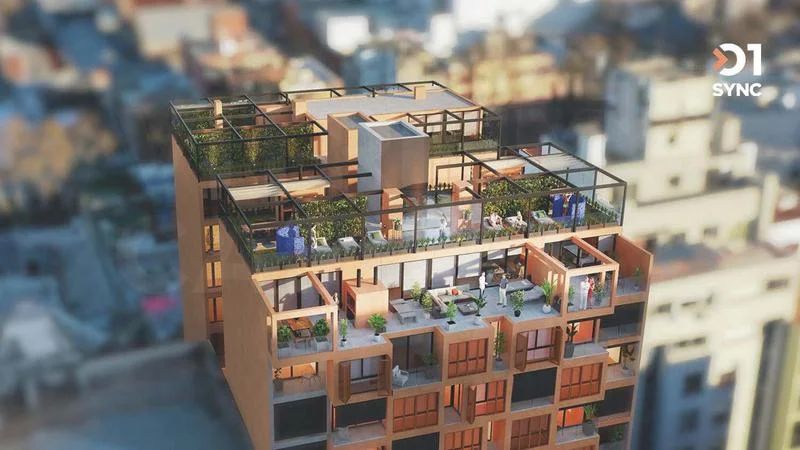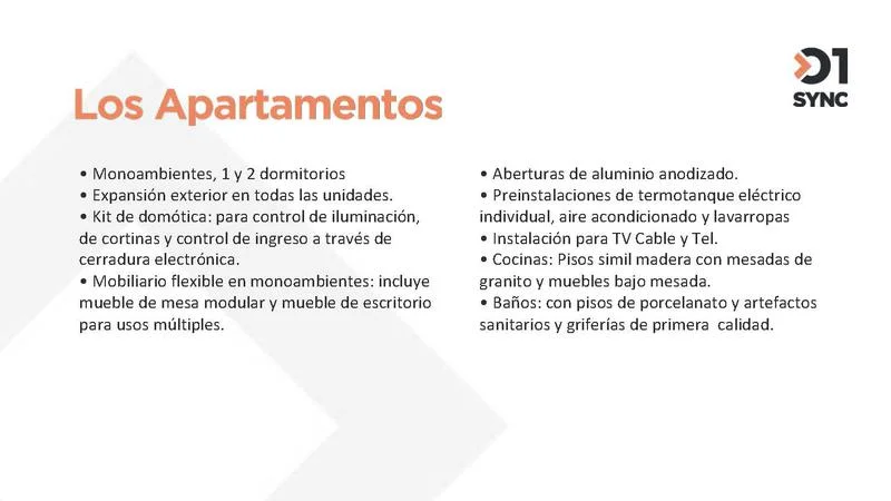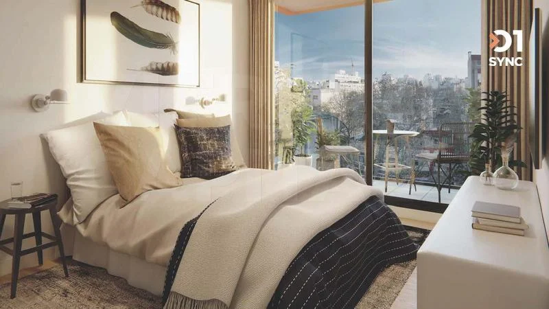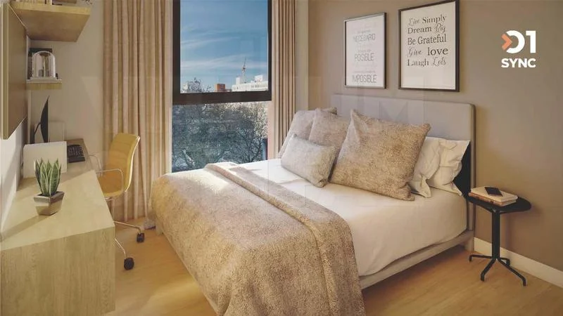 Las unidades contarán con Kit de domótica: para control de iluminación, de cortinas y cerraduras electrónicas, espacio exterior y amoblamientos flex para usos mixtos en monoambientes.