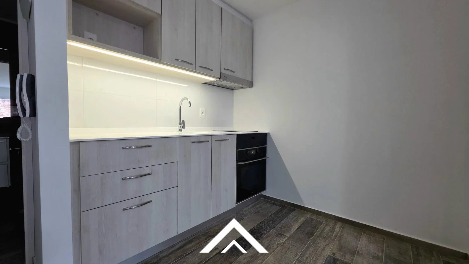 + Cocina integrada de concepto abierto con muebles aéreos y bajo mesada de gran calidad, horno empotrado, anafe de vitrocerámica, campana extractora y luz sobre mesada.