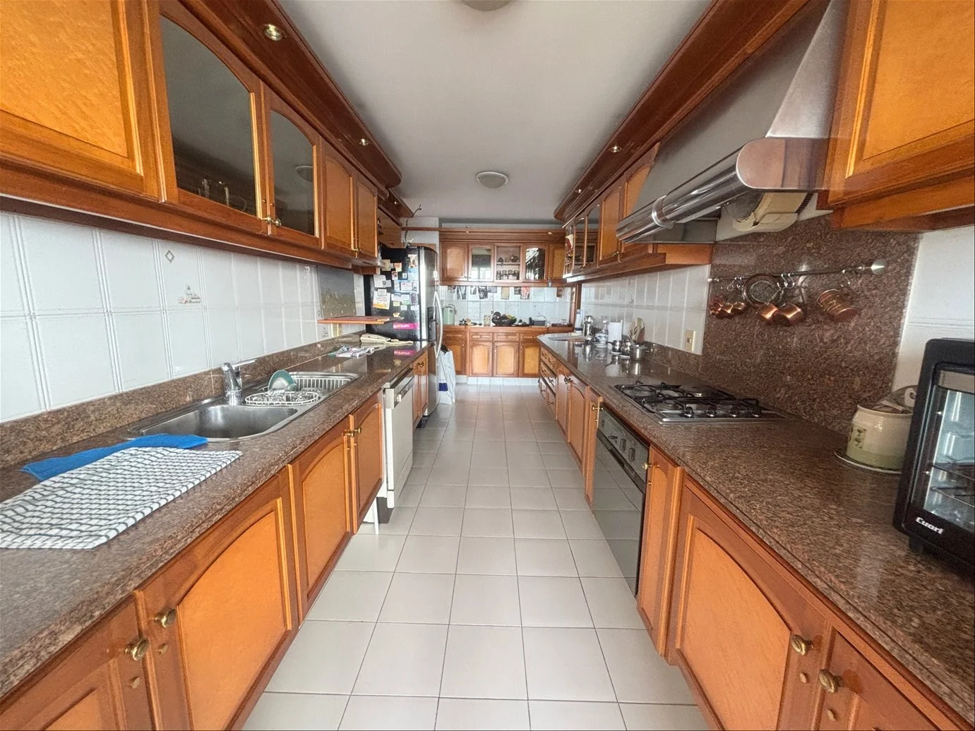 Amplia cocina con con doble mesada y profusión de placares. Terraza lavadero y servicio completo.