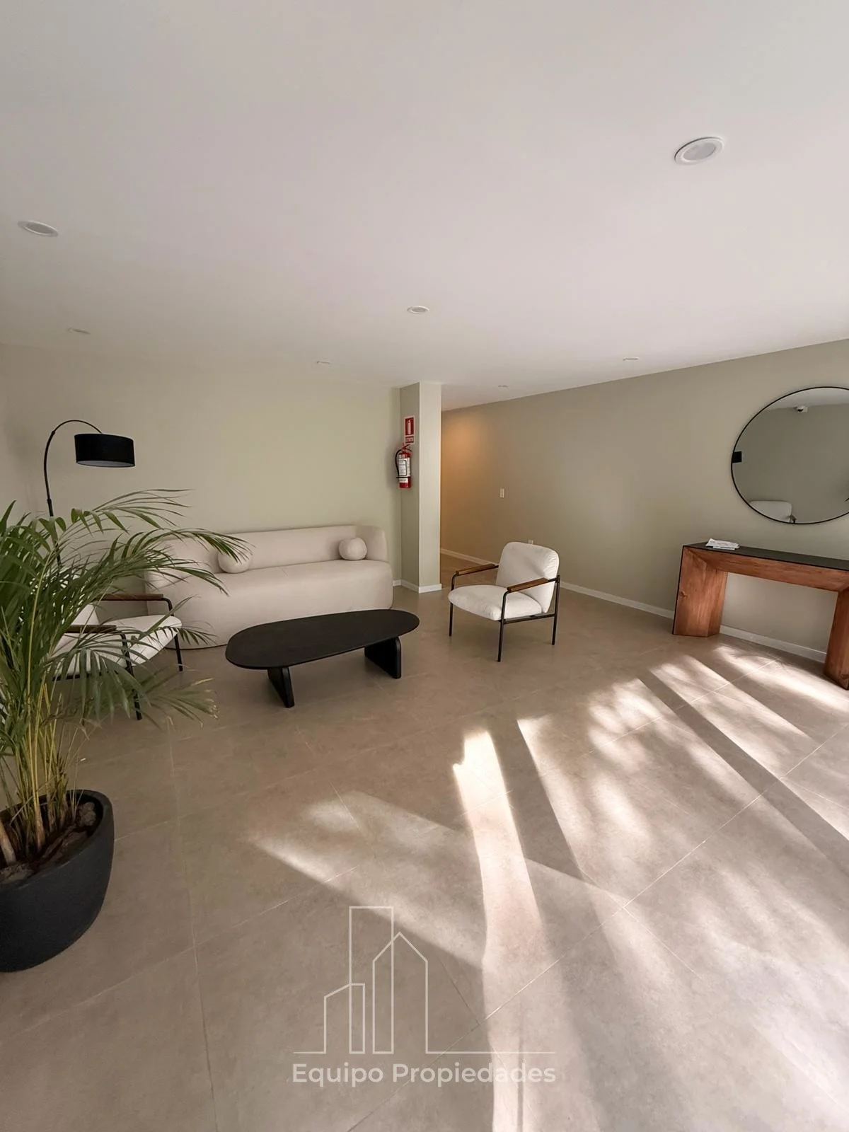Living comedor y dormitorio con salida a terraza de 6m2, dormitorio con placares.