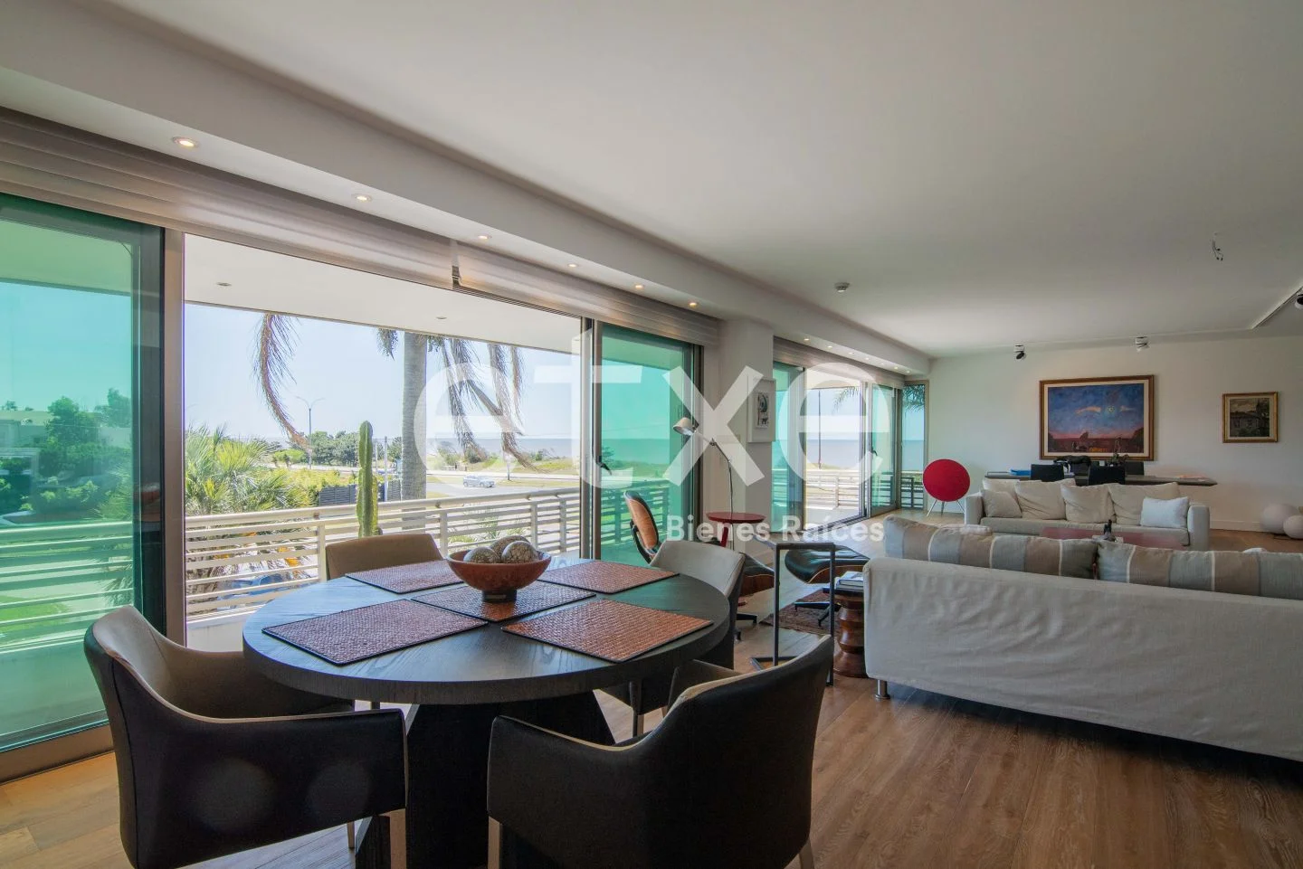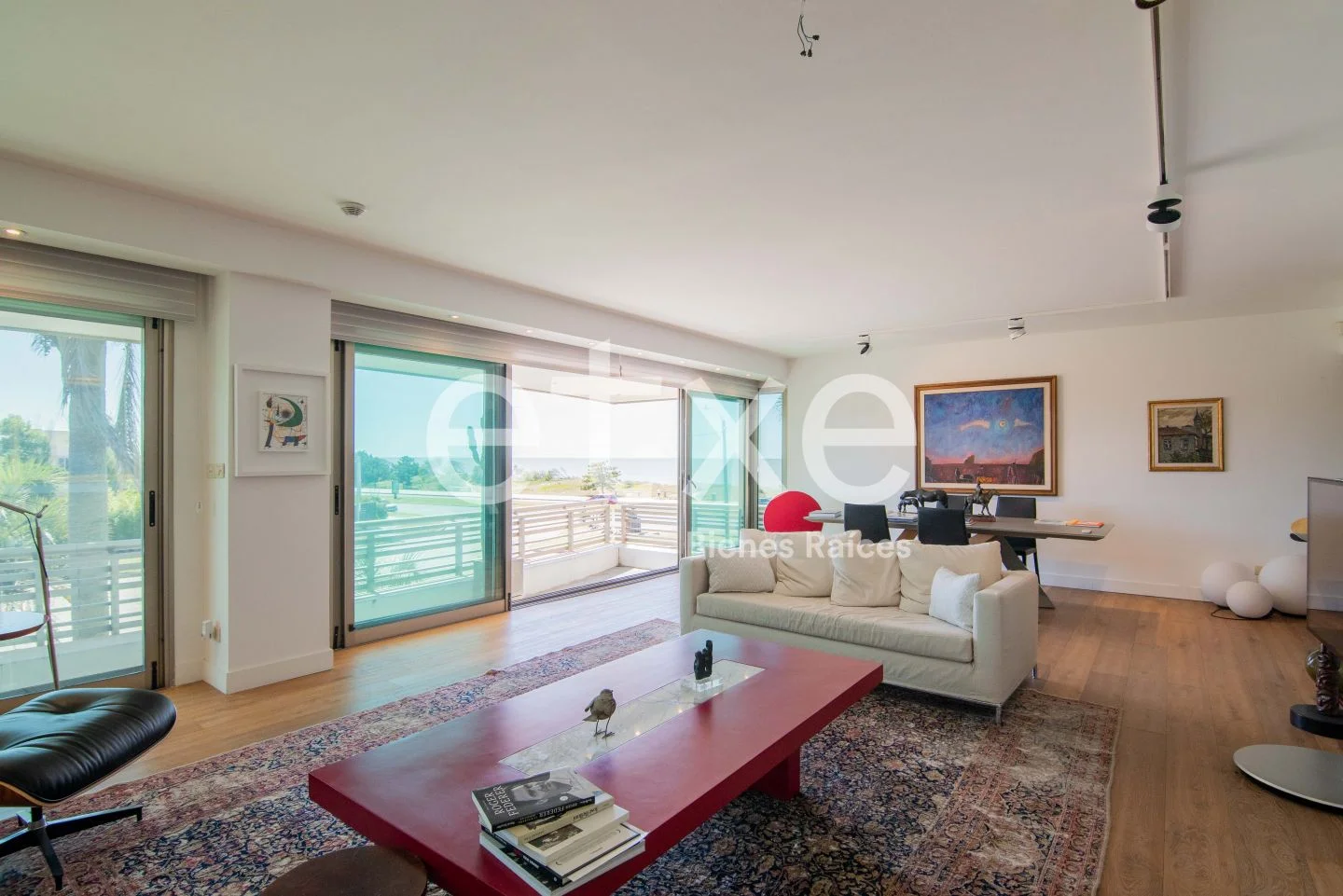 Apartamento de categoría sobre la rambla de Carrasco, cerca de Arocena y del Hotel Carrasco. Son dos apartamentos unidos, ofreciendo un amplio living con acceso a una terraza con vistas panorámicas al mar. Cuenta con un estar espacioso y una cocina definida con isla, ambos con salida a otra terraza al contrafrente con parrillero.