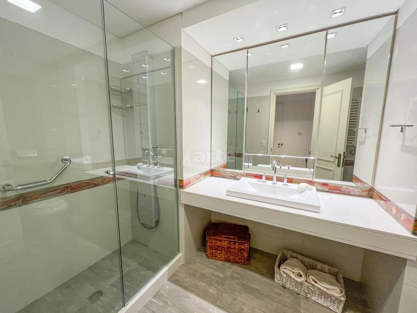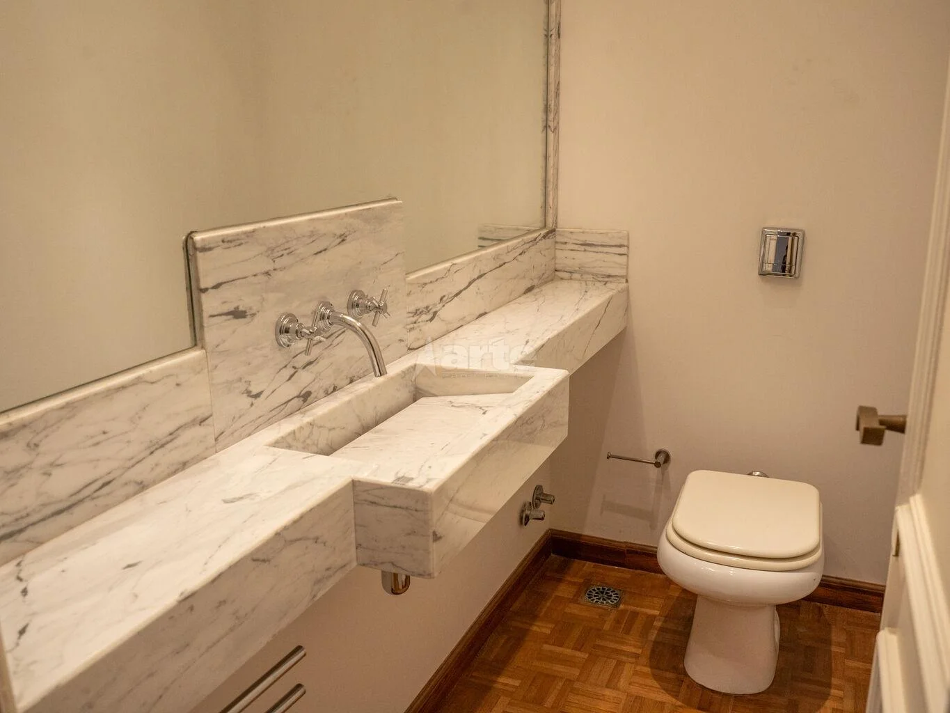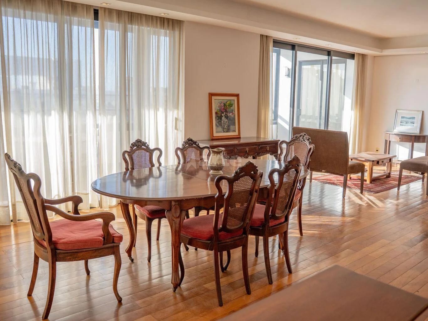 Gran living comedor en L con pisos de Lapacho y salida a gran terraza de 45 m2 cerrada como jardín de invierno, se continua mediante puertas corredizas con un amplio estar con comedor diario y con otro ambiente que oficia de escritorio o playroom, baño social, 2 amplios dormitorios secundarios con muy buenos placares comparten un baño completo, master suite al frente con vestidor y jacuzzi.