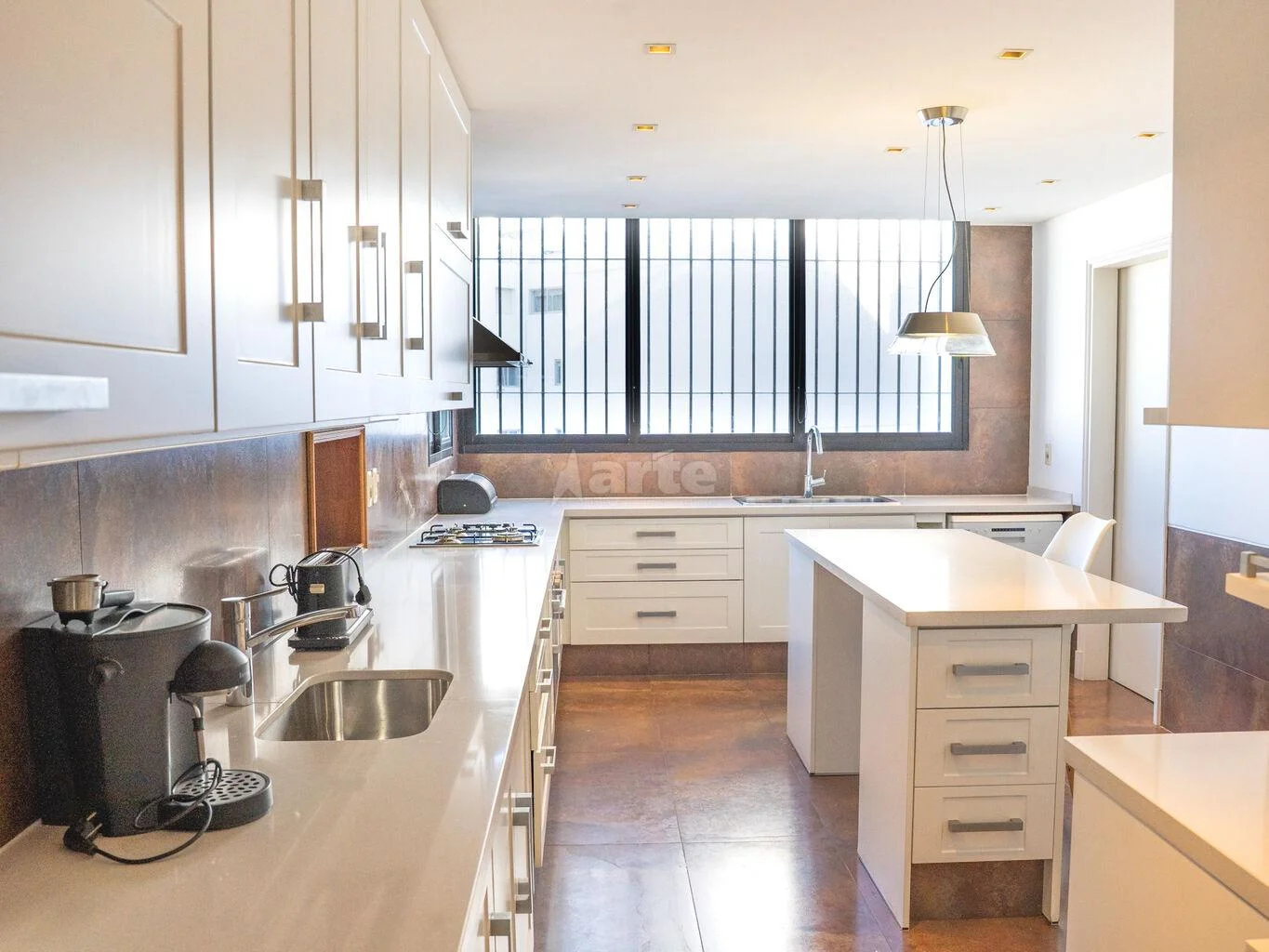 Hermosa cocina con profusión de placares, isla central muy bien equipada con línea blanca y lavadero.