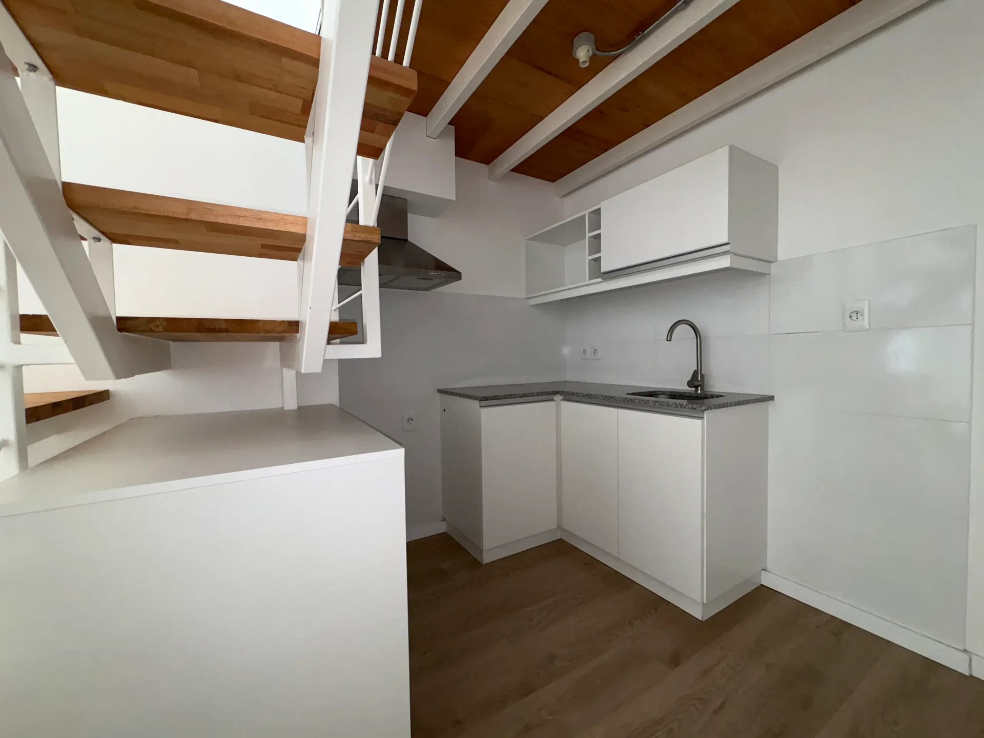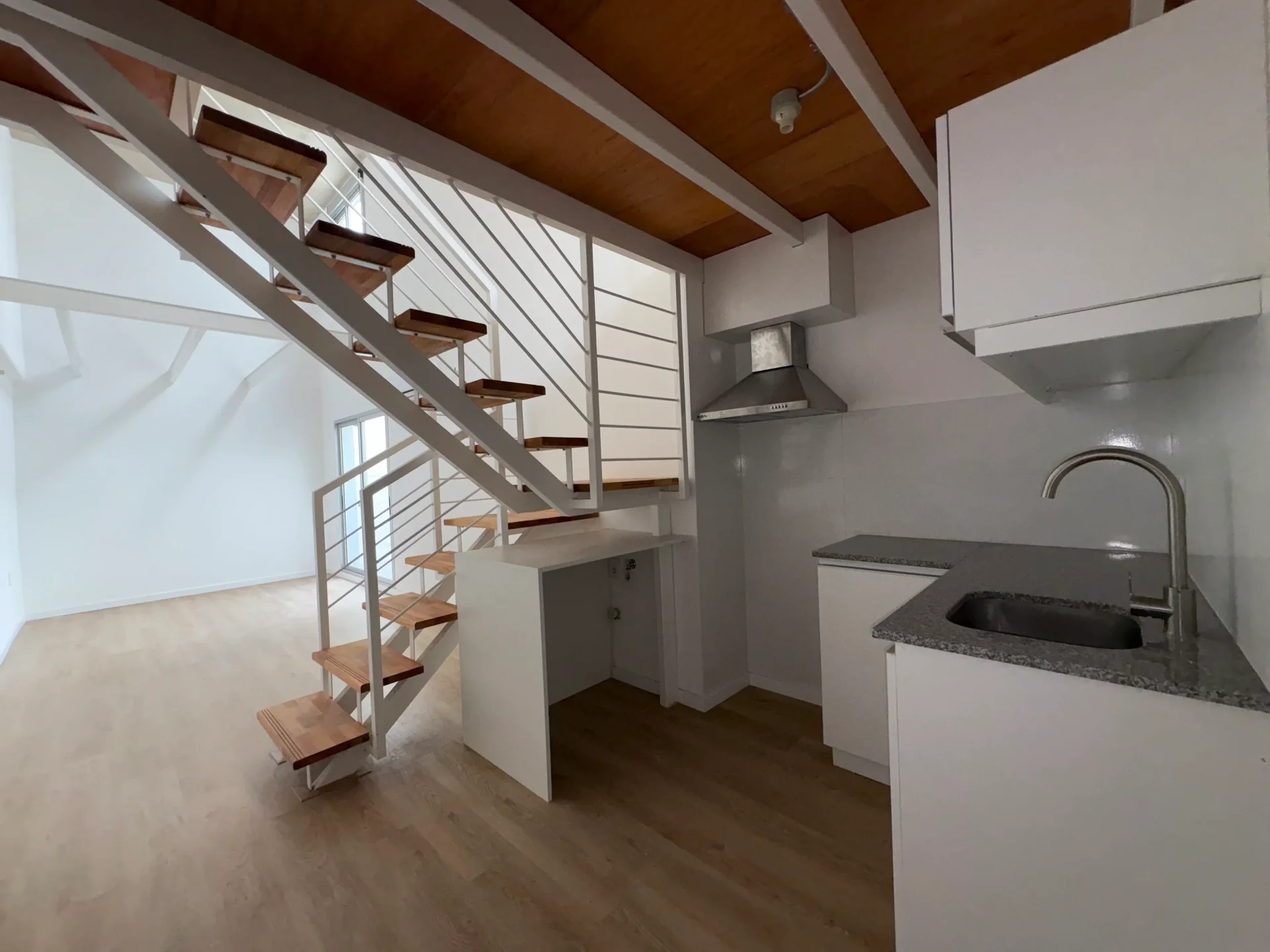 El apartamento se desarrolla en 2 plantas, cuenta en planta baja con living comedor con cocina integrada y cómodo baño. En planta alta cuenta con dormitorio.