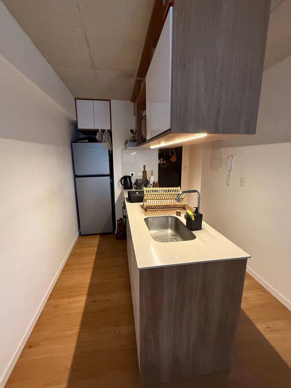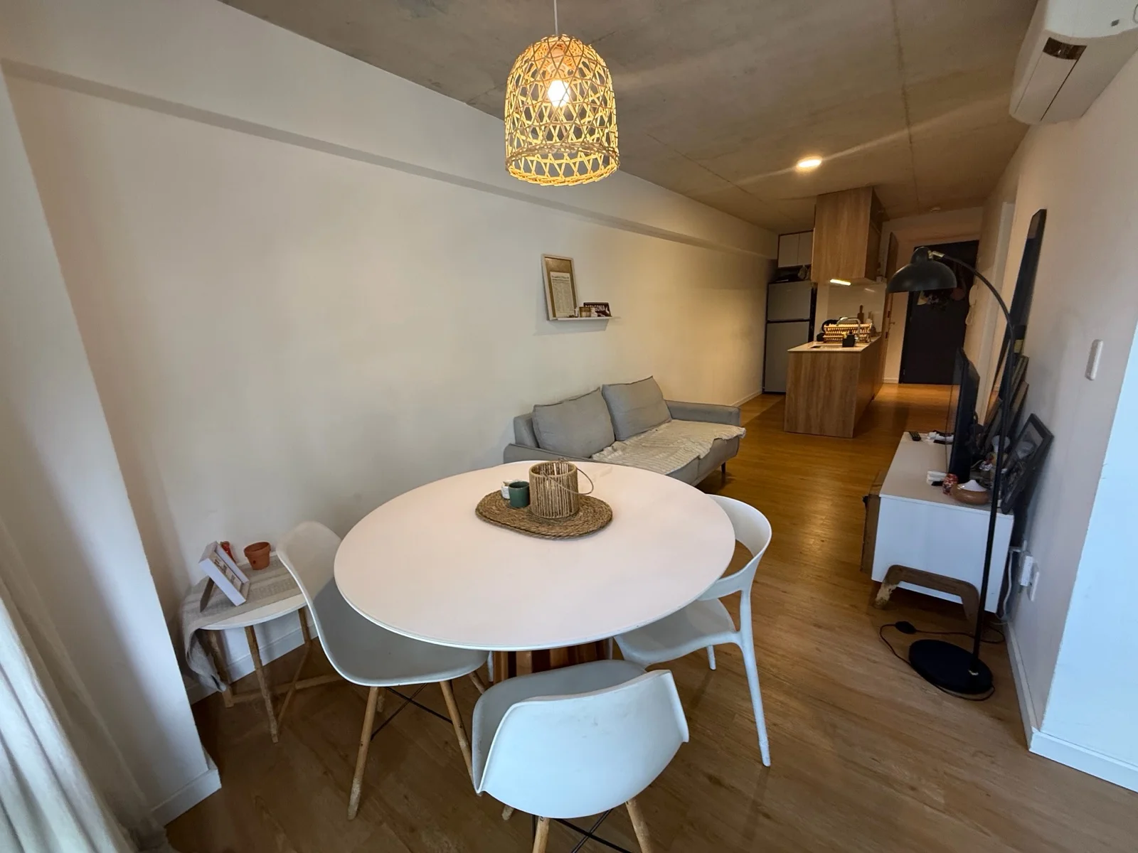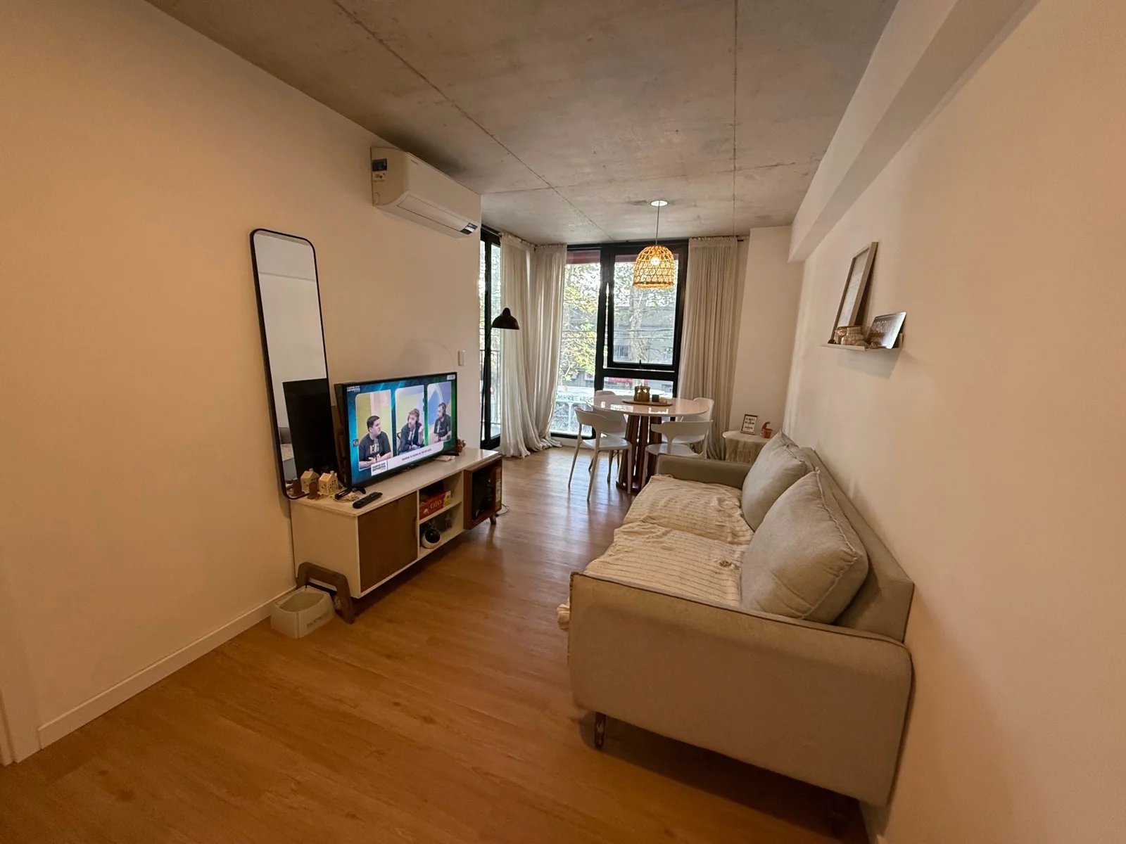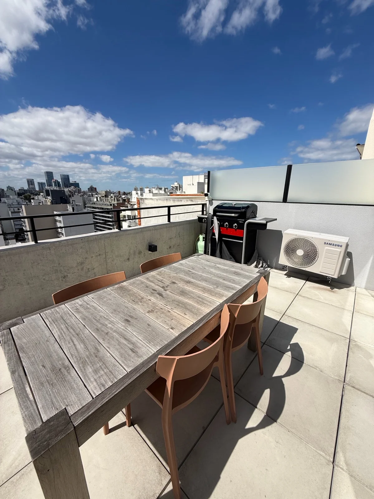 Amplio living comedor con cocina integrada equipada con horno, anafe y campana. Linda terraza. Cuenta con 1 dormitorio en suite. Calefón. Aire acondicionado. Toilette