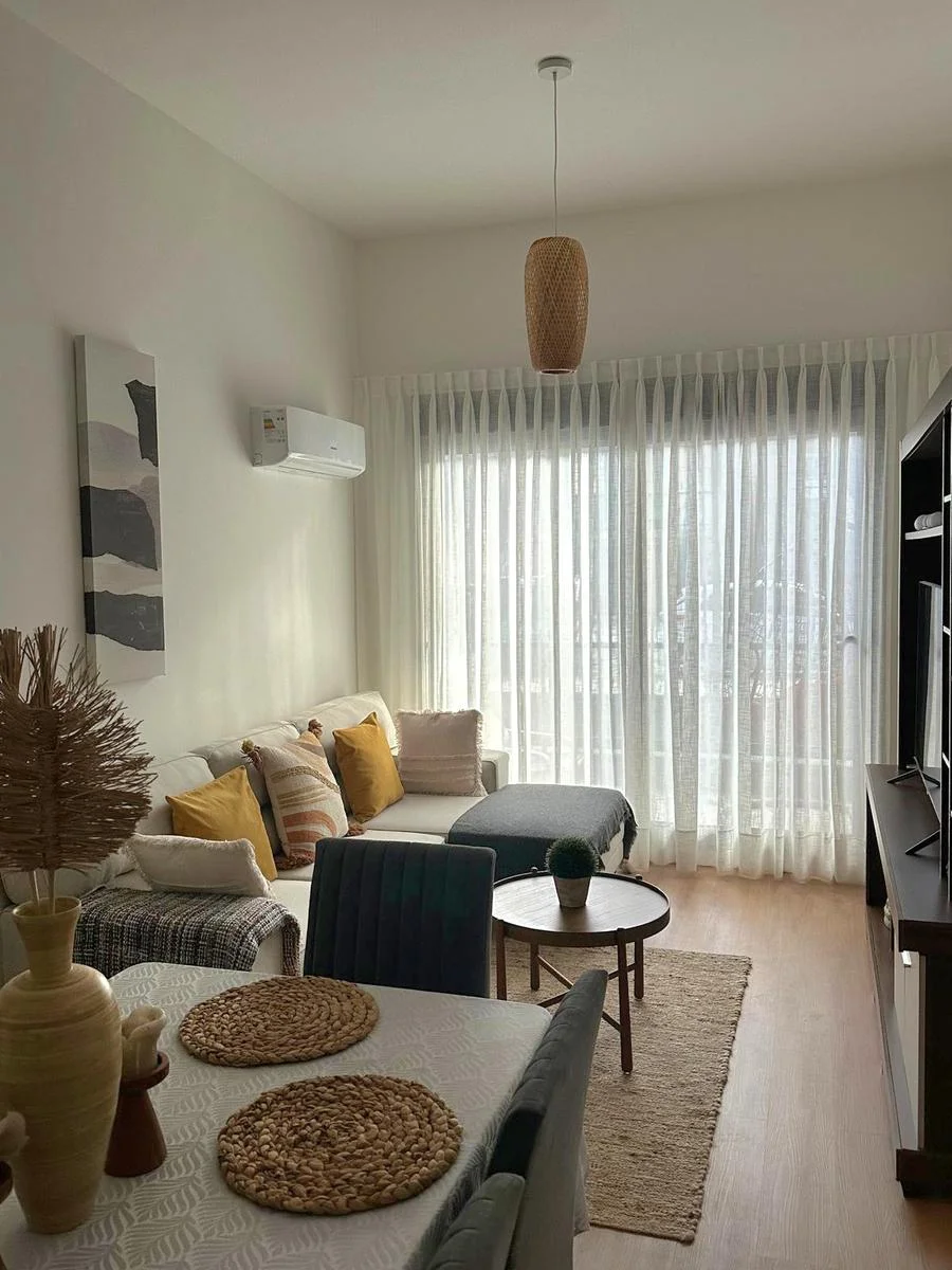 Ambientes: Cocina semi integrada, comedor, living, terraza, un dormitorio muy amplio, baño y vestidor.
