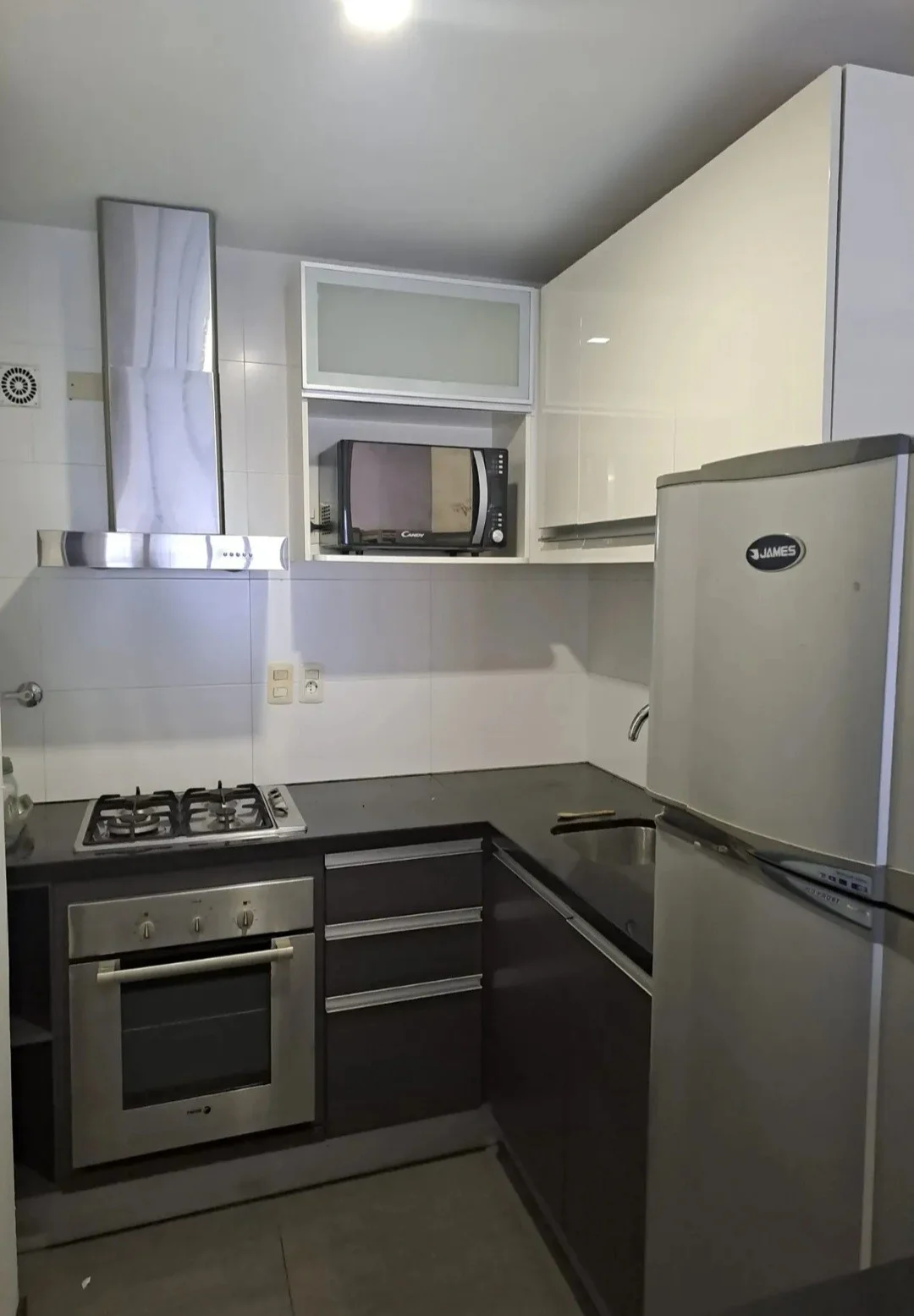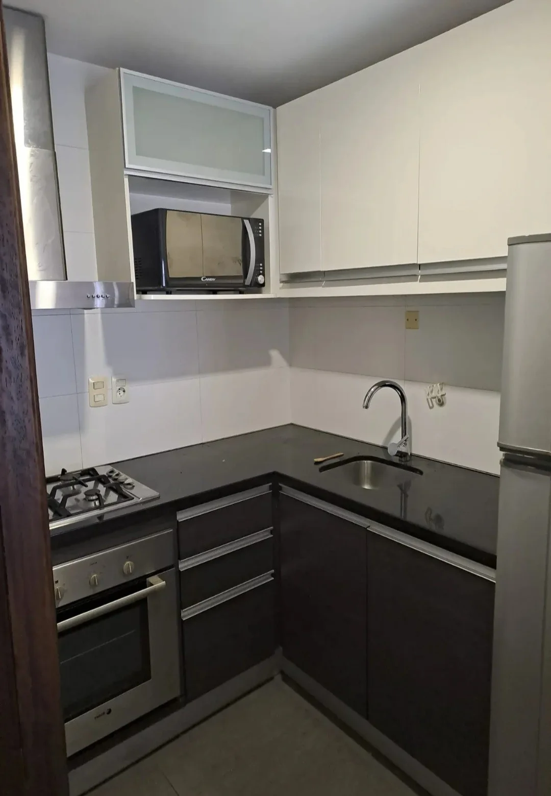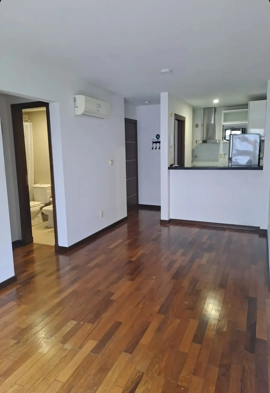 La cocina, compacta y equipada, fusiona estilo y practicidad, mientras que un amplio dormitorio y una sala de estar con pisos de madera completan la distribución, ideal para quienes buscan un estilo de vida contemporáneo. El inmueble cuenta con aire acondicionado en sus espacios principales, garantizando una temperatura agradable durante todo el año. Los detalles modernos y la ventilación natural en cada rincón realzan su diseño y ofrecen un ambiente fresco y acogedor.
