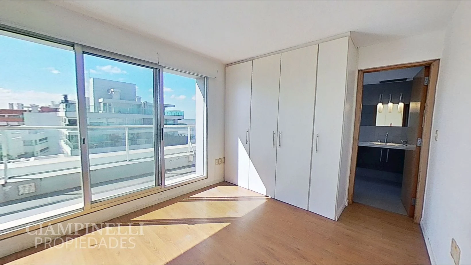 Planta Alta: dormitorio principal en suite, con placard, con acceso a balcón de 9 m2 con vista despejada al mar.