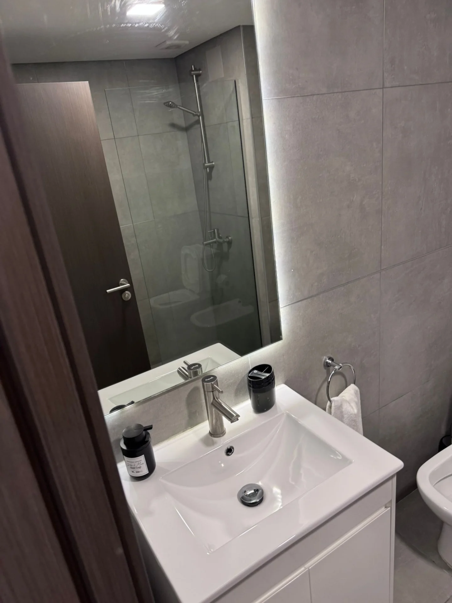 El baño es completo y presenta revestimientos modernos.